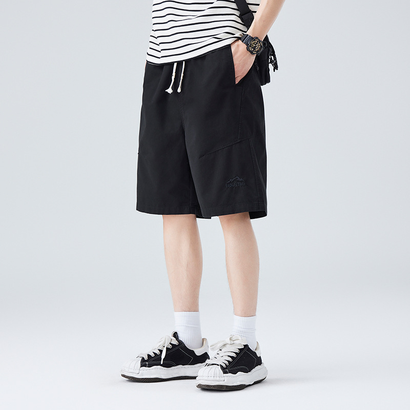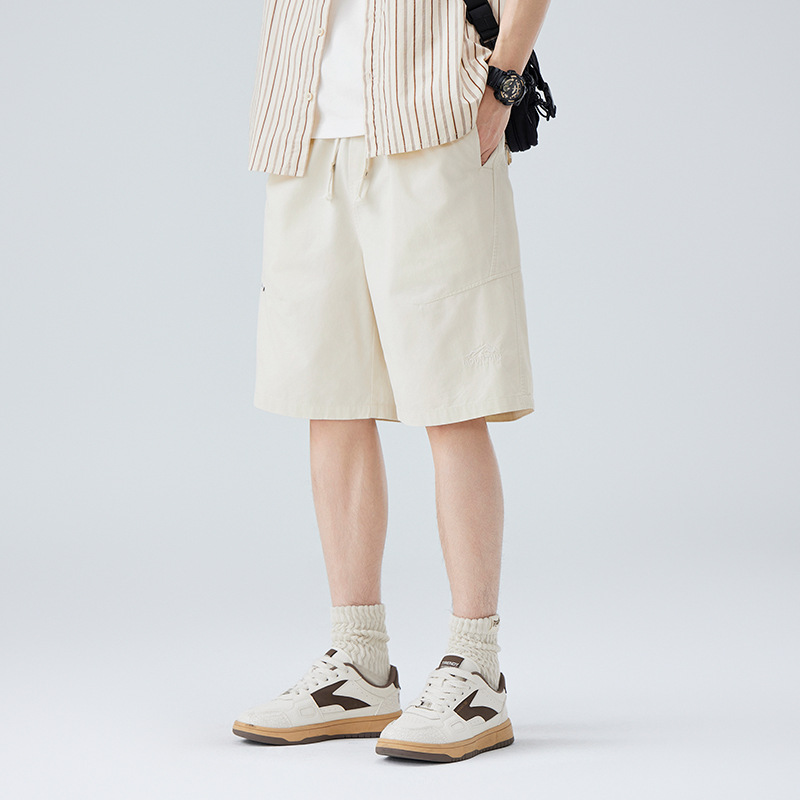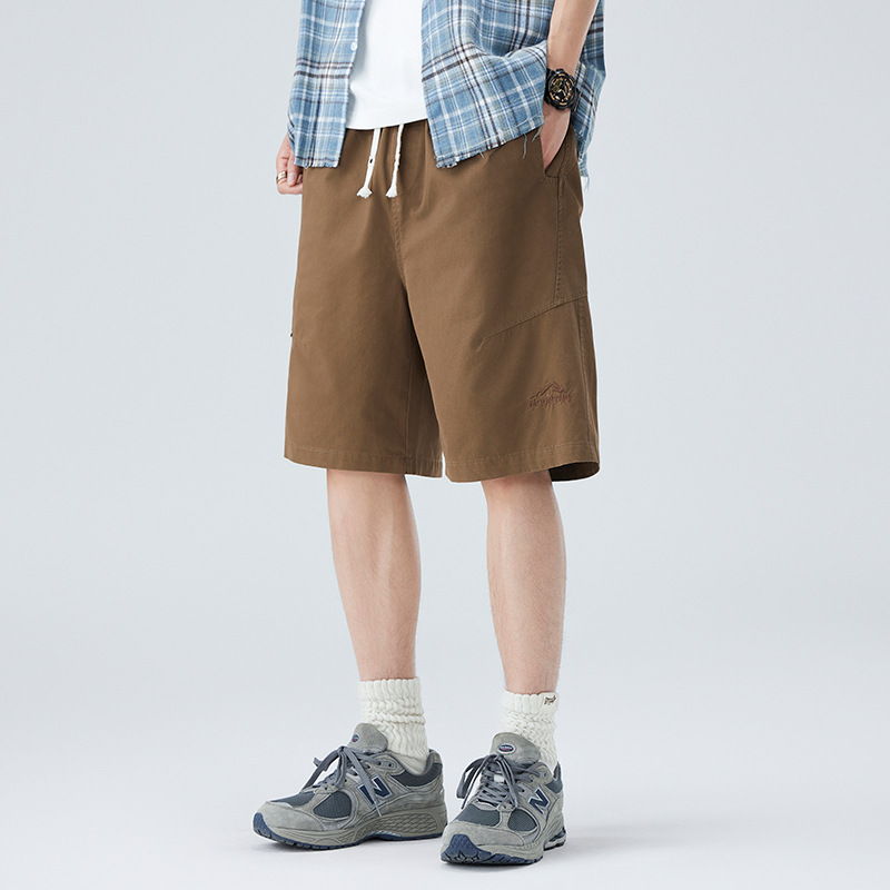 纯棉短裤男士夏季刺绣休闲运动全棉中裤男生夏日高品质五分裤外穿