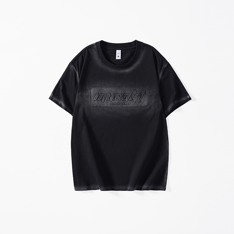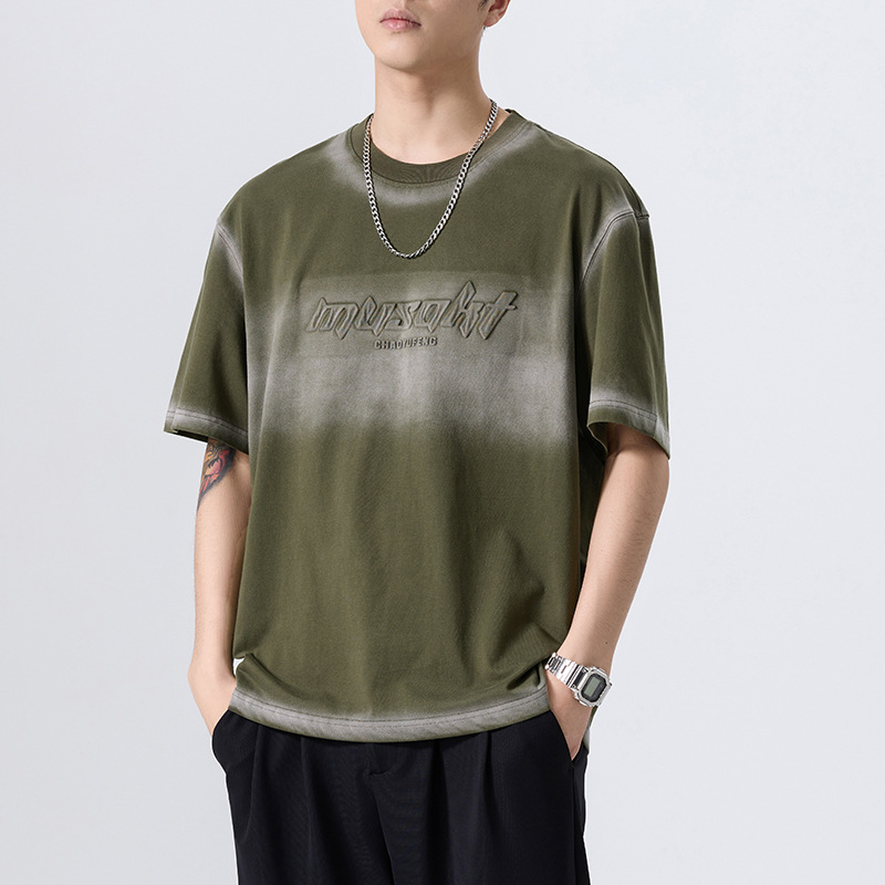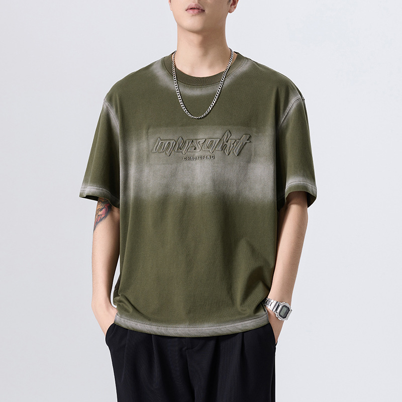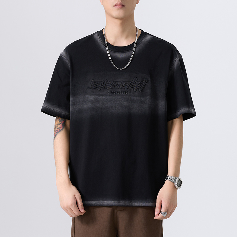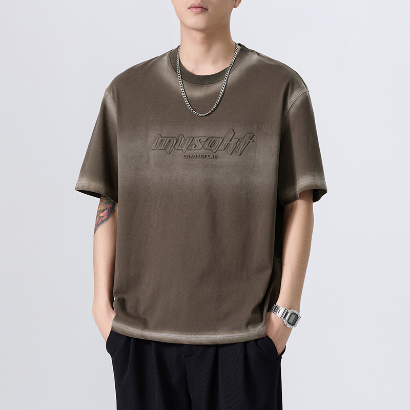 夏季重磅水洗休闲半袖体恤钢印压花美式纯棉宽松短袖t恤男士薄款