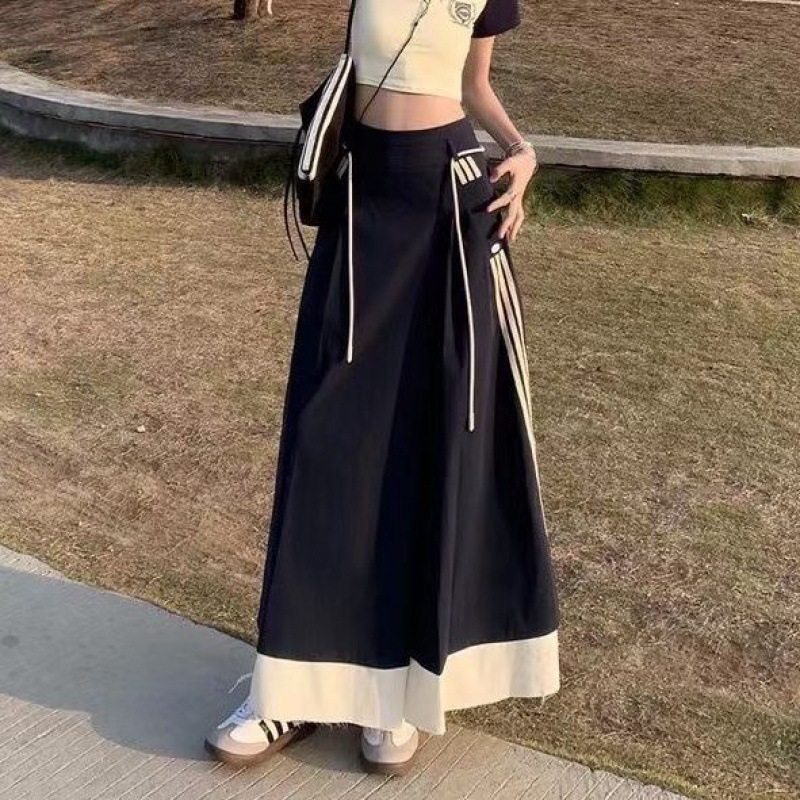 辣妹学院风不规则拼接半身裙女春季女装美式三条杠a字开叉长裙子