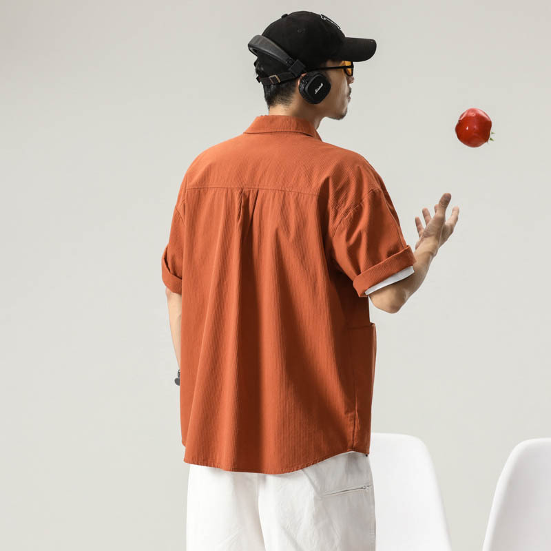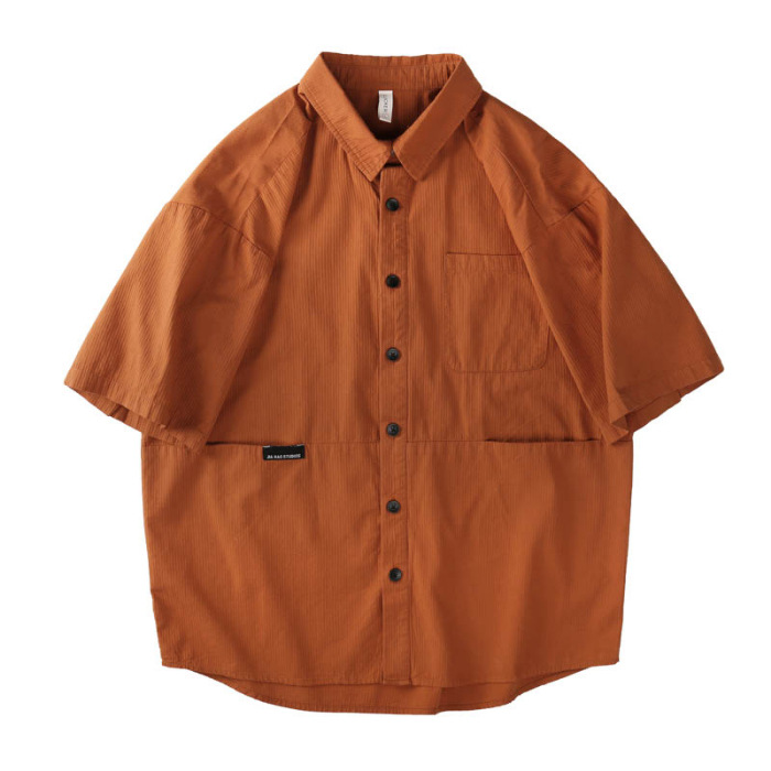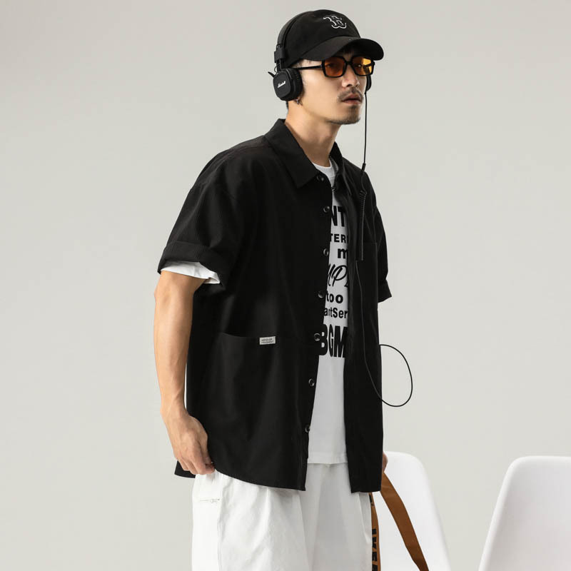 日系短袖衬衫男士夏季新款宽松大码衬衣潮流复古工装半袖上衣外套