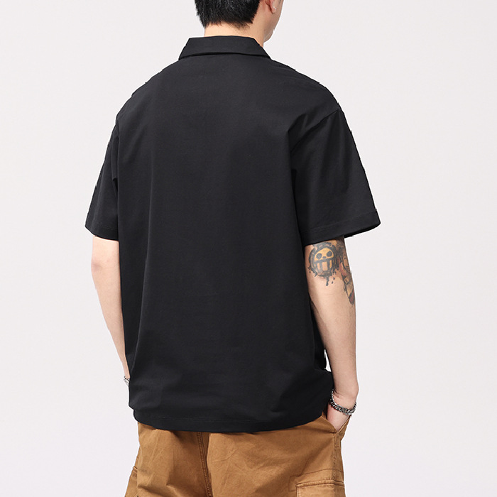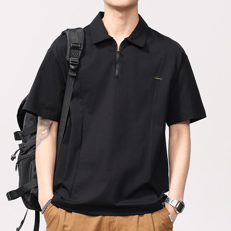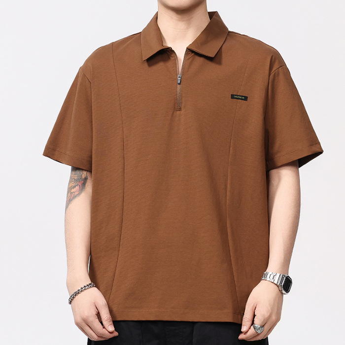 美拉德复古短袖男夏季t恤男美式2025新款宽松半高拉链男士polo衫