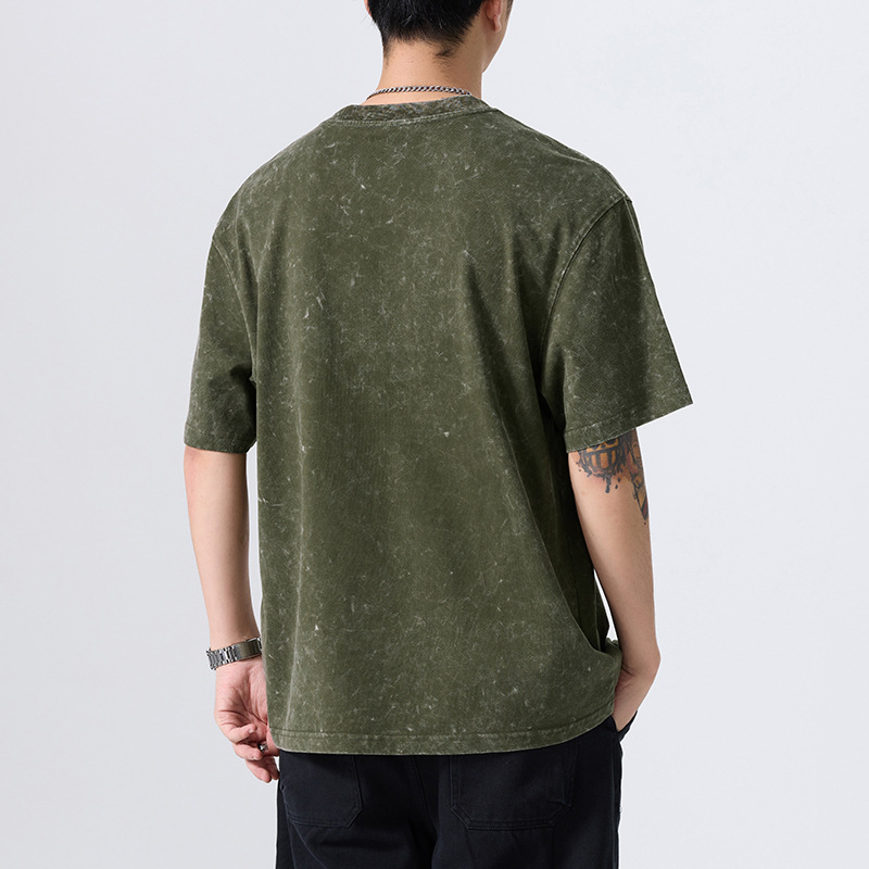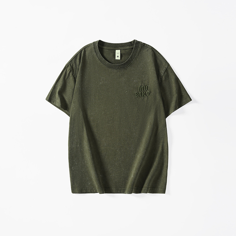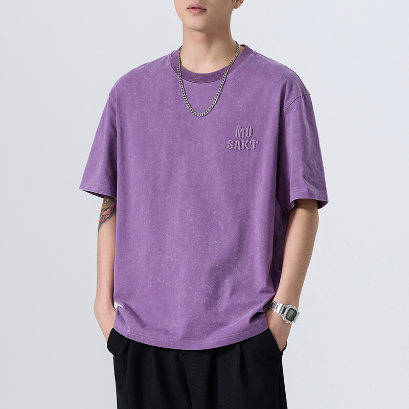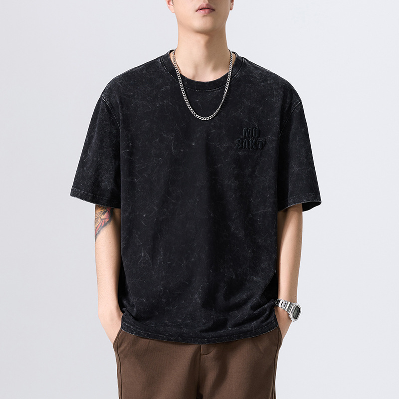 夏季新款重磅纯棉刺绣字母短袖t恤男美式复古宽松大码扎染T恤上衣