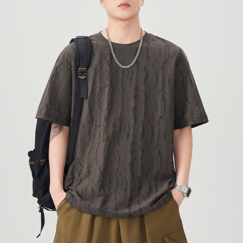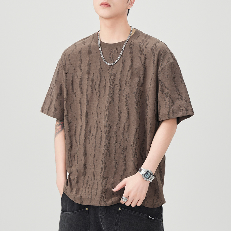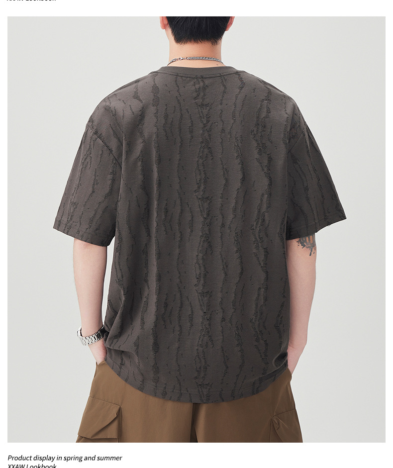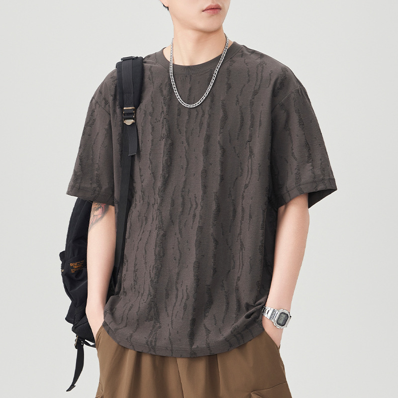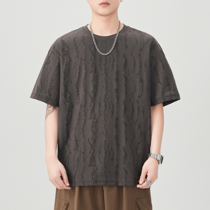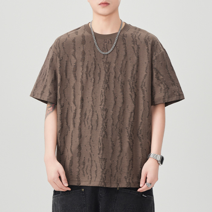 夏季2025新款破旧圆领短袖t恤男潮牌复古小众宽松工艺设计感半袖