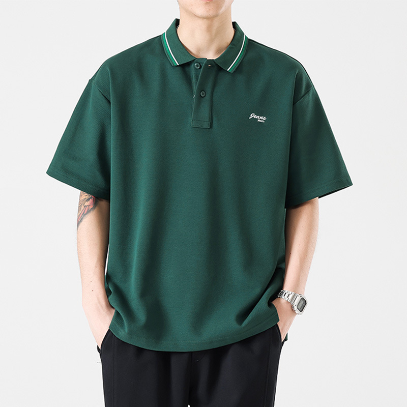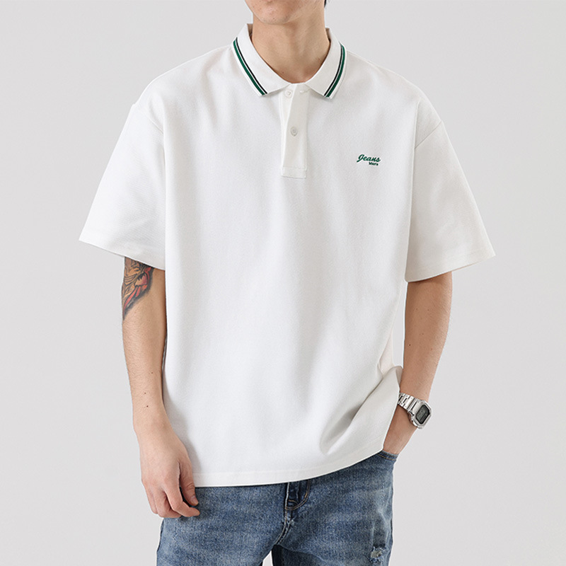 300g夏季潮牌撞色翻领男士短袖Polo衫美式重磅半袖体恤宽松百搭衫