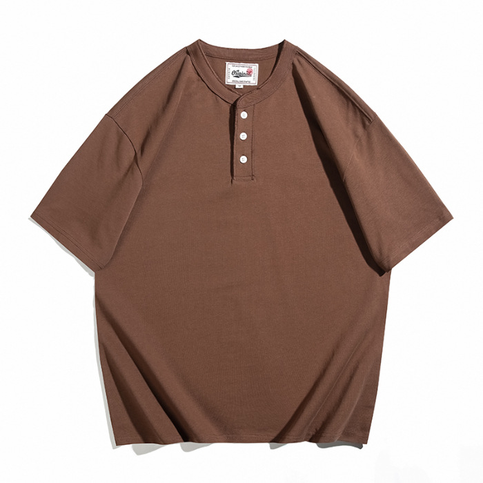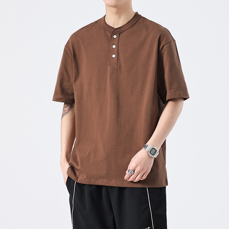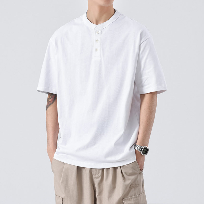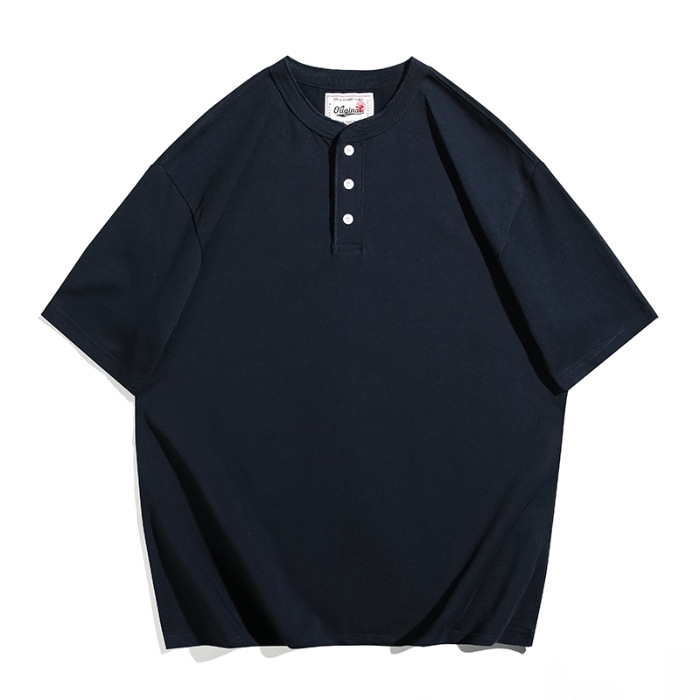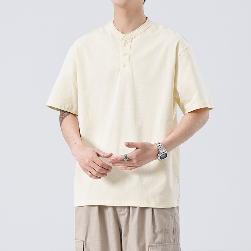 美式亨利领polo衫男款短袖夏季2025新款复古纯棉半袖微宽松t恤男