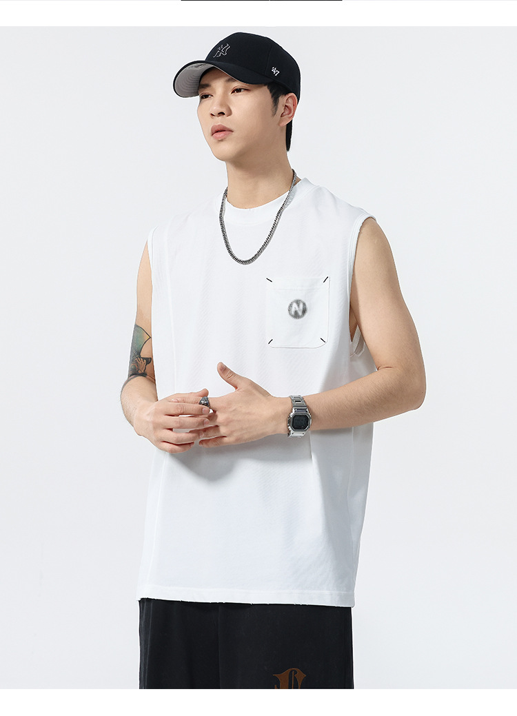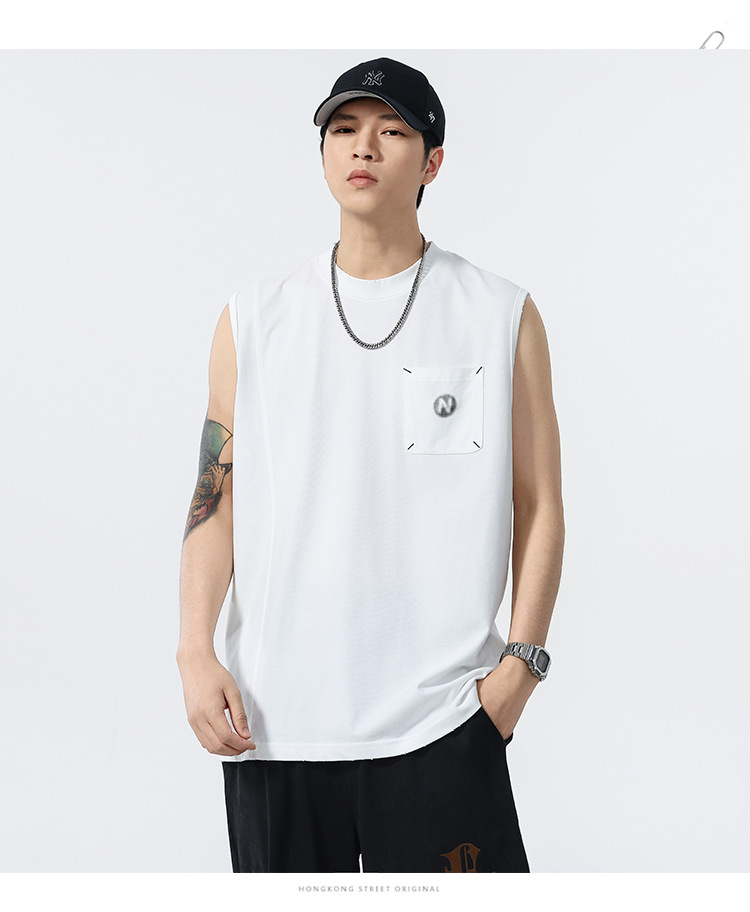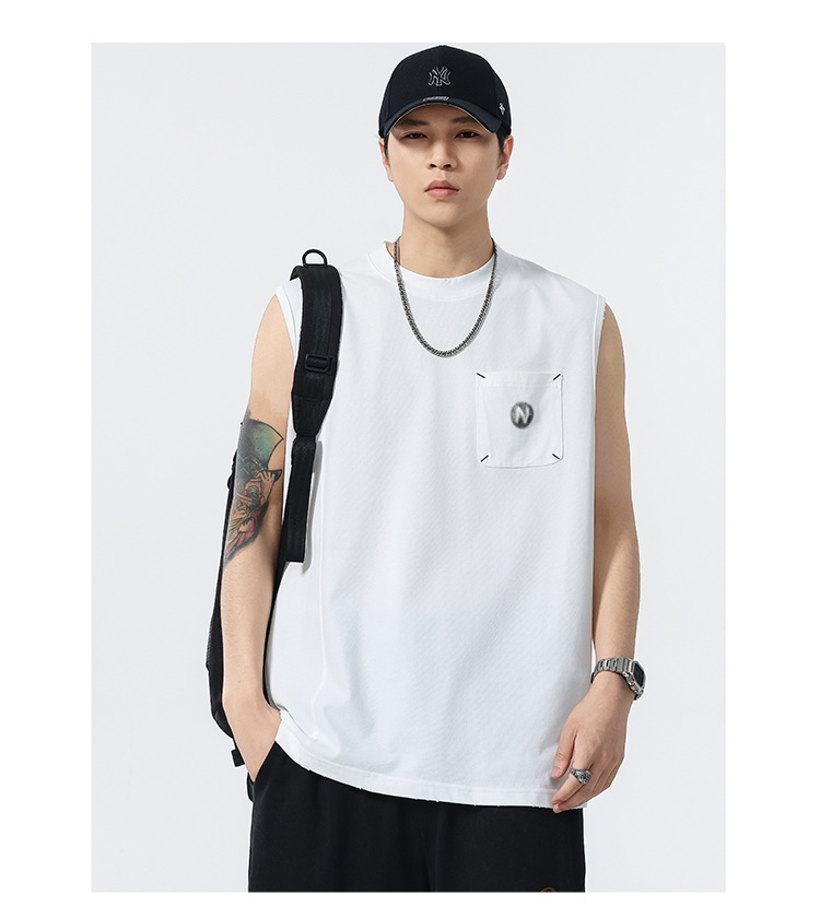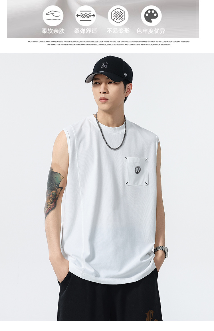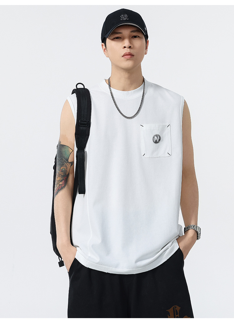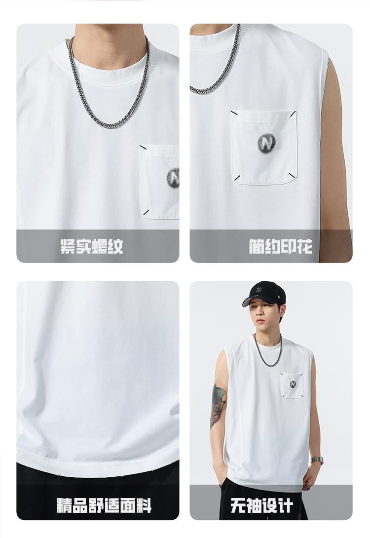 背心男夏季凉感宽松圆领贴袋印花汗背心