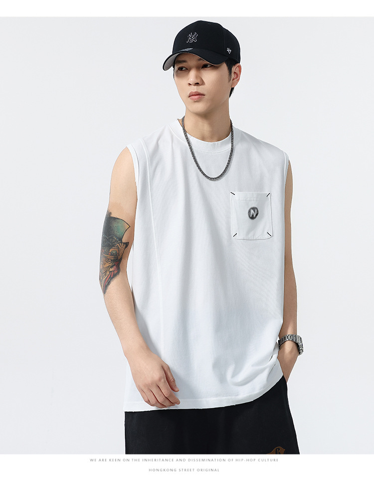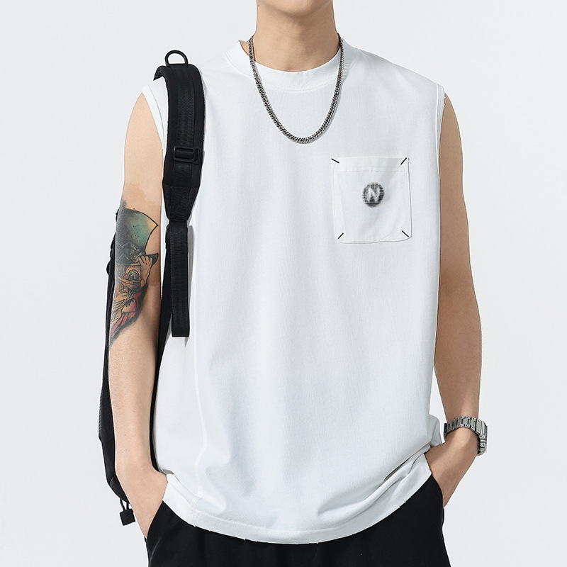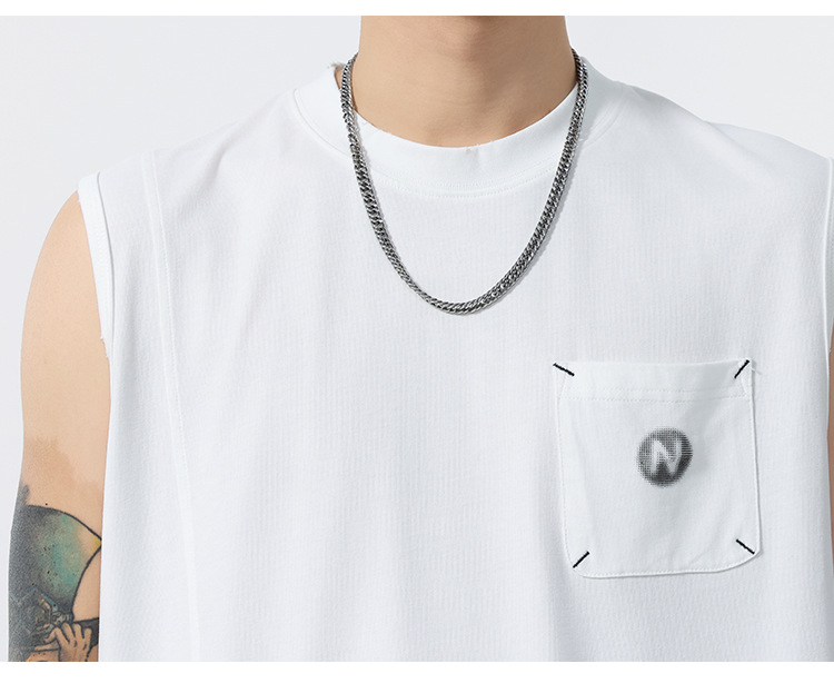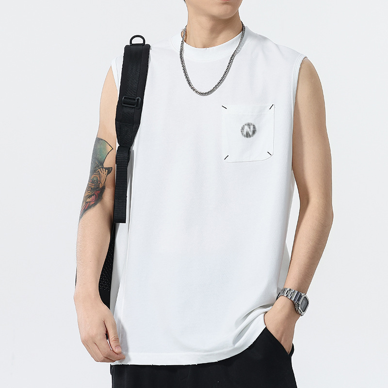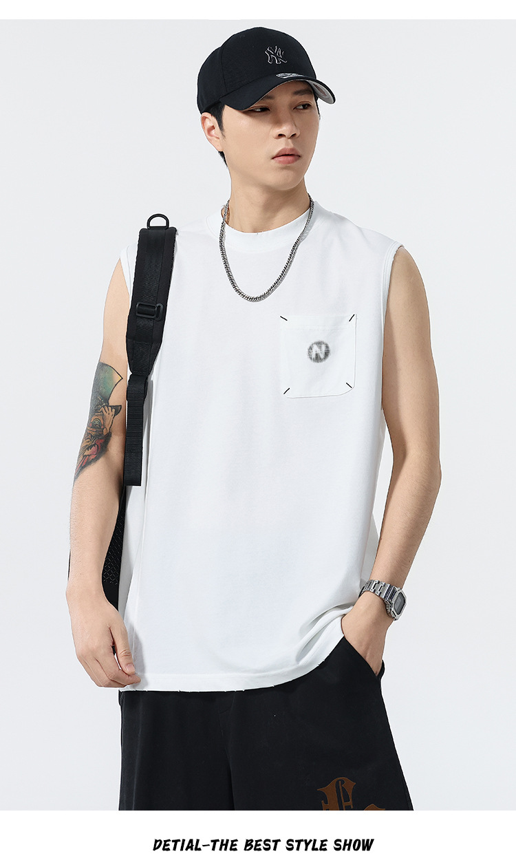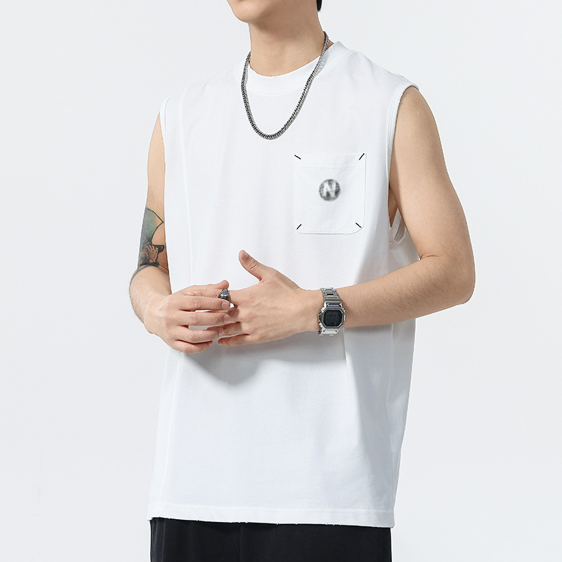 背心男夏季凉感宽松圆领贴袋印花汗背心