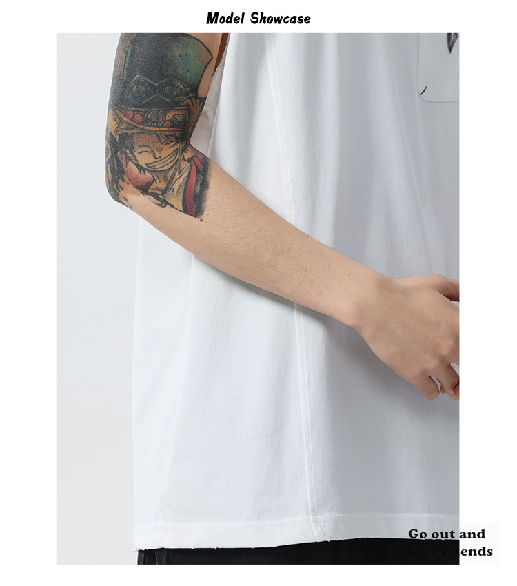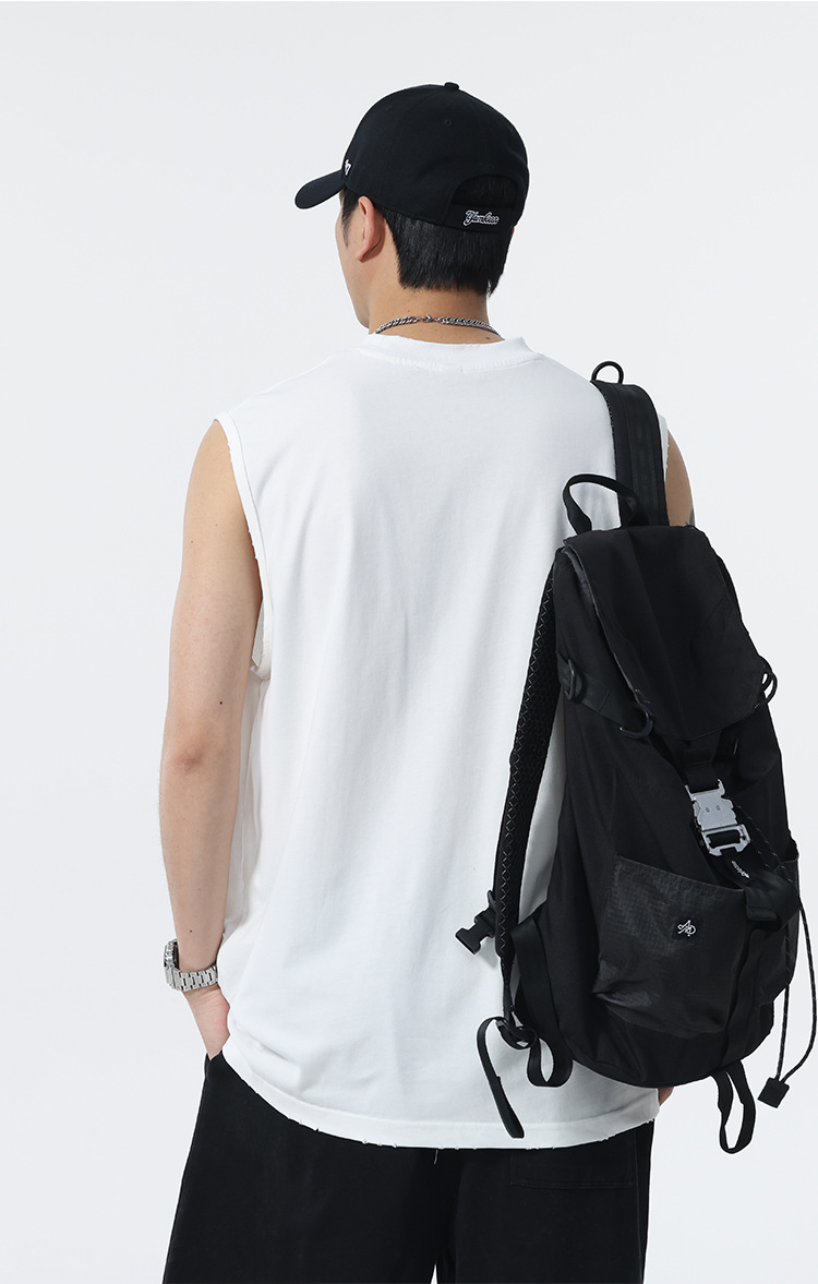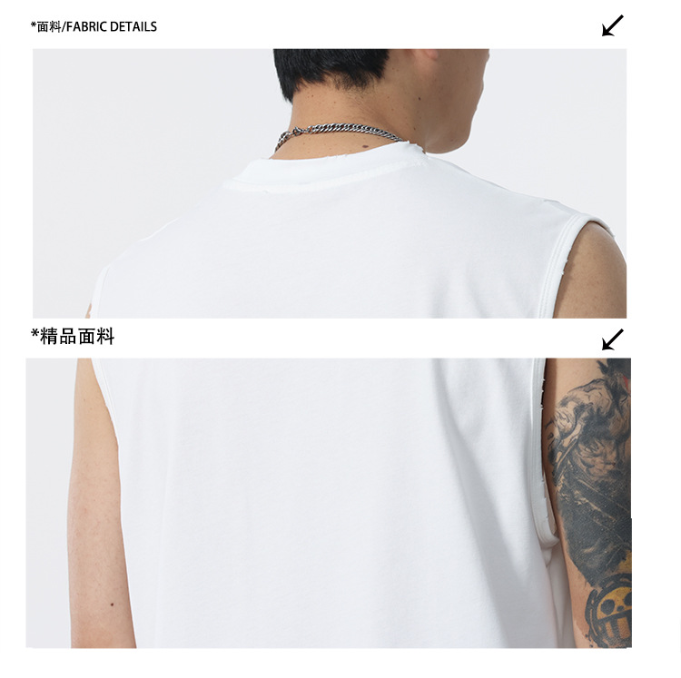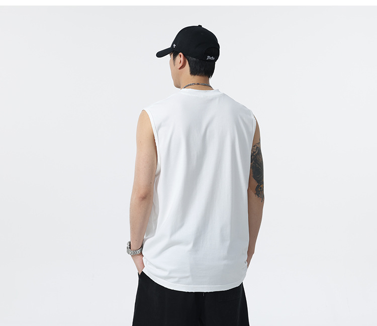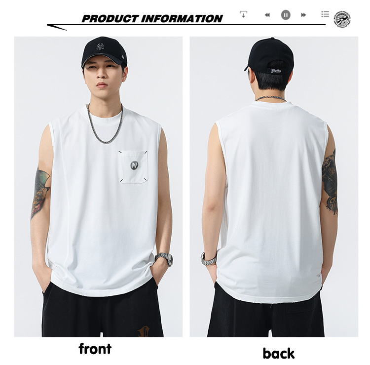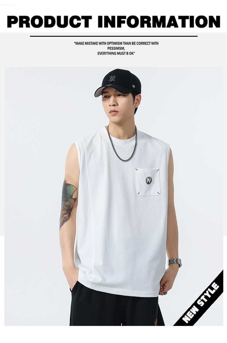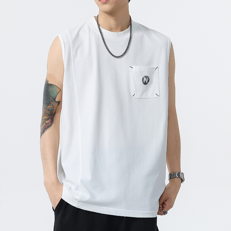 背心男夏季凉感宽松圆领贴袋印花汗背心