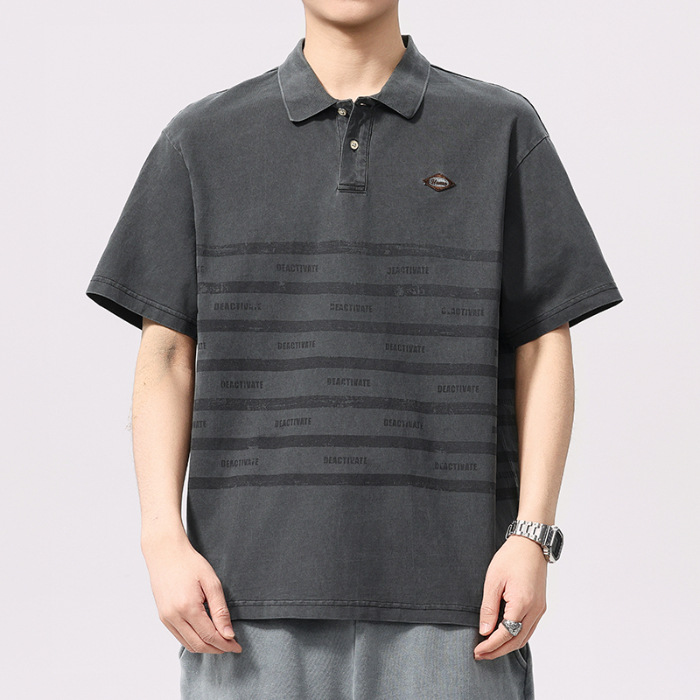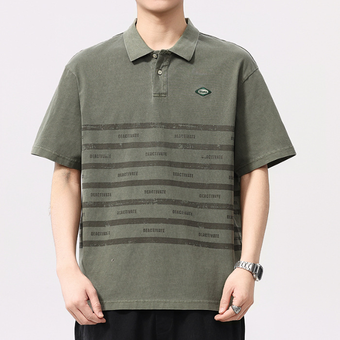 高端美式复古Polo衫短袖男夏季2025新款重磅T恤男纯棉条纹上衣男