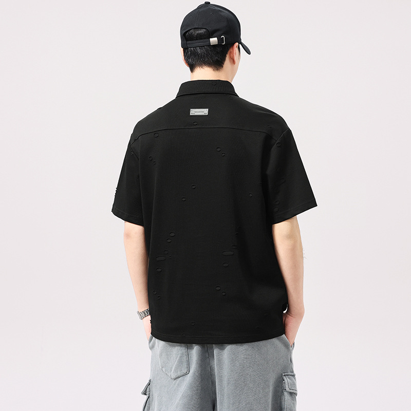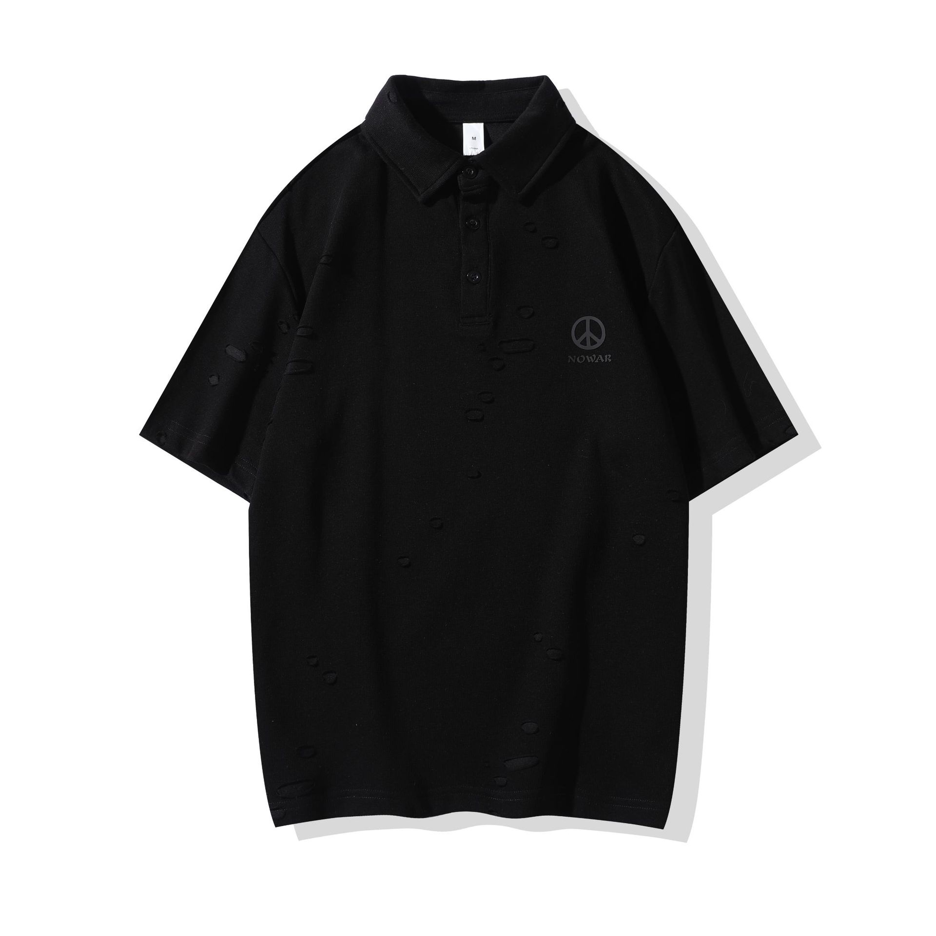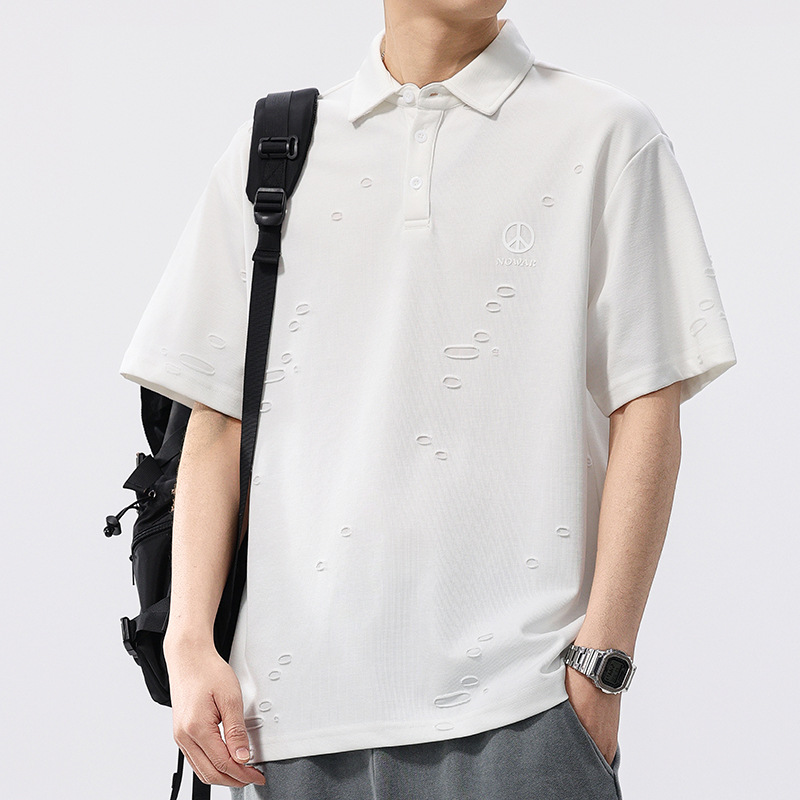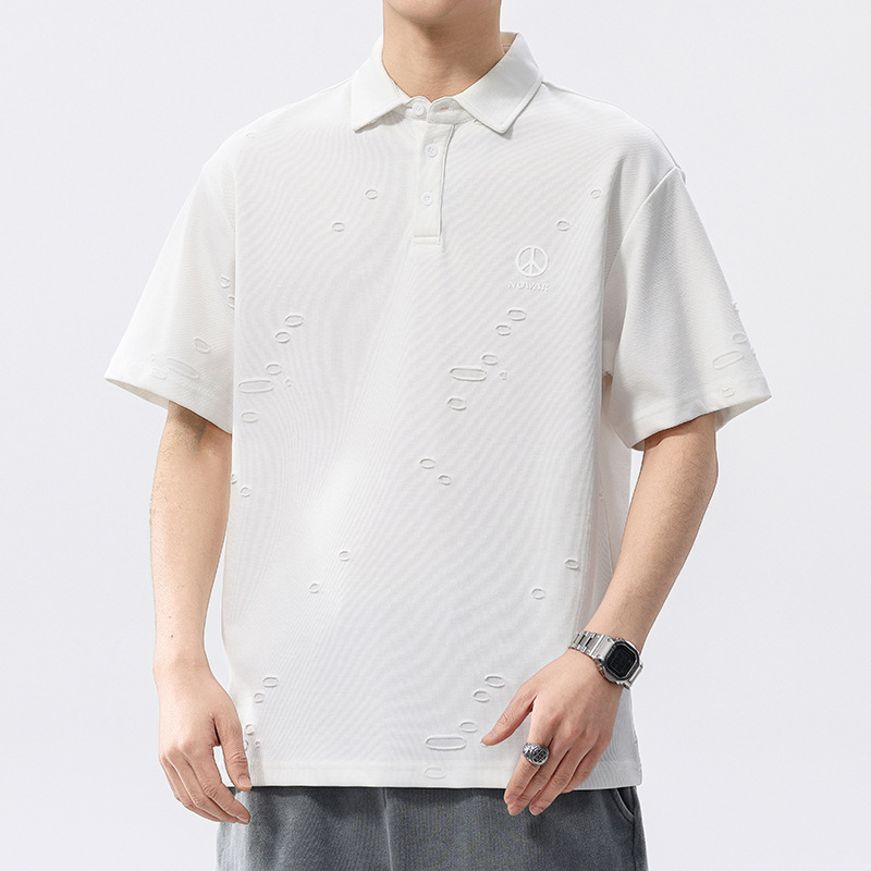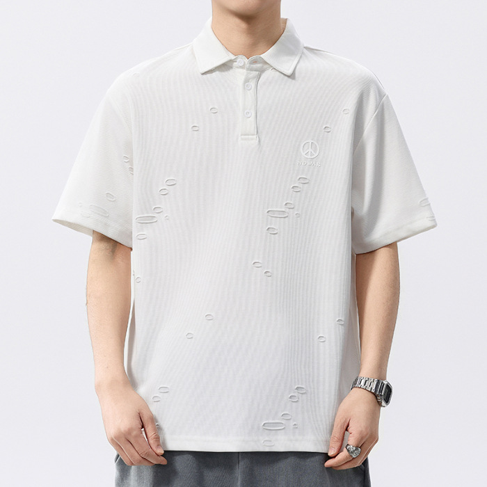 夏季短袖polo衫男士2025新款潮牌破洞百搭t恤男宽松美式休闲上衣