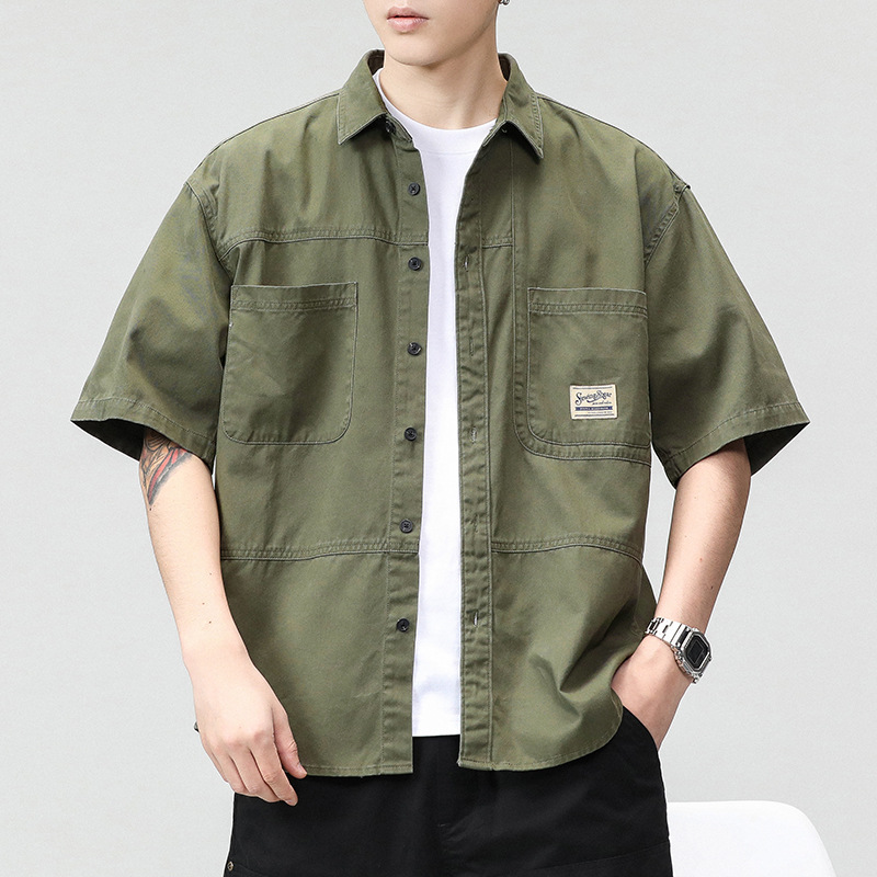 日系复古工装衬衫男士短袖2025新款夏季宽松上衣大码衬衣外套
