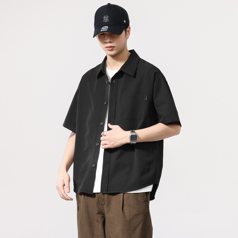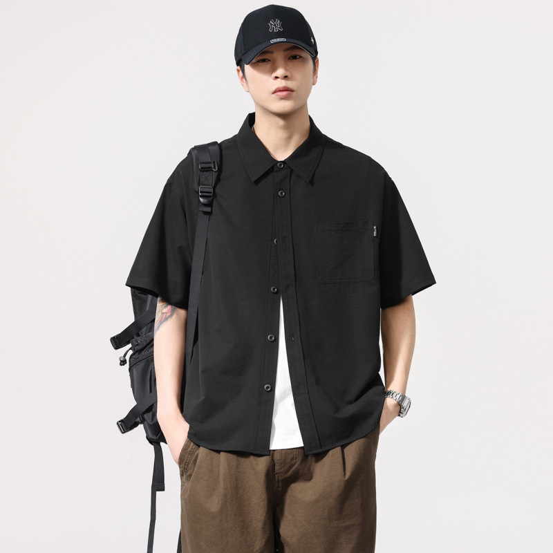 肌理感泡泡纱翻领短袖衬衫男夏季薄款透气休闲半袖抗皱易打理衬衣