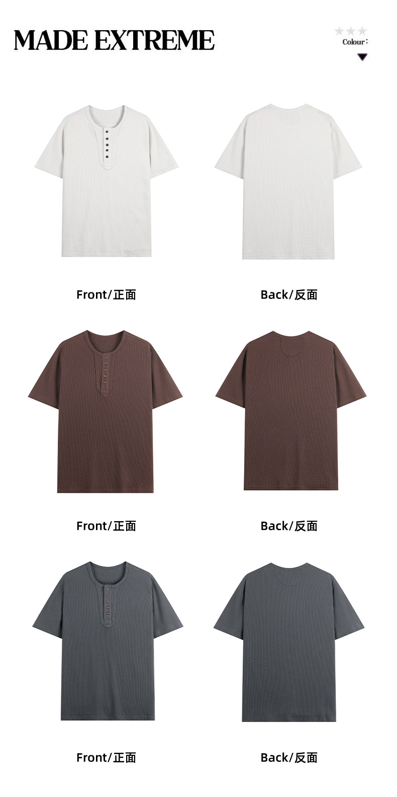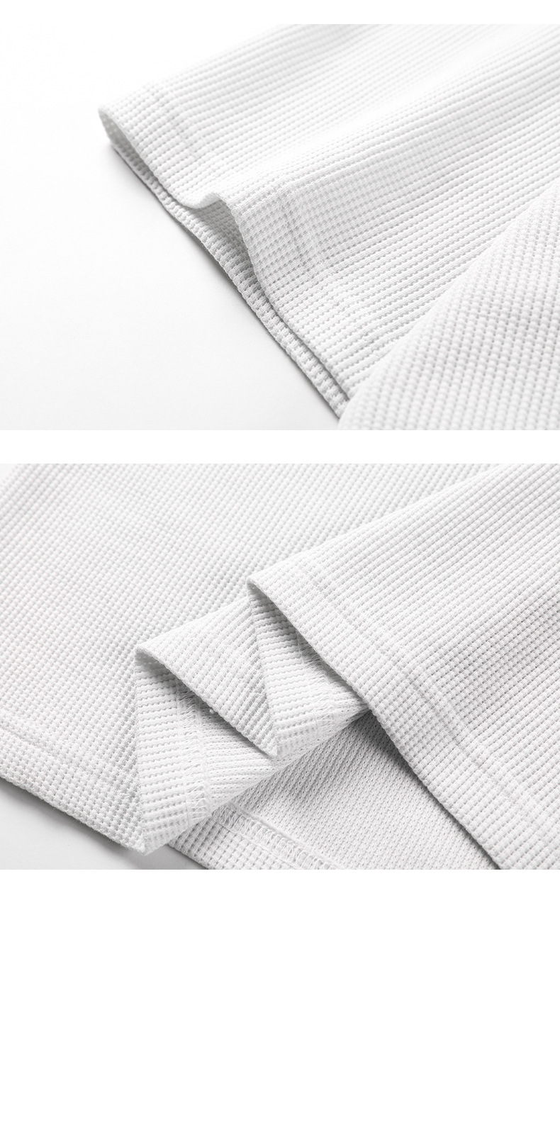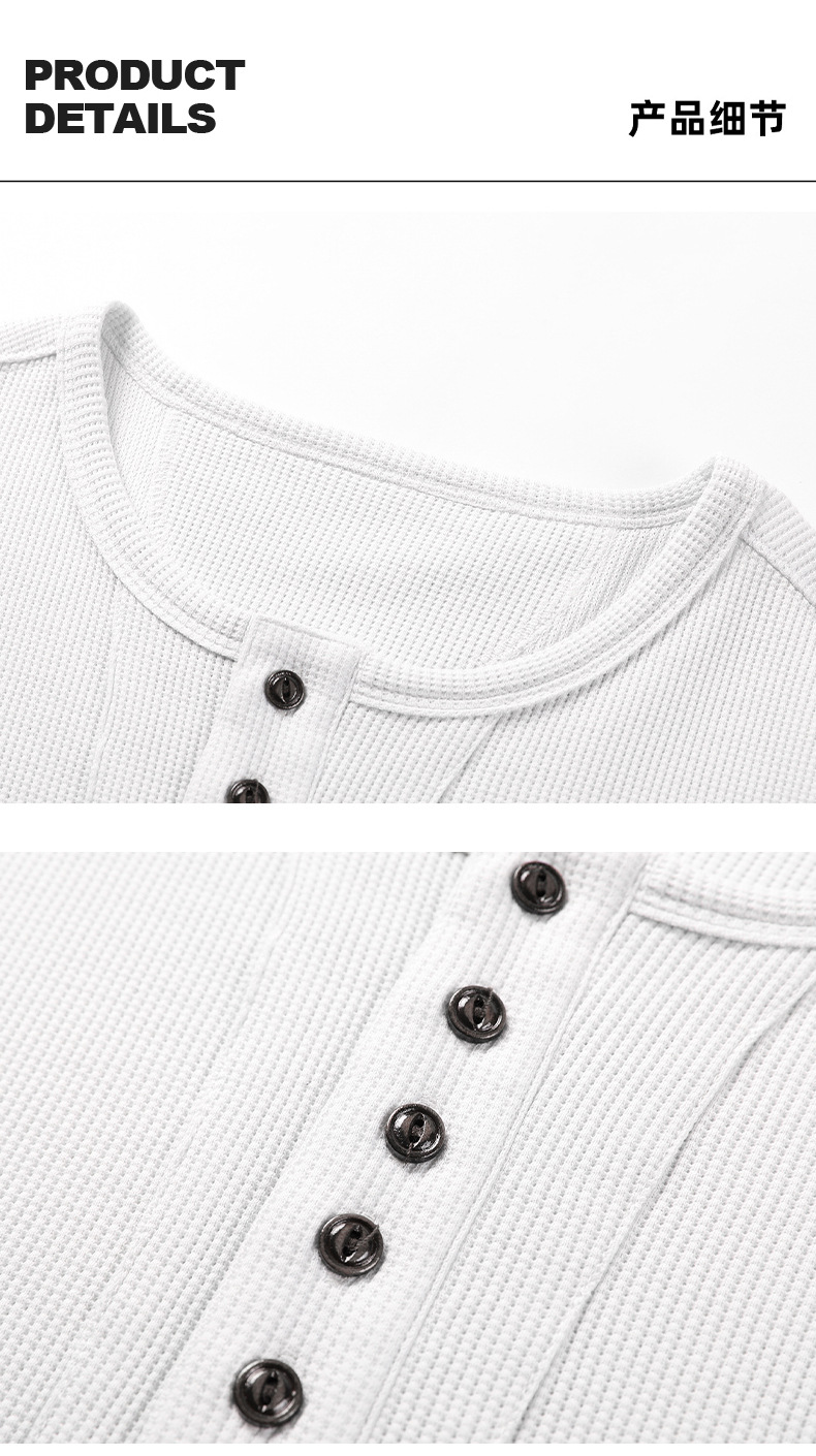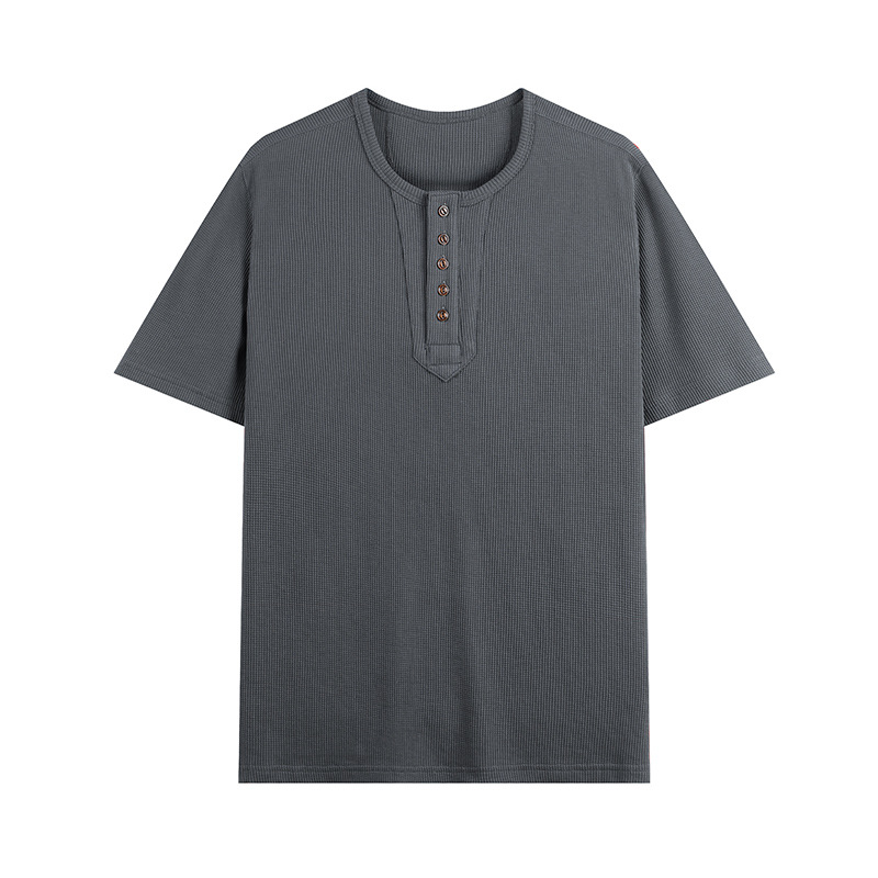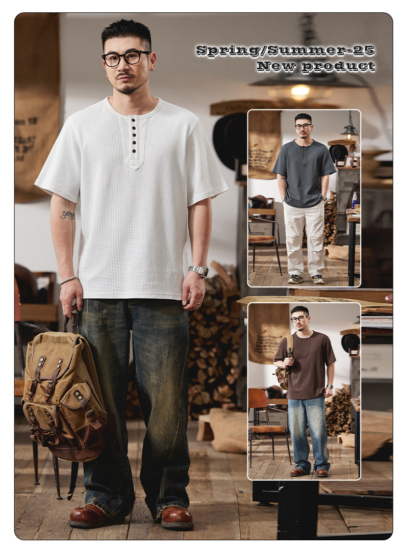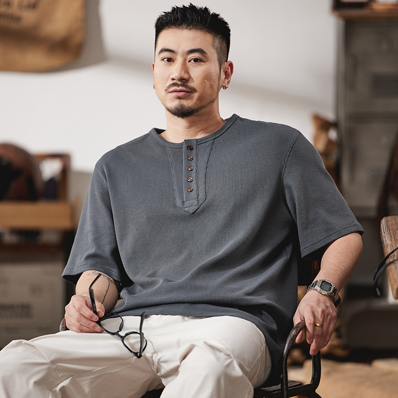 美式复古225G华夫格短袖t恤男亨利领衫宽松夏季薄款透气硬汉穿搭
