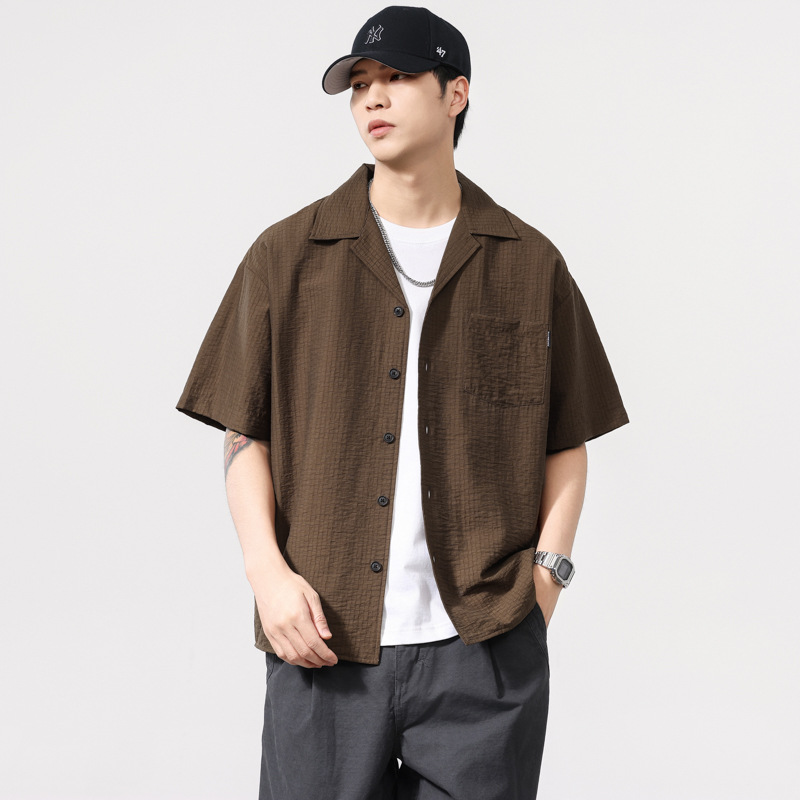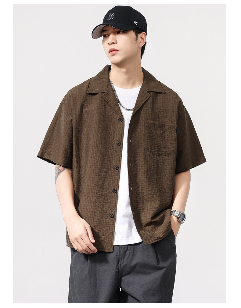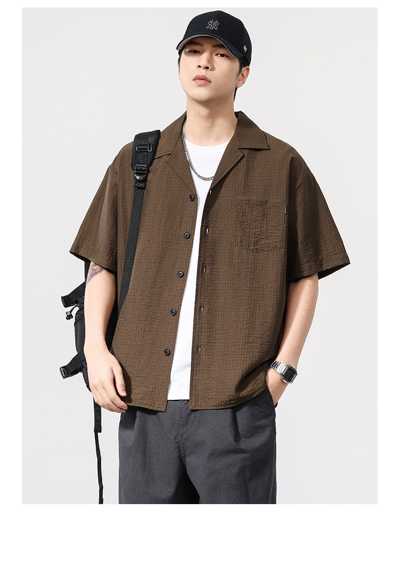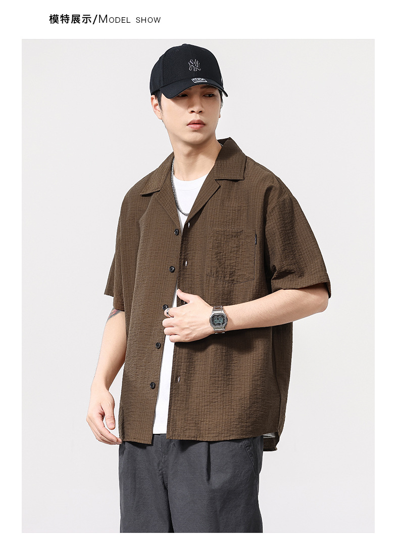 莱赛尔夏季新款短袖衬衫男士宽松大码休闲衬衣轻薄透气半袖衫外套