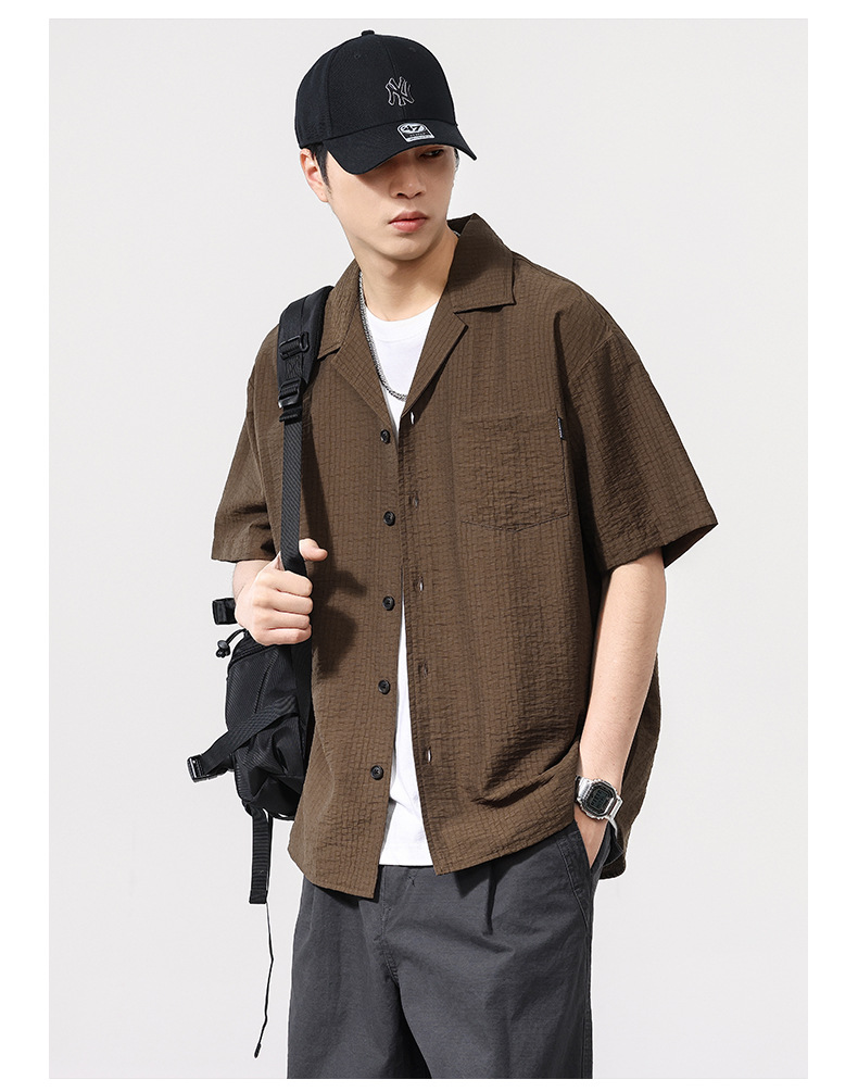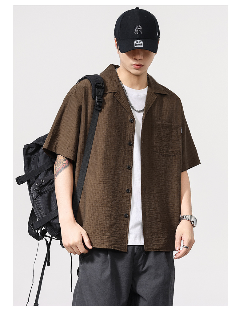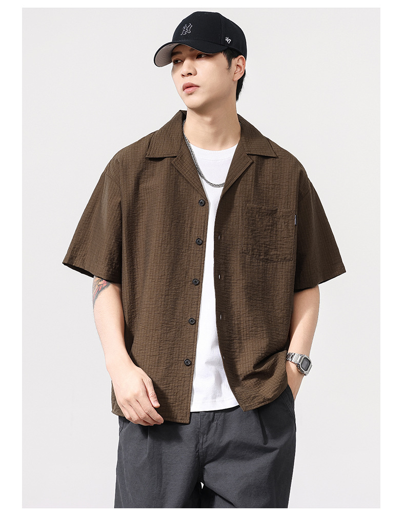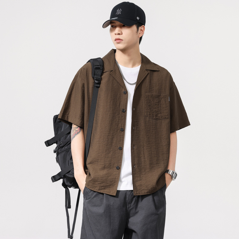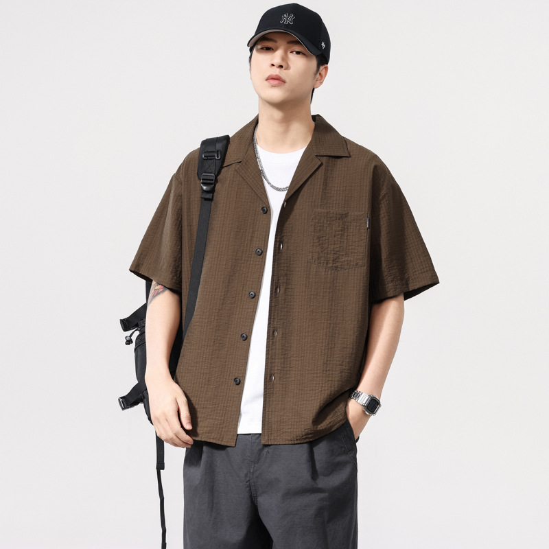 莱赛尔夏季新款短袖衬衫男士宽松大码休闲衬衣轻薄透气半袖衫外套