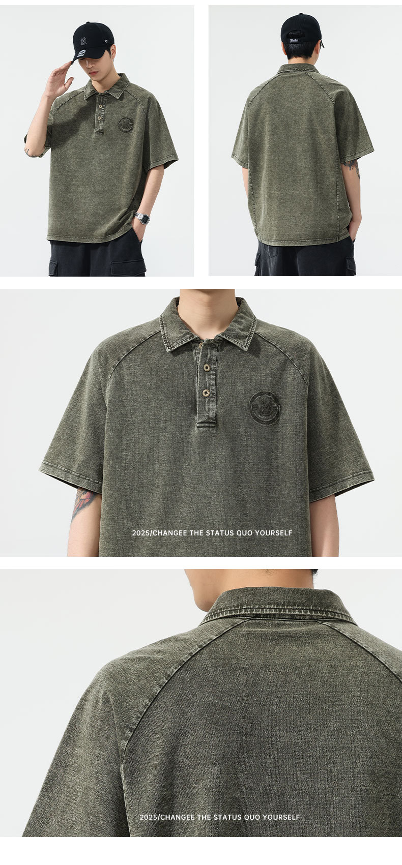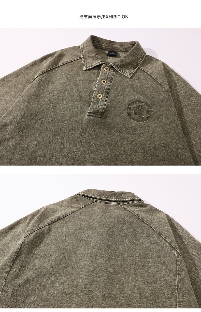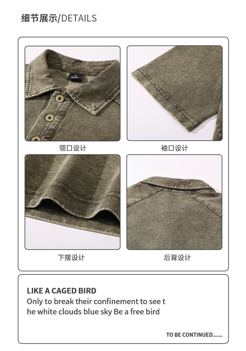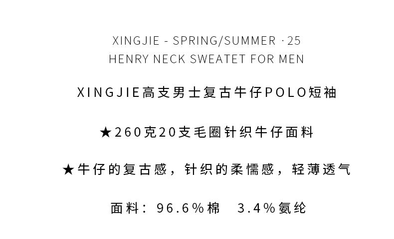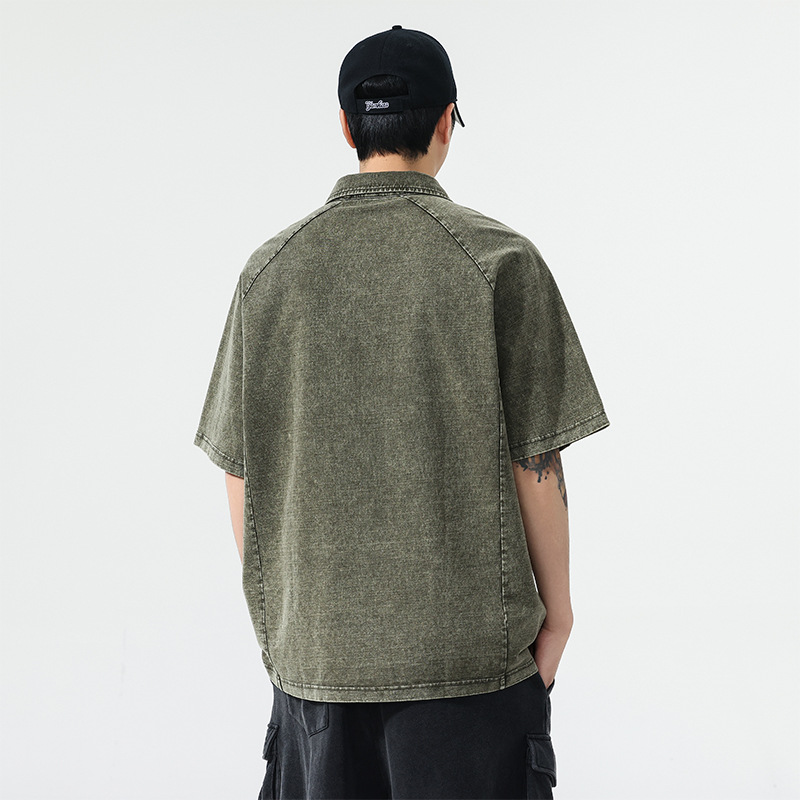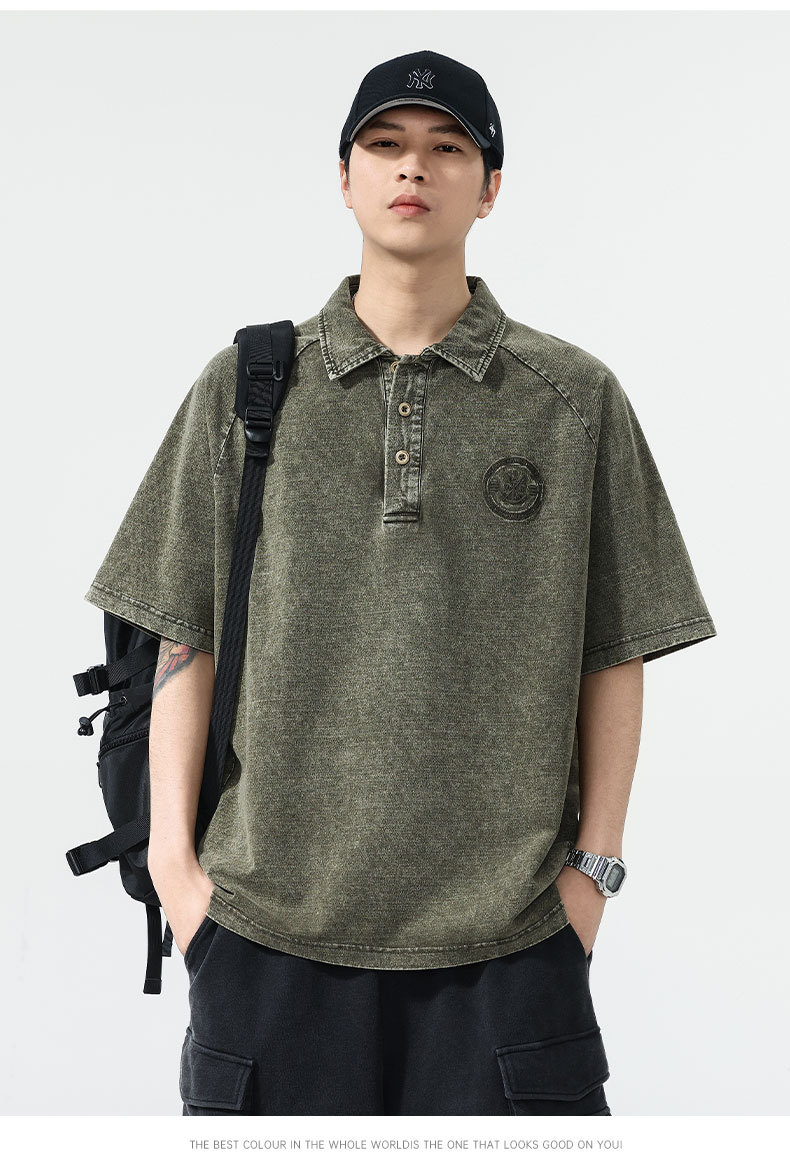 美式复古260g重磅牛仔Polo衫男夏季潮牌短袖男款t恤宽松美式上衣