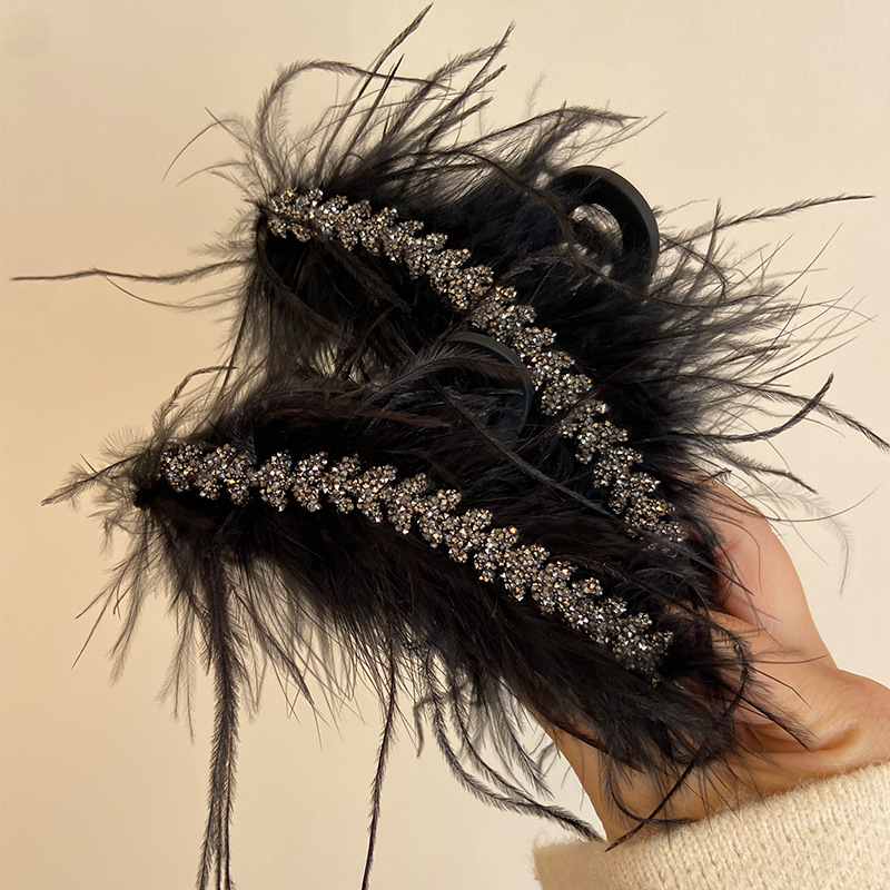 羽毛抓夹ins风毛绒发夹后脑勺超仙发饰高级感麦穗夾子毛毛鲨鱼夹