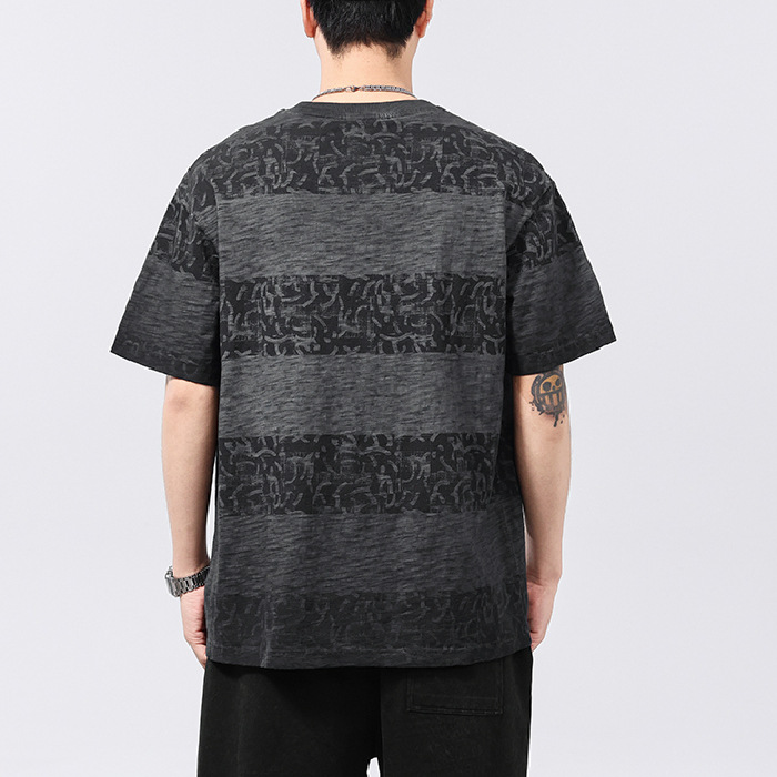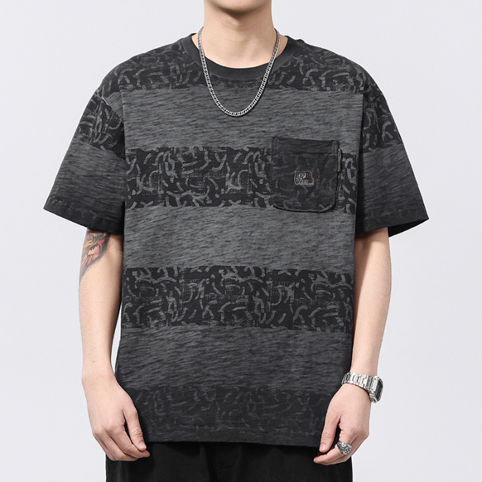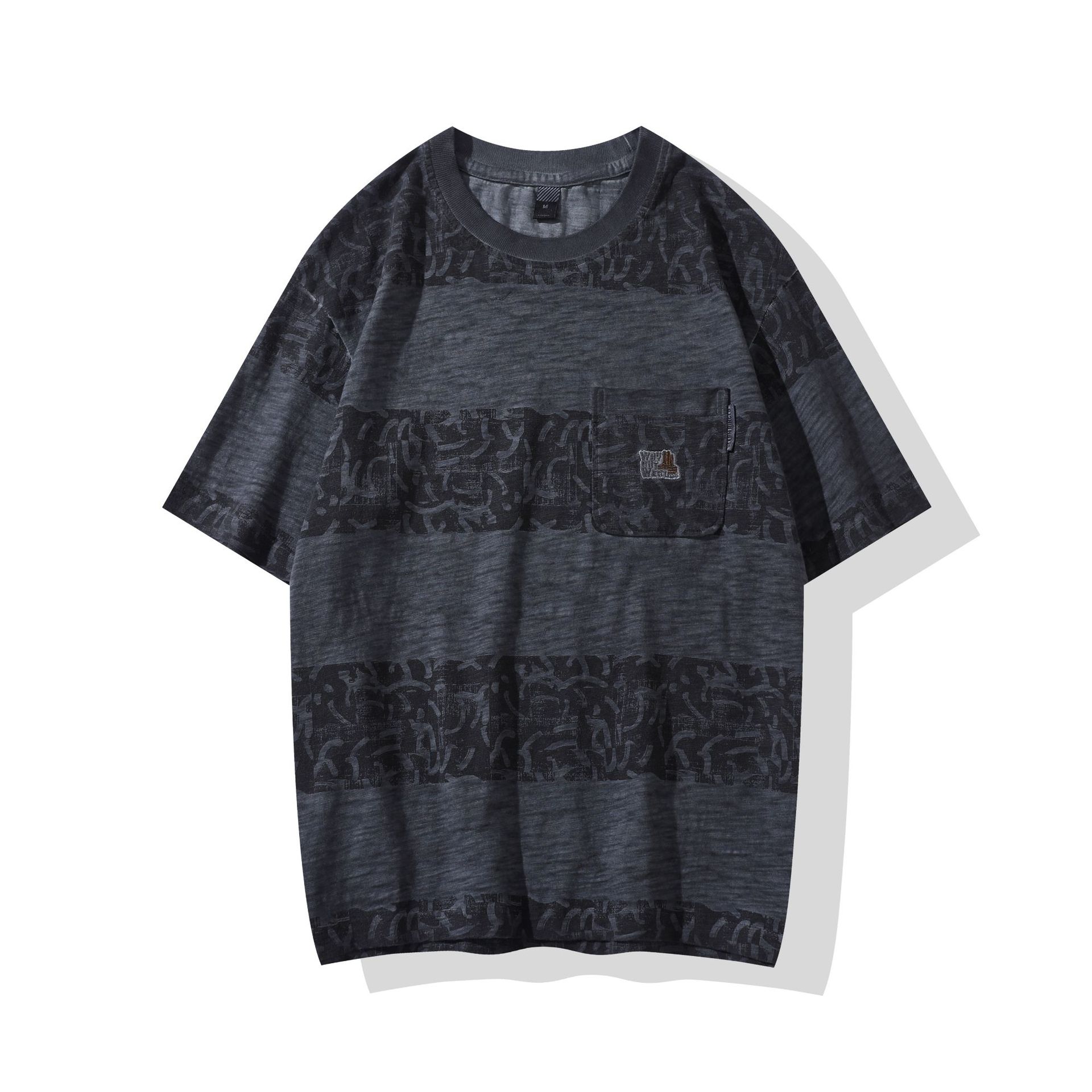 高端美式重磅竹节棉短袖T恤男2025夏季新款宽松休闲撞色印花体恤