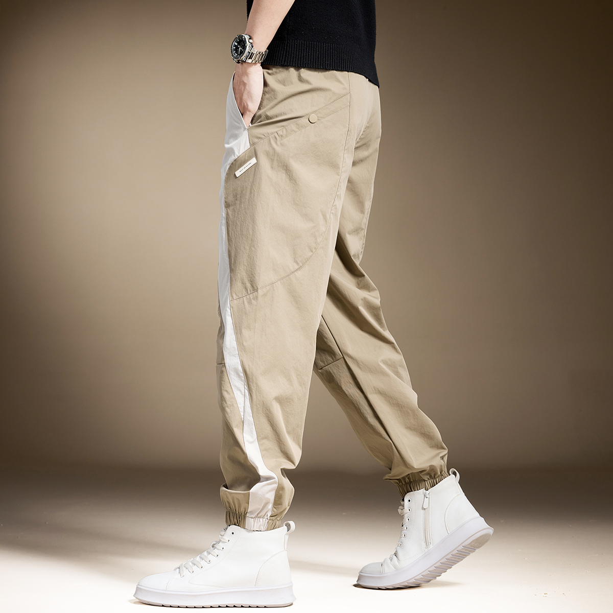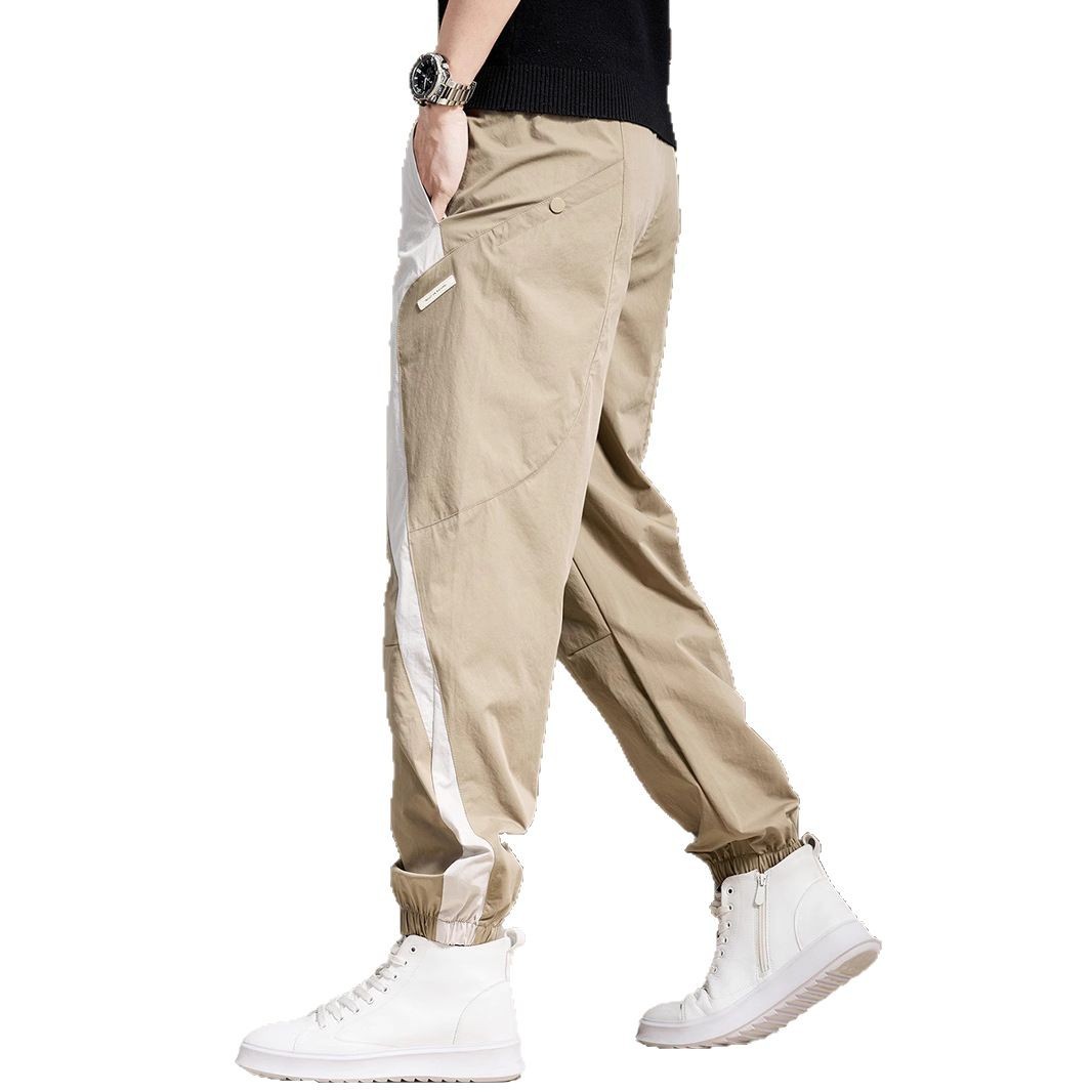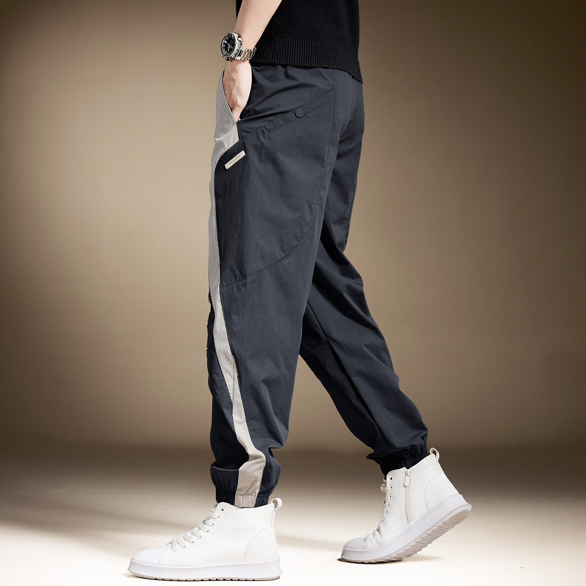 高端美式撞色拼接速干休闲裤男夏季薄款设计感宽松大码束脚运动裤