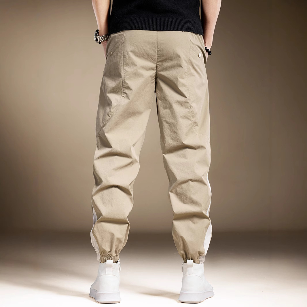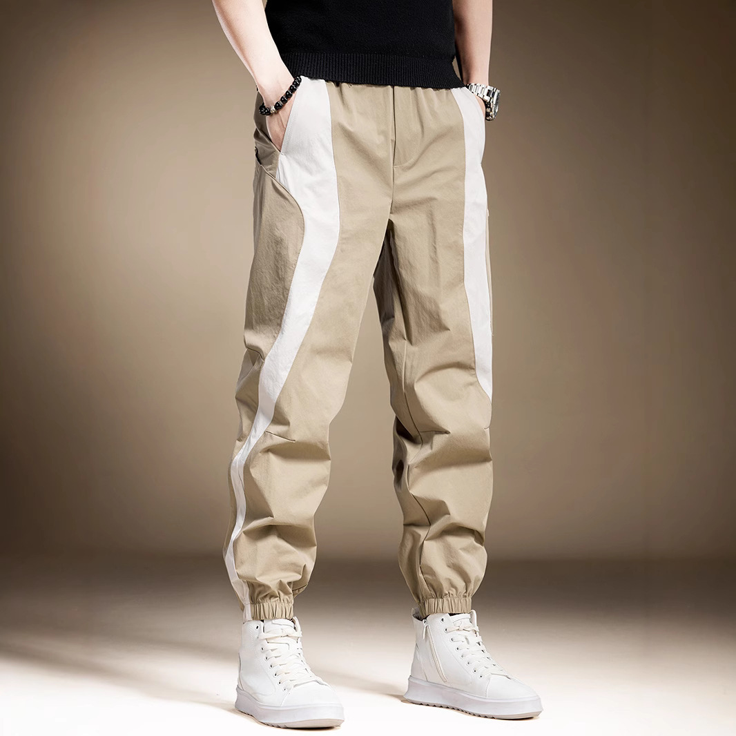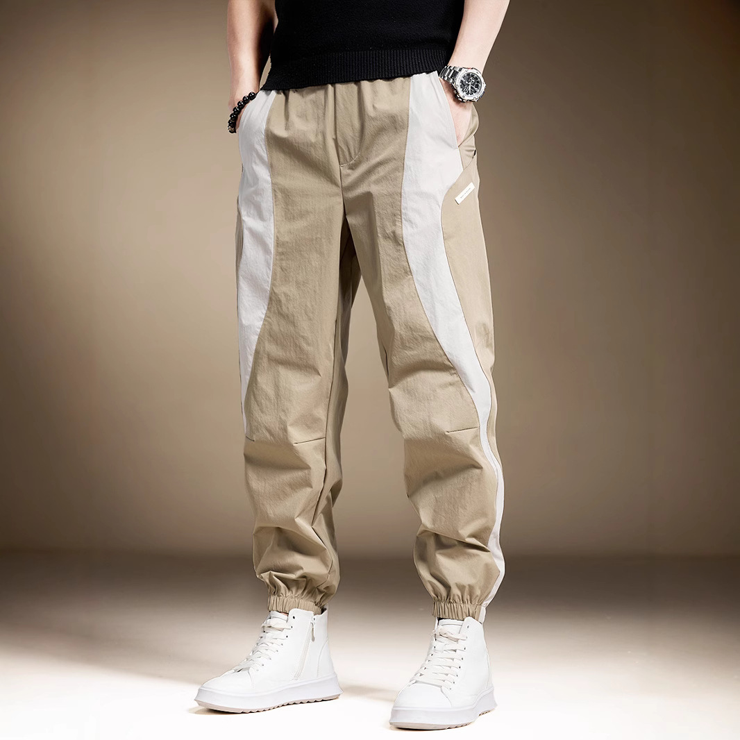 高端美式撞色拼接速干休闲裤男夏季薄款设计感宽松大码束脚运动裤