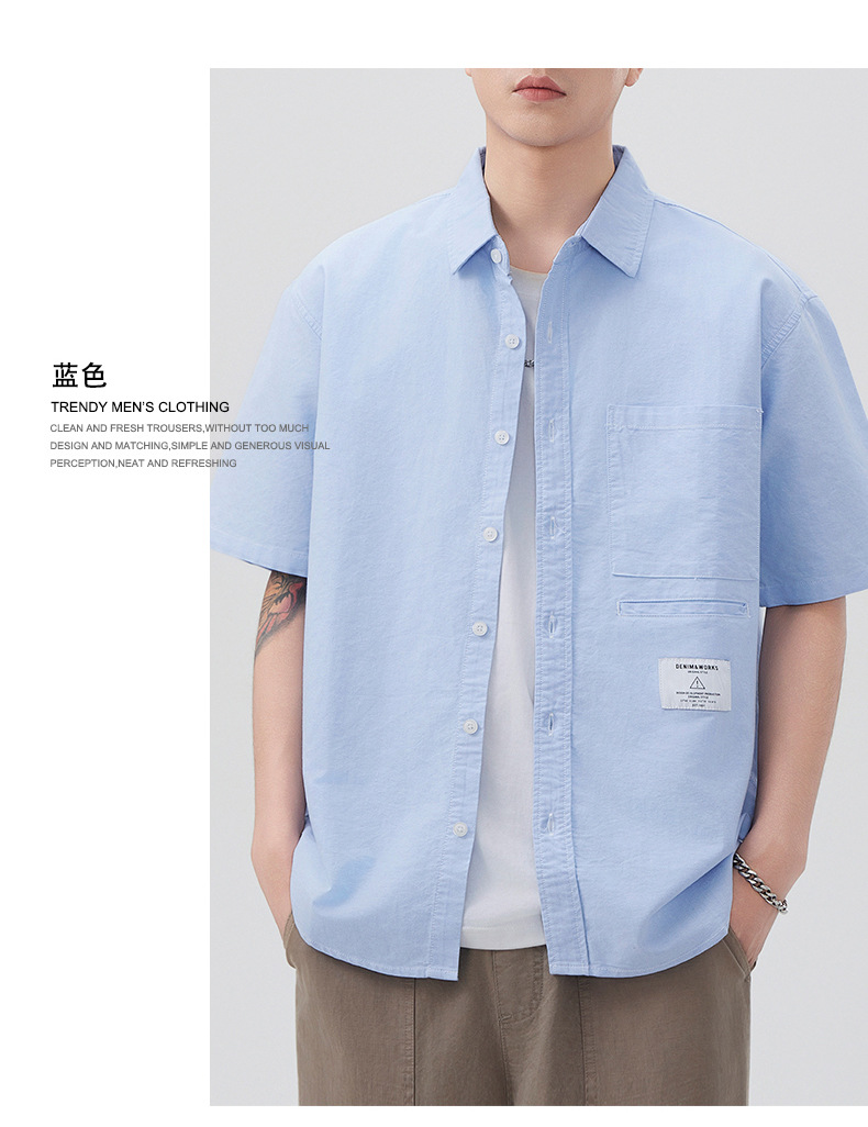 2025夏季新款工装短袖衬衫男宽松美式潮牌休闲翻领衬衣薄款外套潮