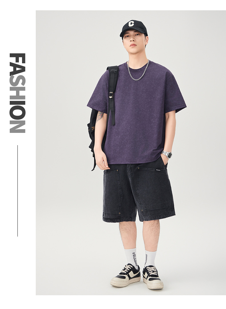 300g重磅蜡染短袖T恤男夏季潮流脏脏风上衣宽松圆领半袖体恤