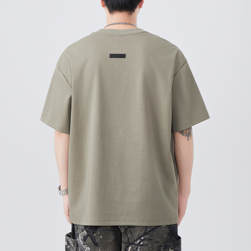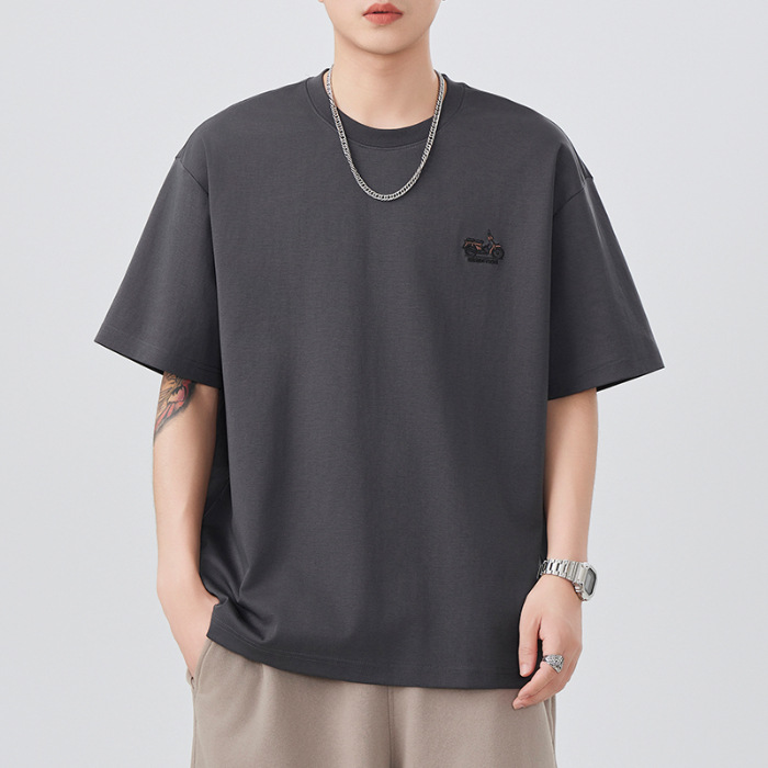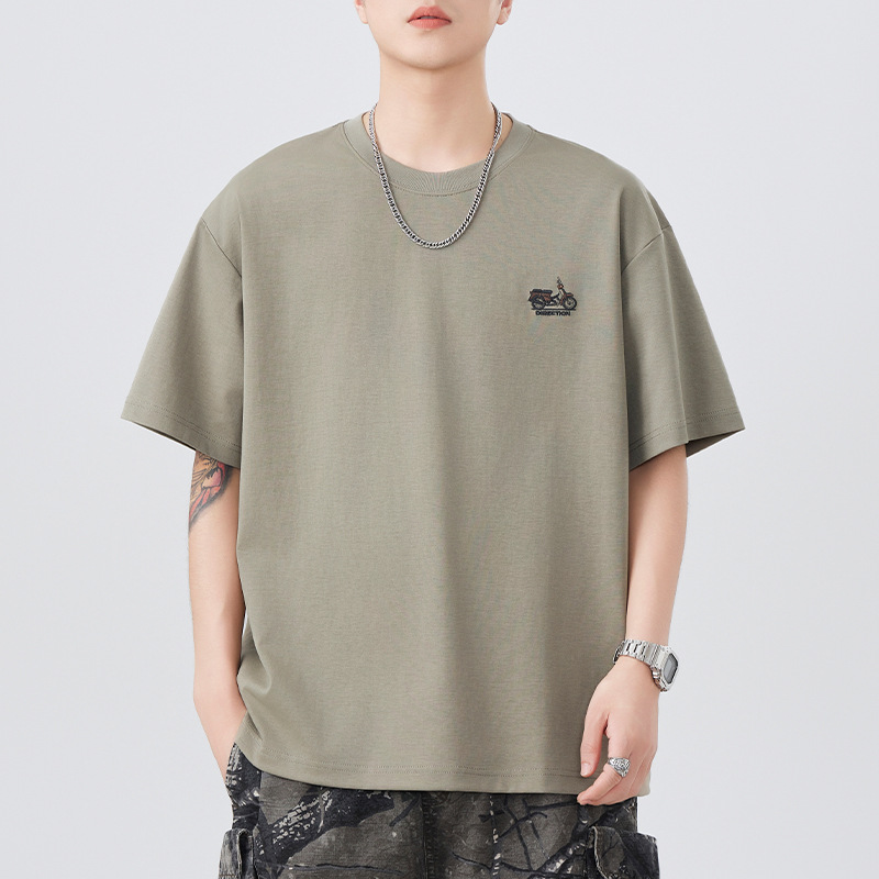 2025夏季新款短袖T恤男简约刺绣百搭五分袖体恤衫宽松潮流弹力上