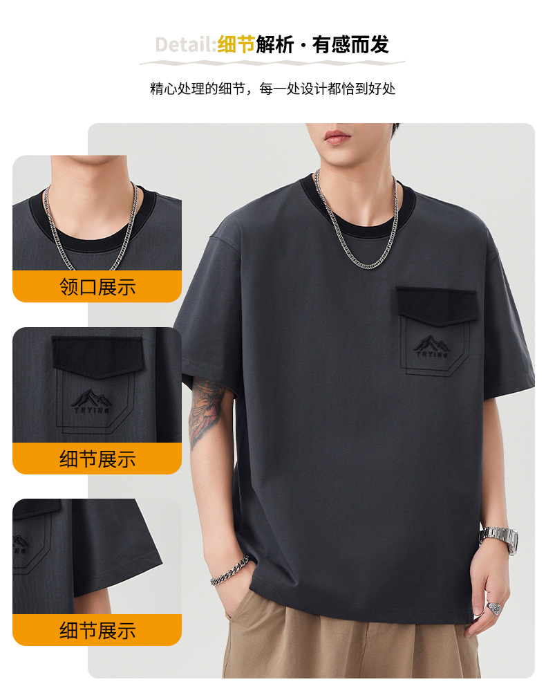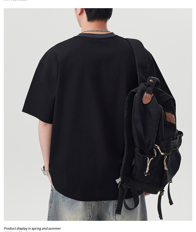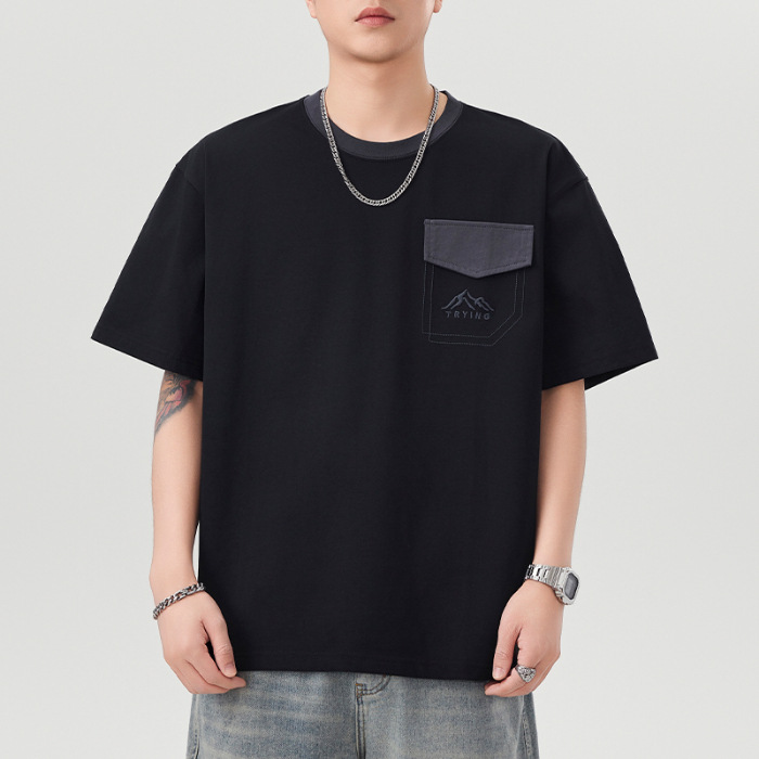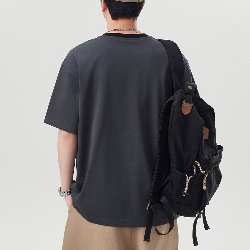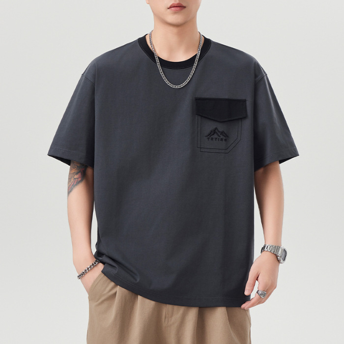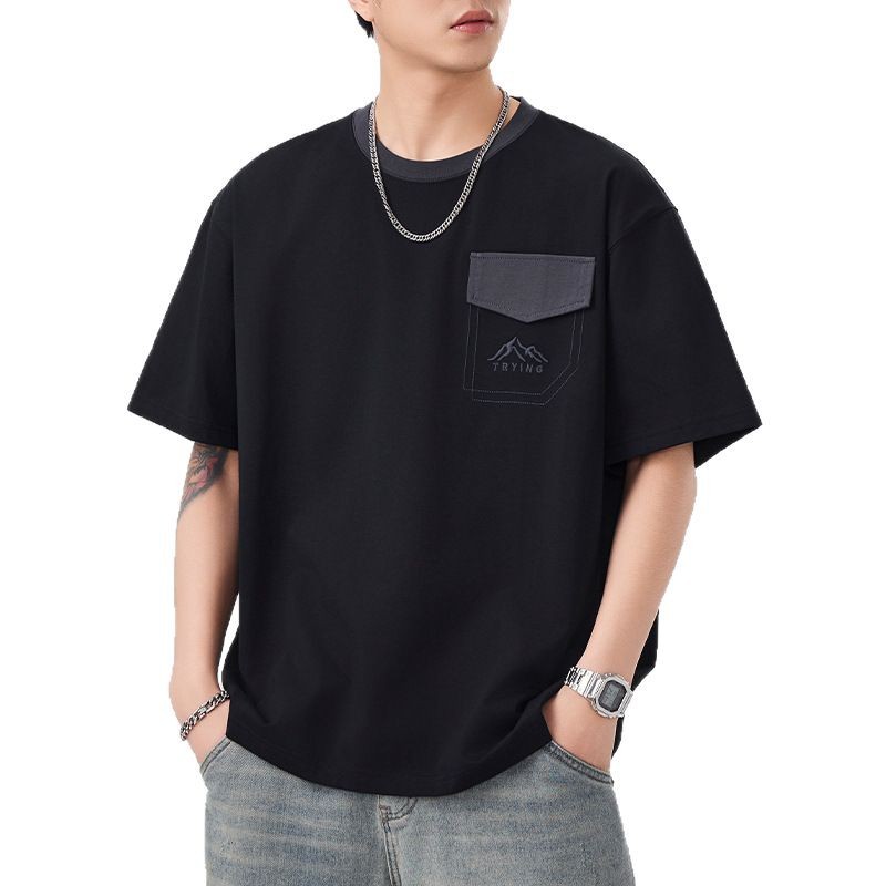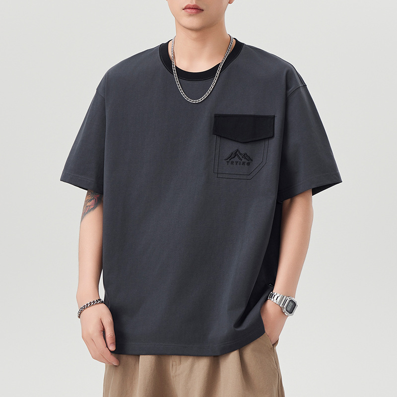 山系美式复古潮牌工装短袖t恤男士夏季新款痞帅休闲半袖体恤衫男