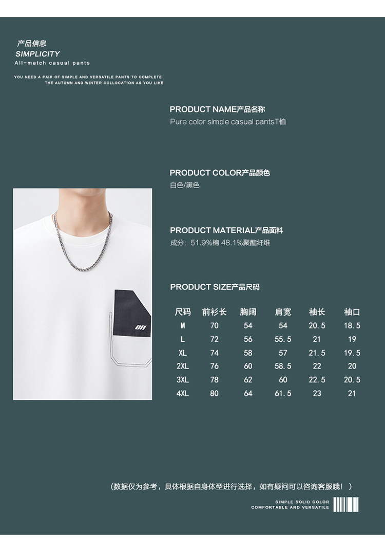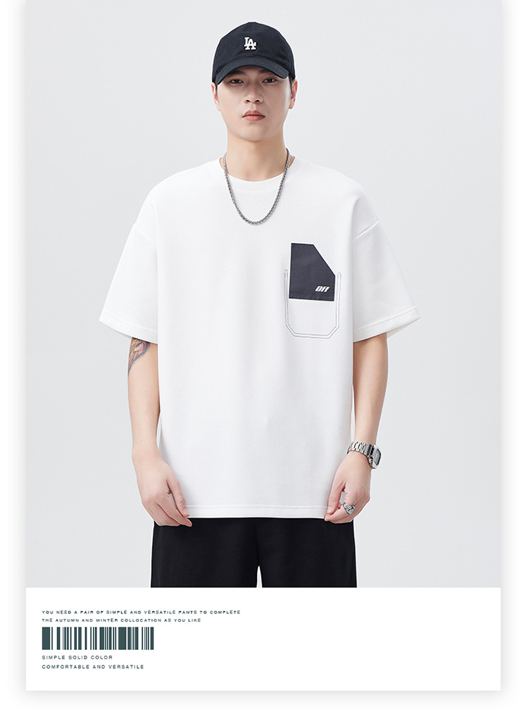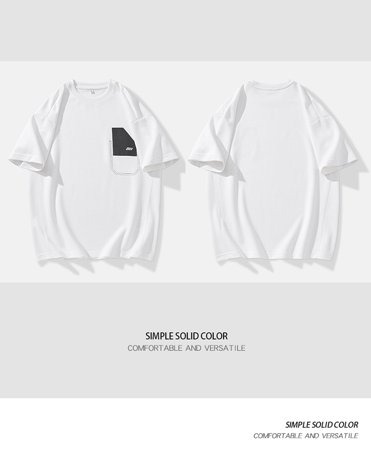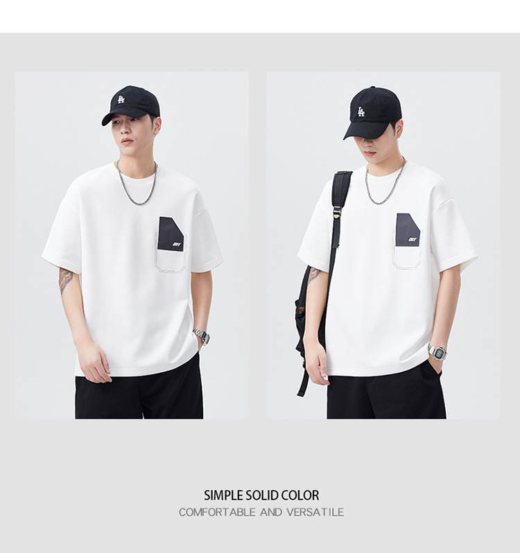 机能口袋拼接圆领短袖t恤男士宽松美式潮流结构设计半袖体恤男装