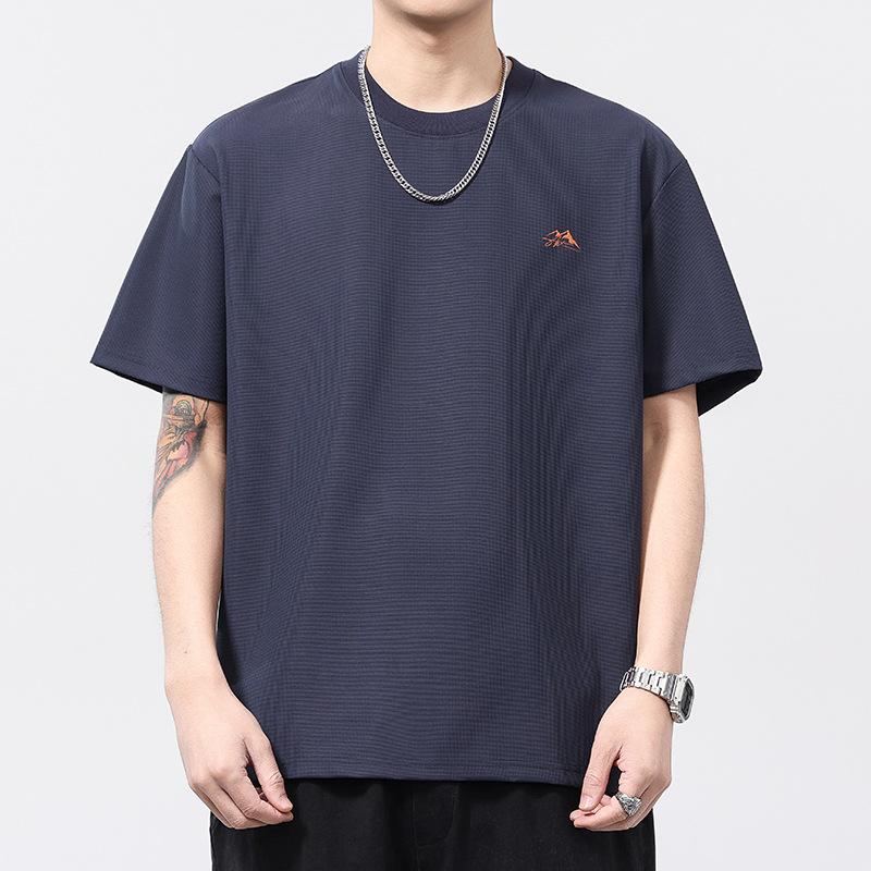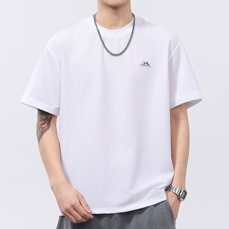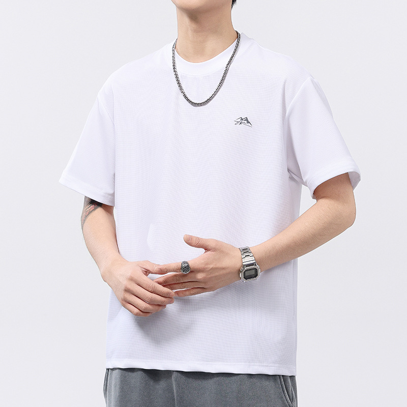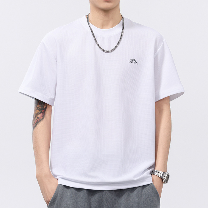 2025夏季凉感冰丝体恤衫男宽松落肩袖t恤美式印花圆领打底上衣