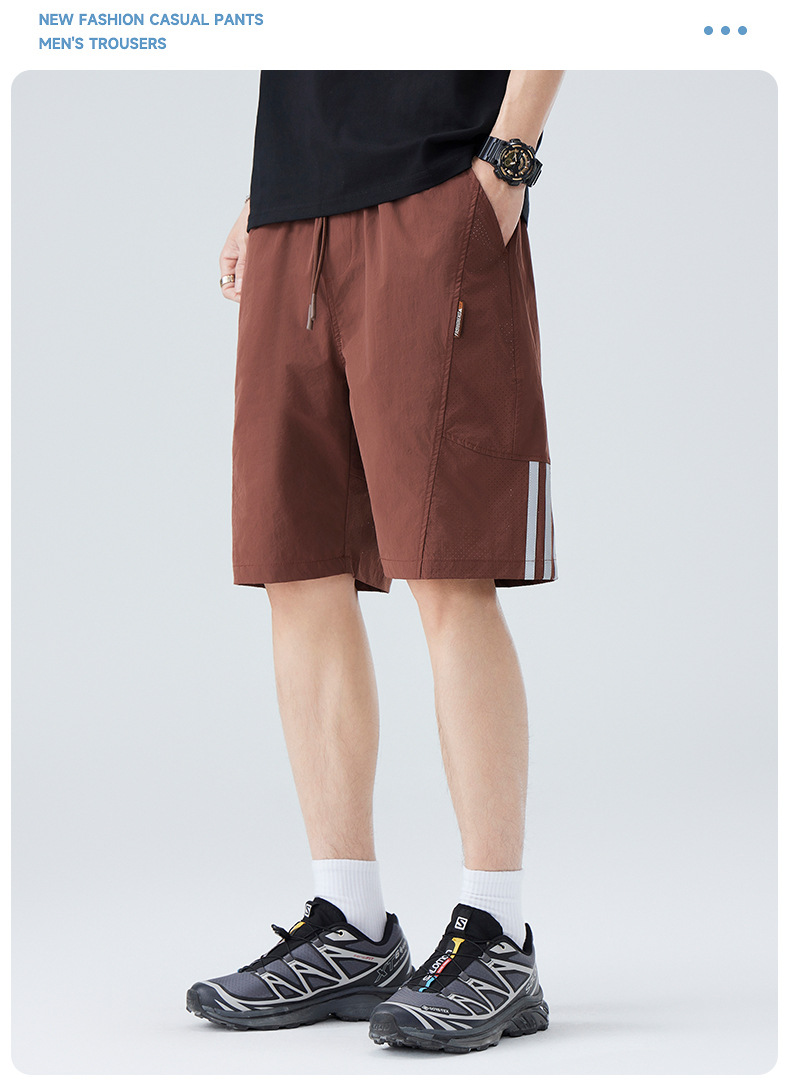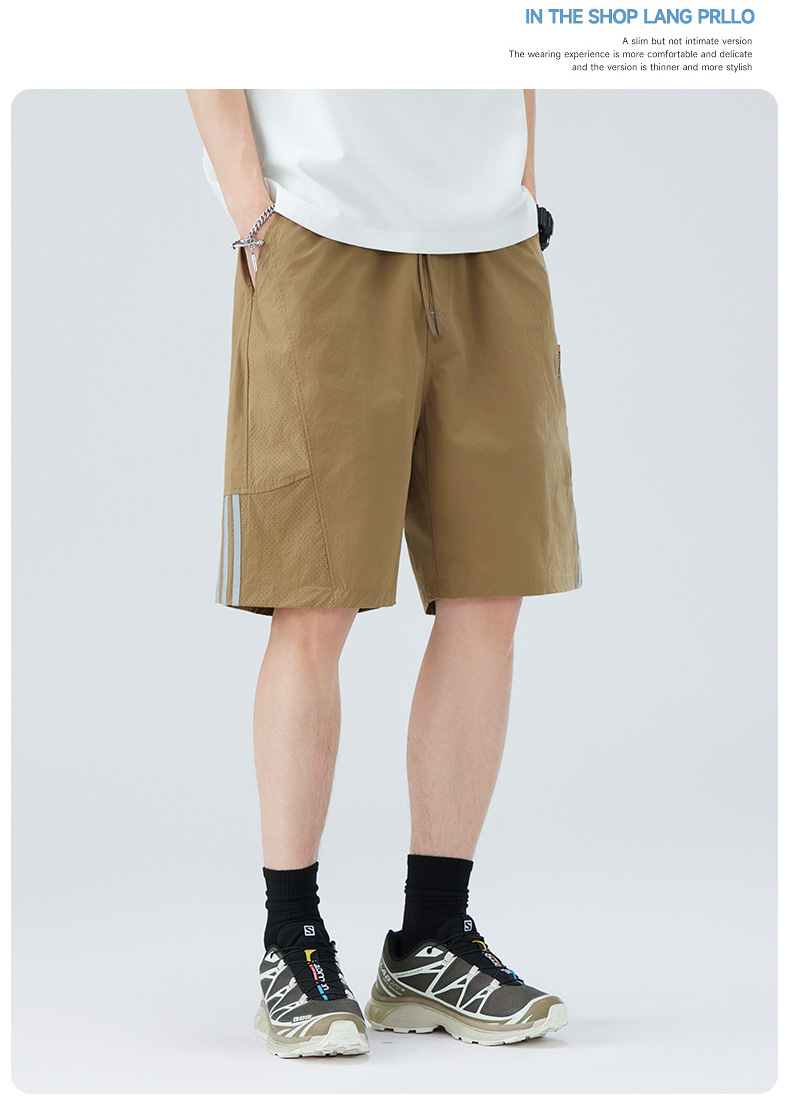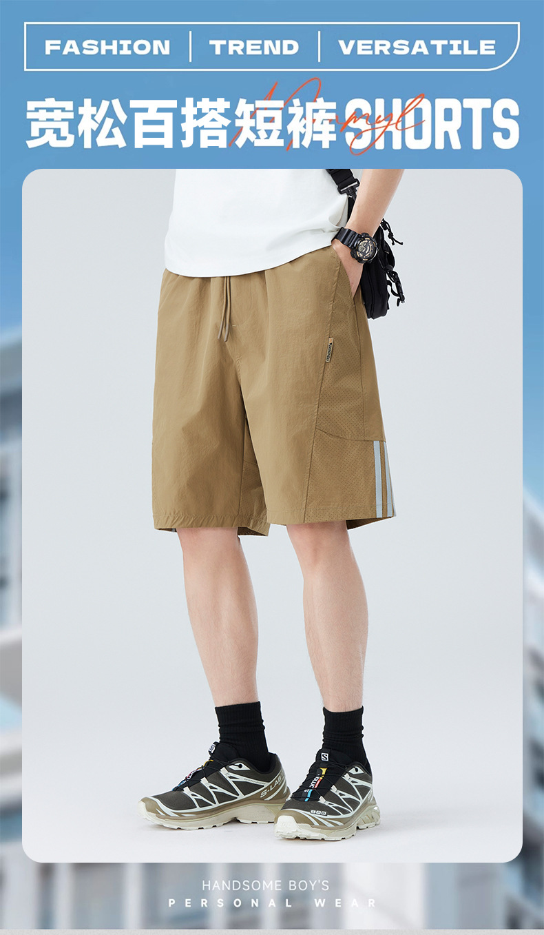 户外孔眼速干短裤男士2025夏季条纹透气凉感运动三条杠休闲五分裤