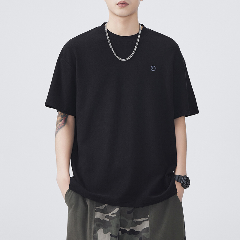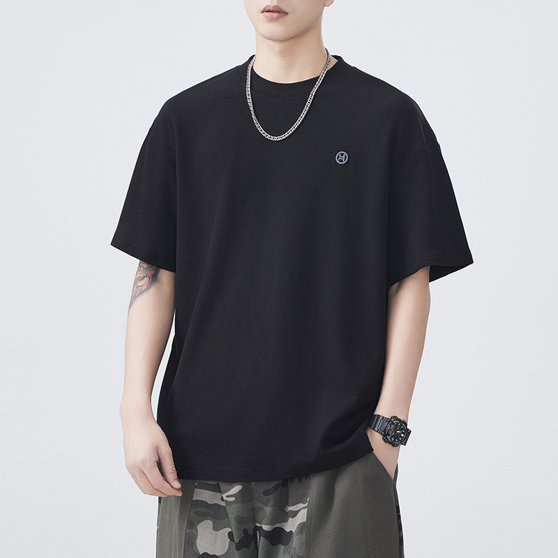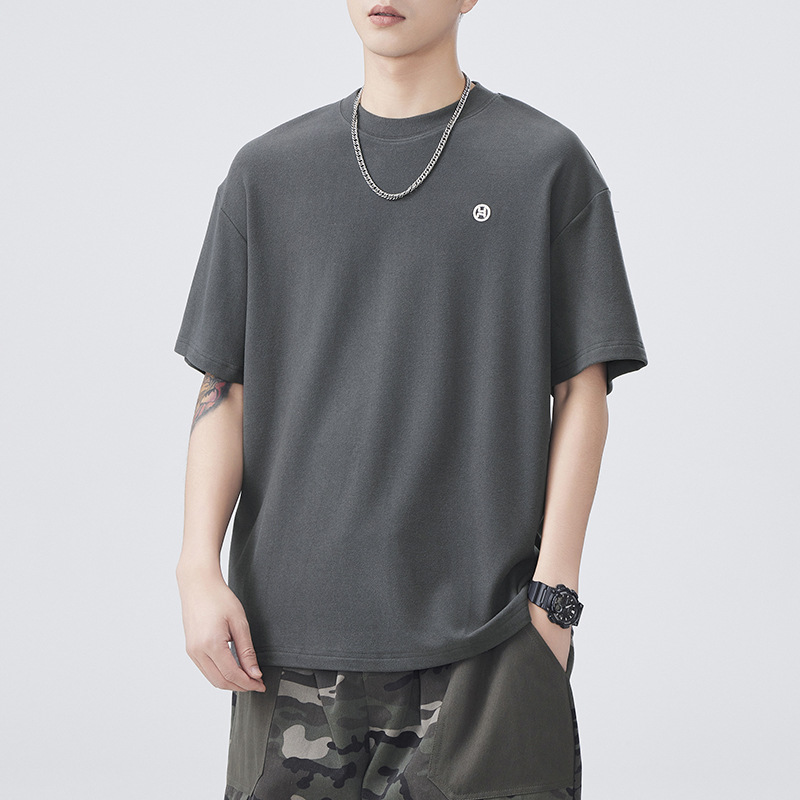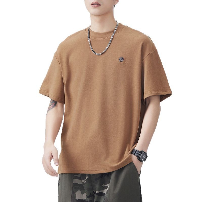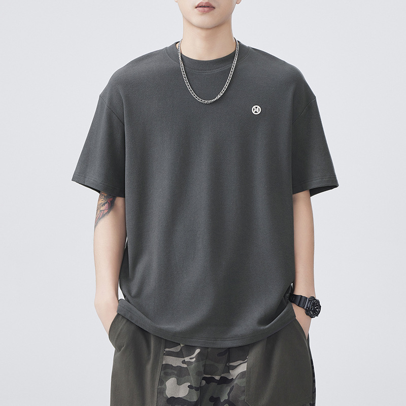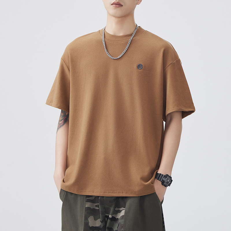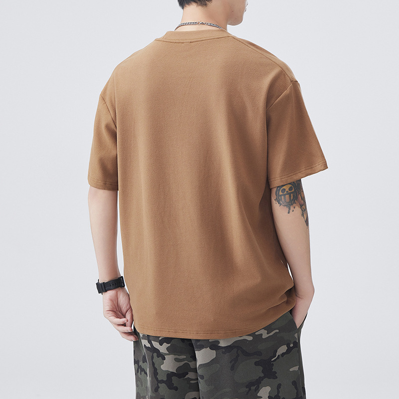 日系复古短袖T恤男士夏季2025新款宽松圆领纯色百搭潮牌半袖上衣