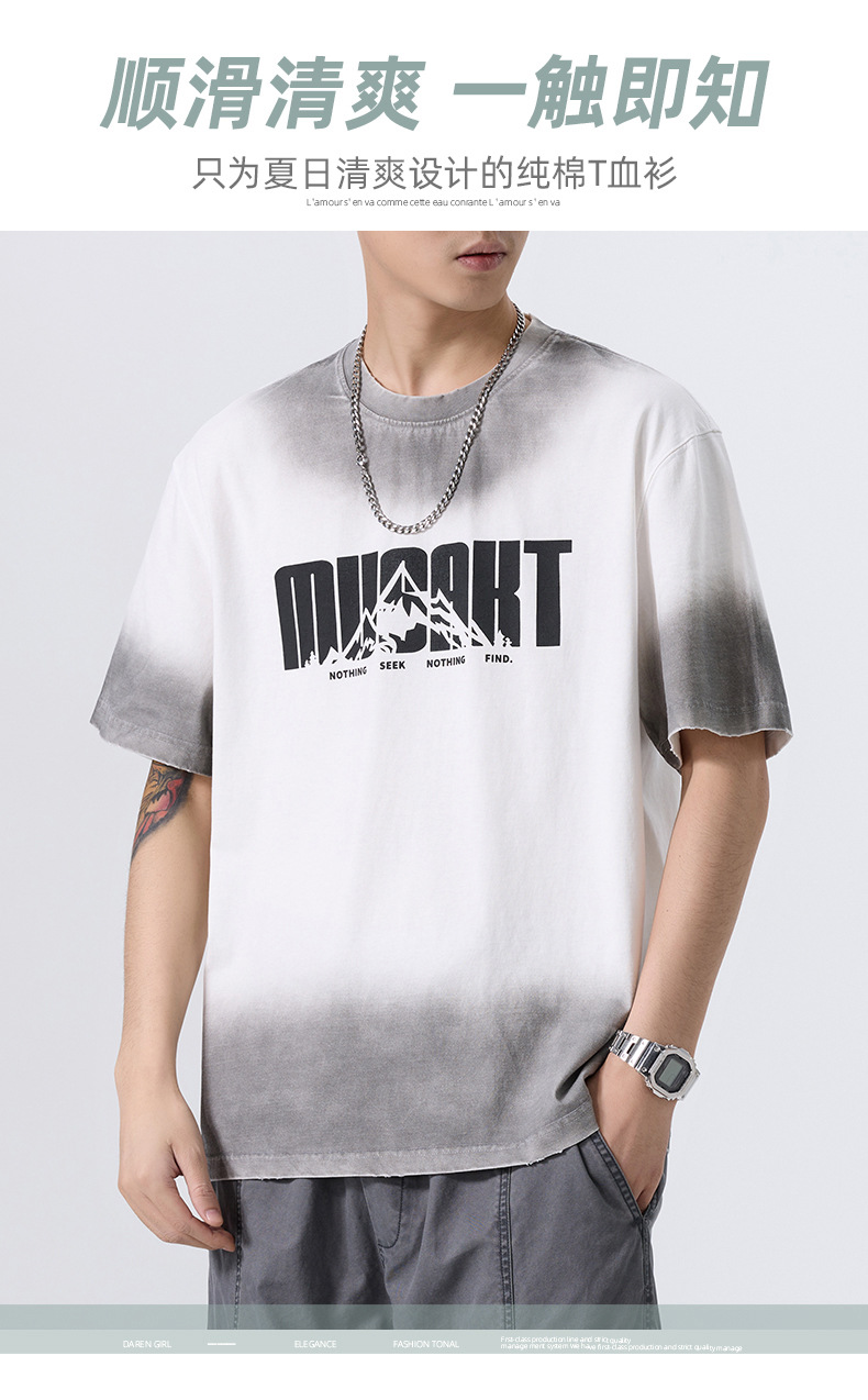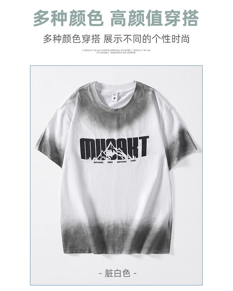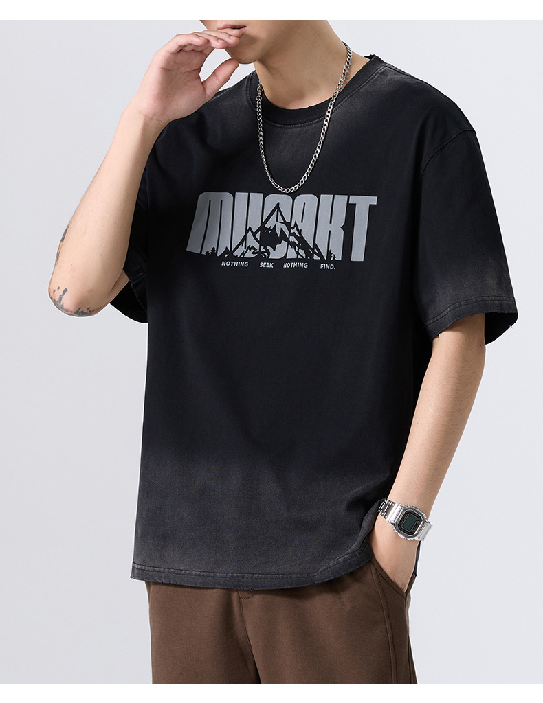 美式复古脏染水洗短袖男夏季重磅纯棉T恤男士潮流印花宽松上衣男