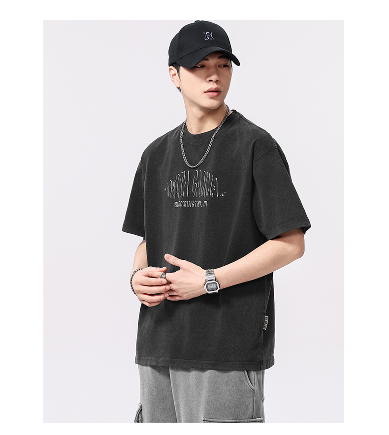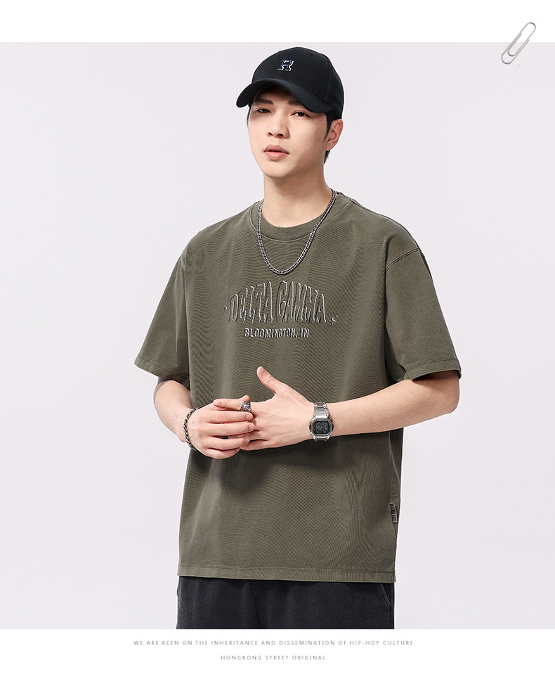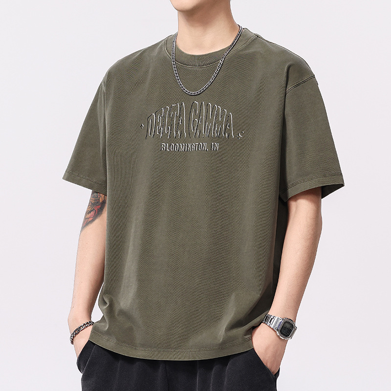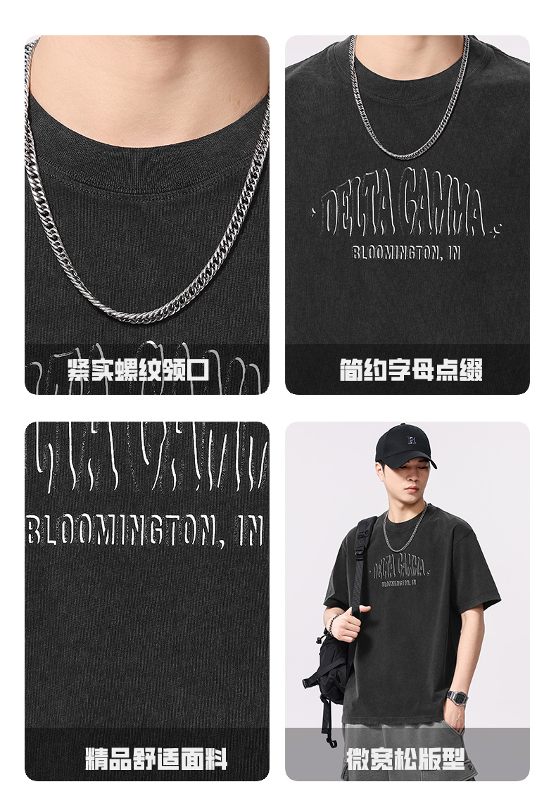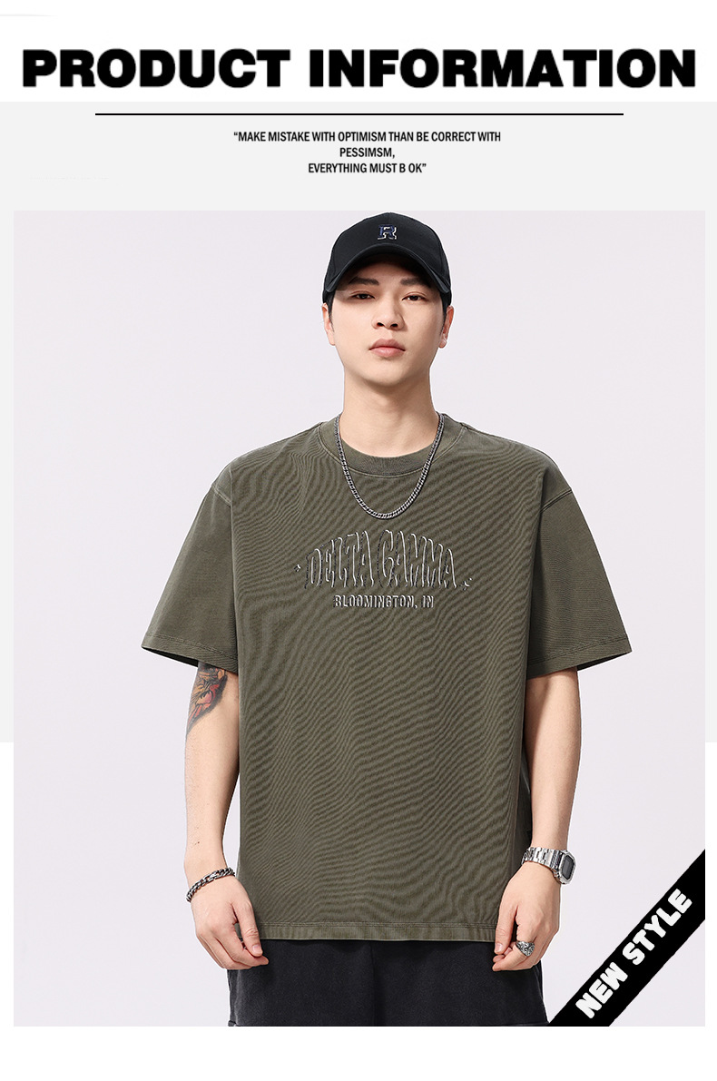 高端美式纯棉重磅石磨水洗T恤男短袖260g夏季新款体恤宽松上衣男