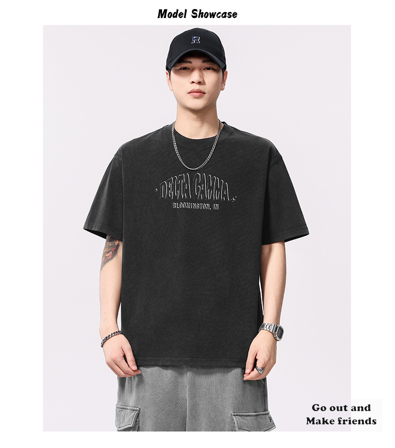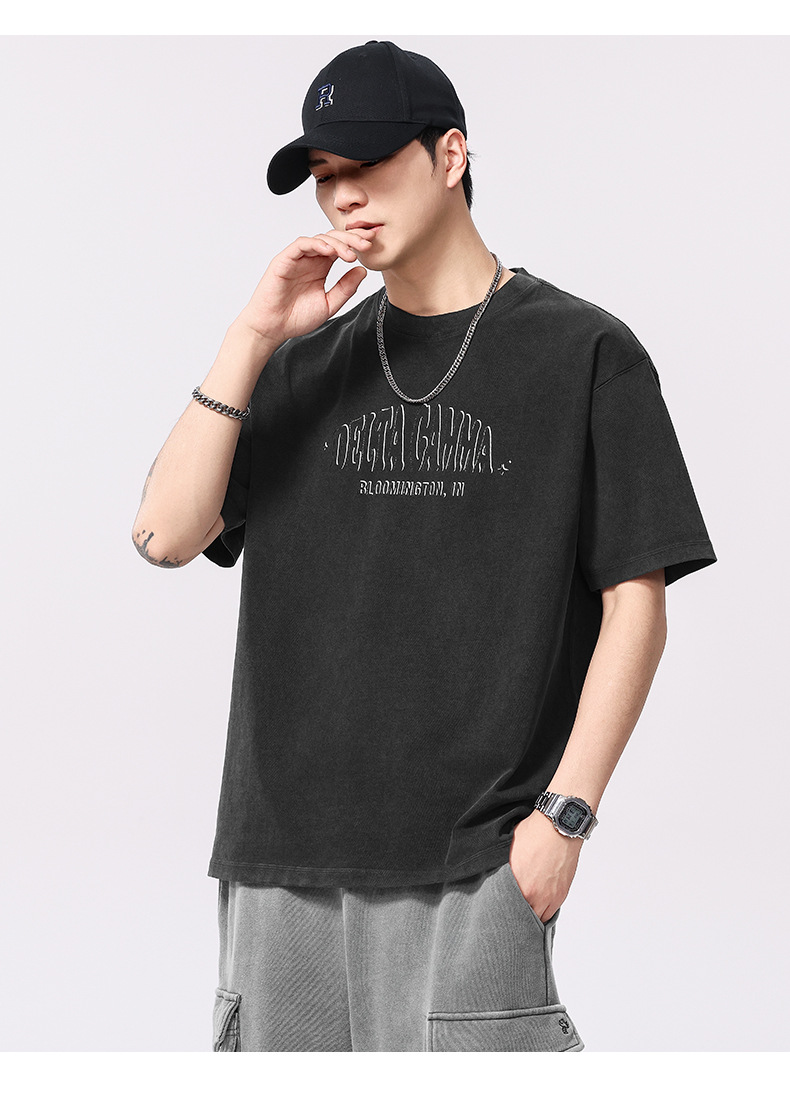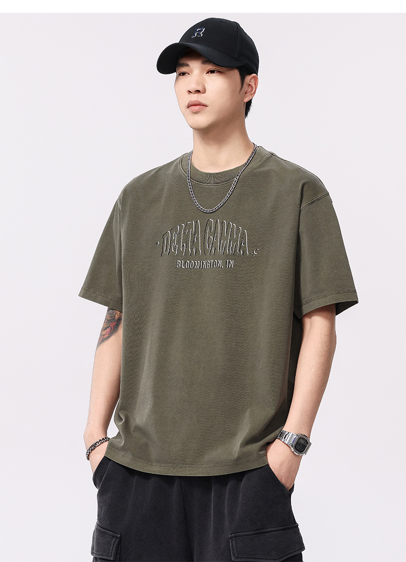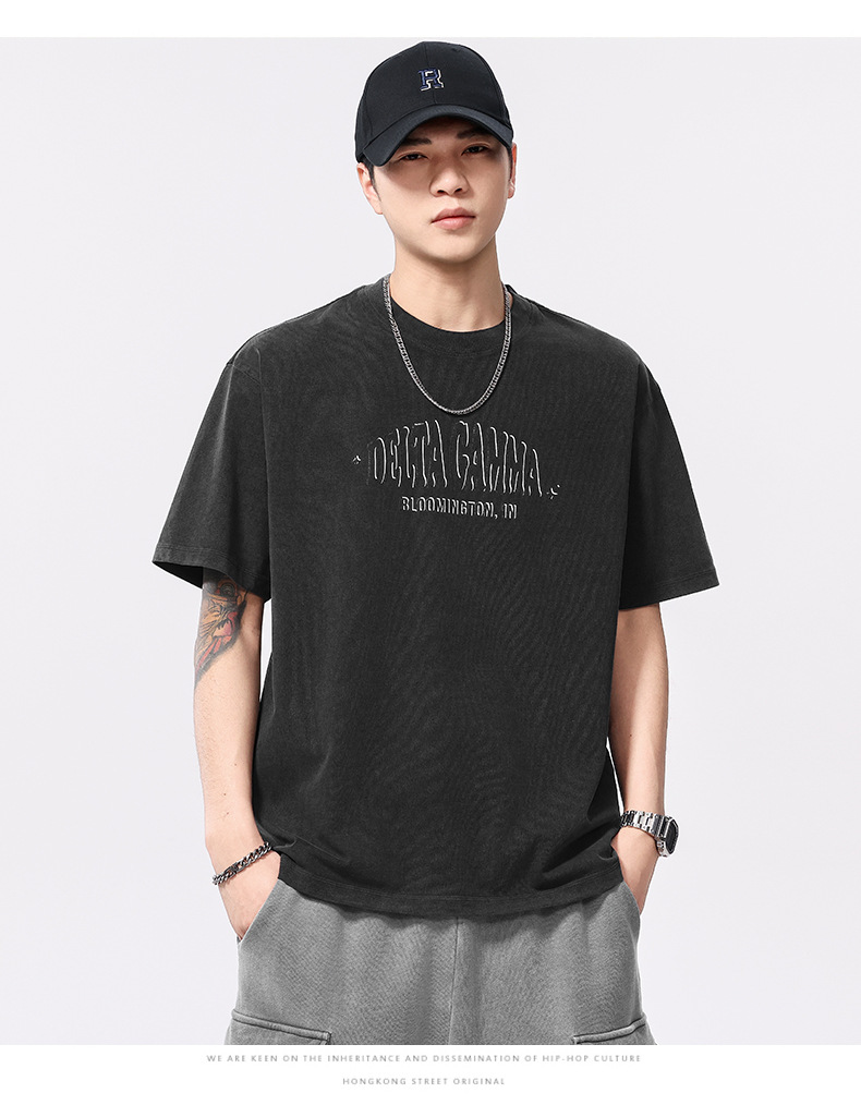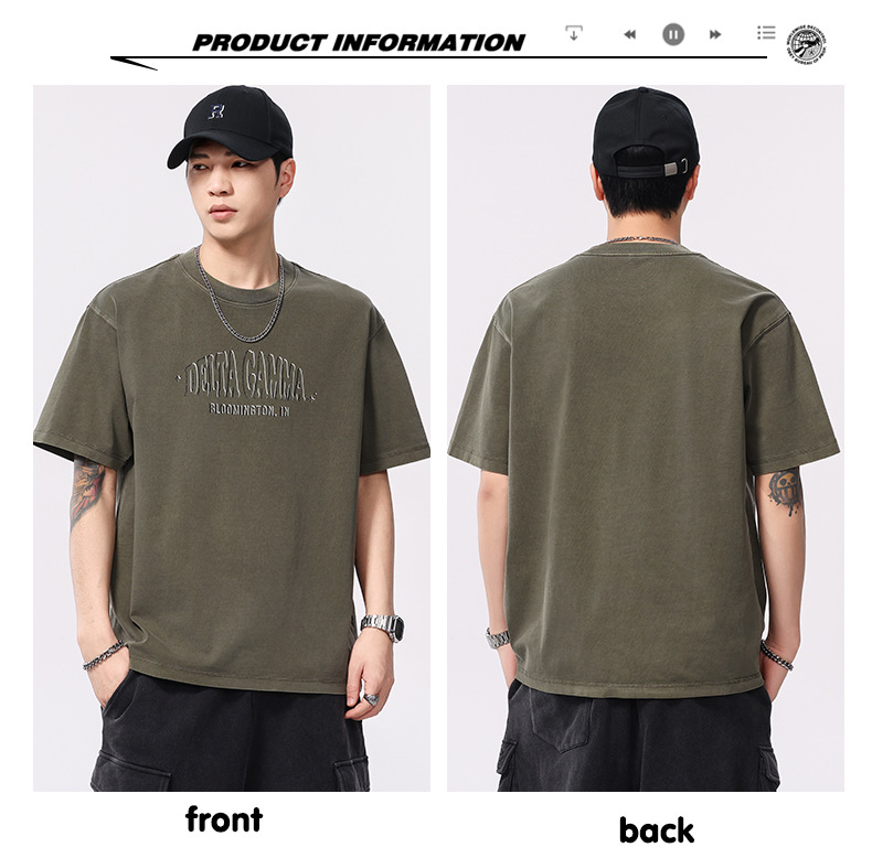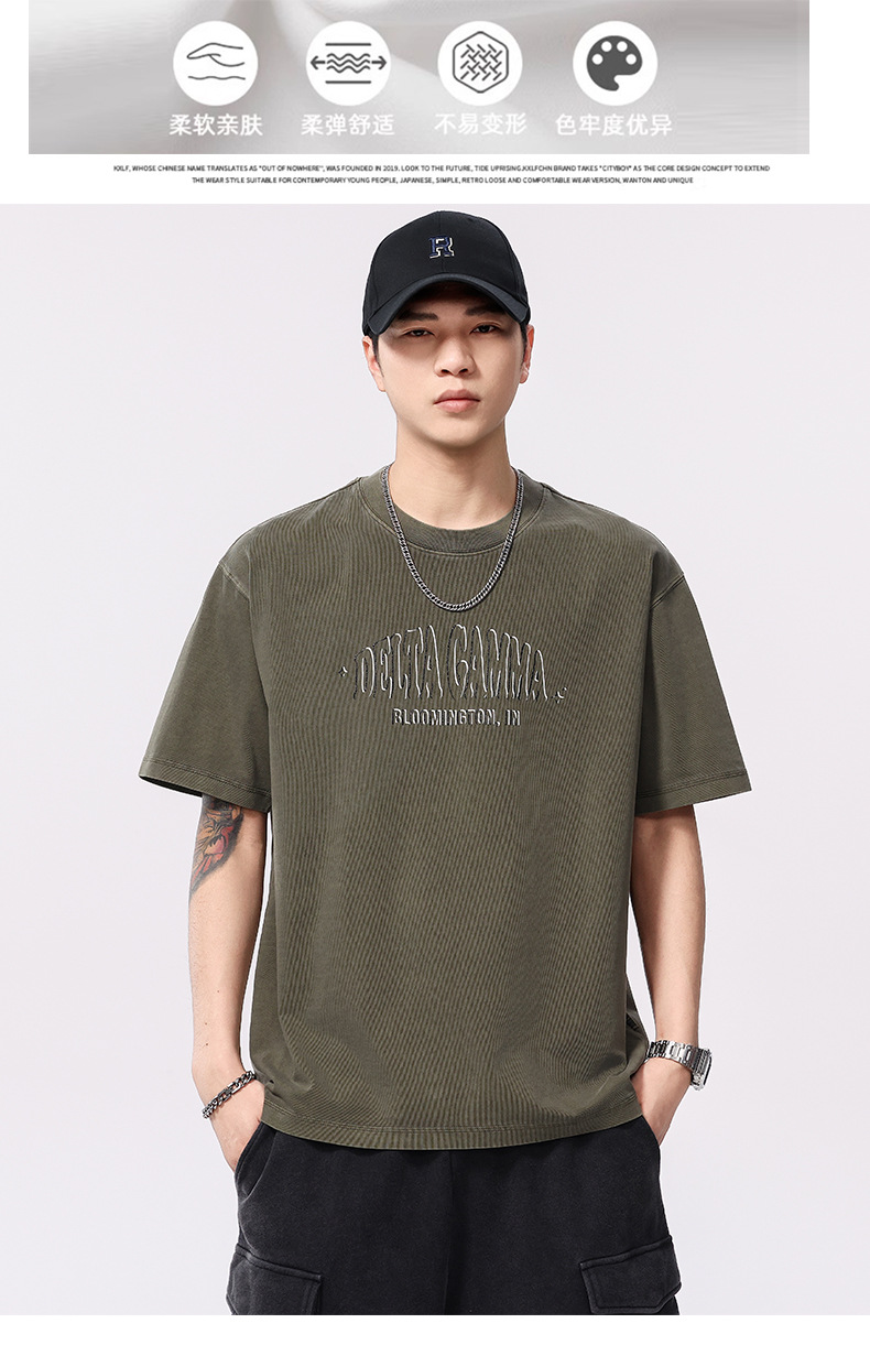 高端美式纯棉重磅石磨水洗T恤男短袖260g夏季新款体恤宽松上衣男
