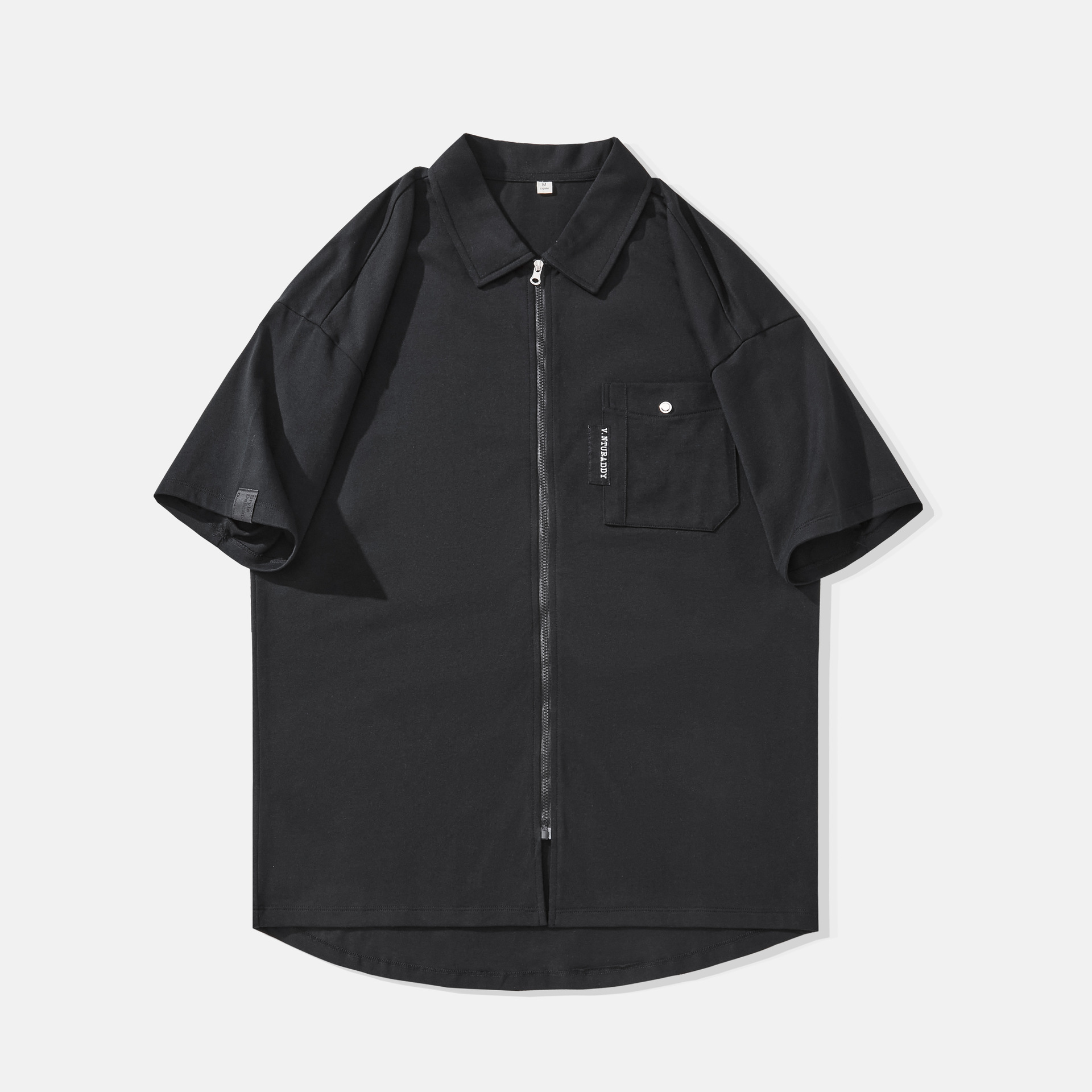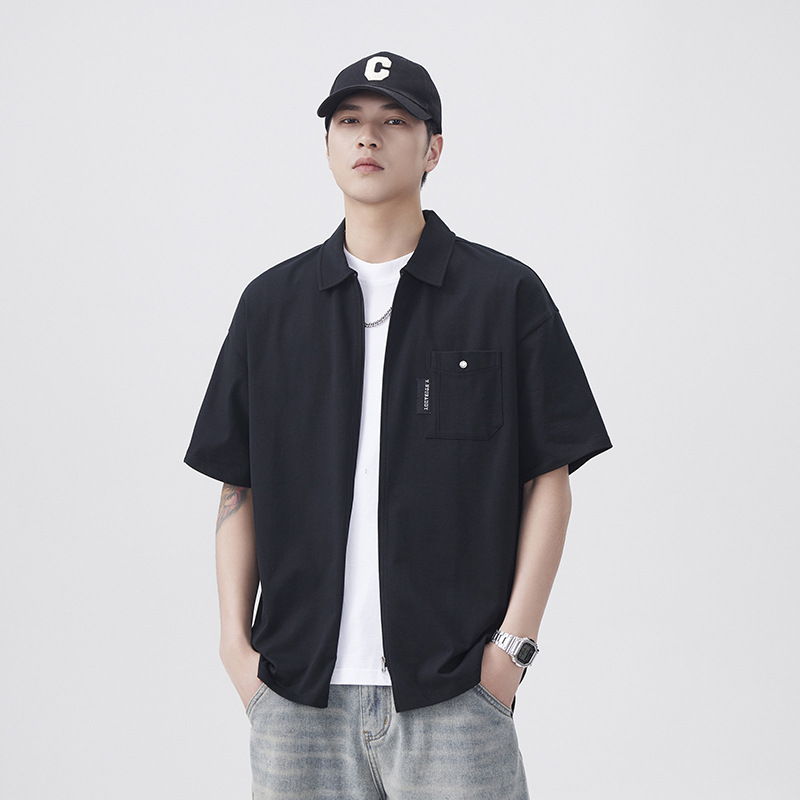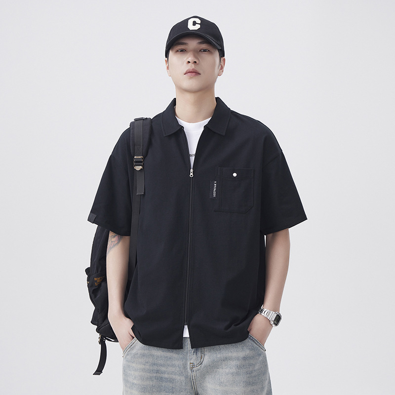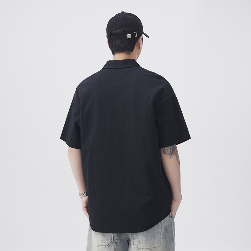 新疆棉男士短袖衬衫夏季宽松2025新款日系复古翻领工装外套男