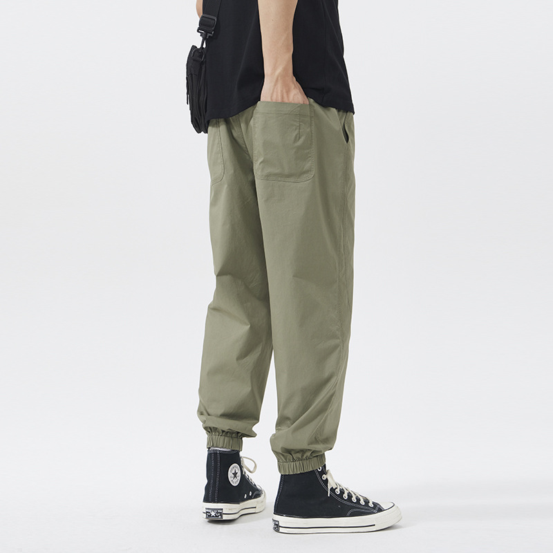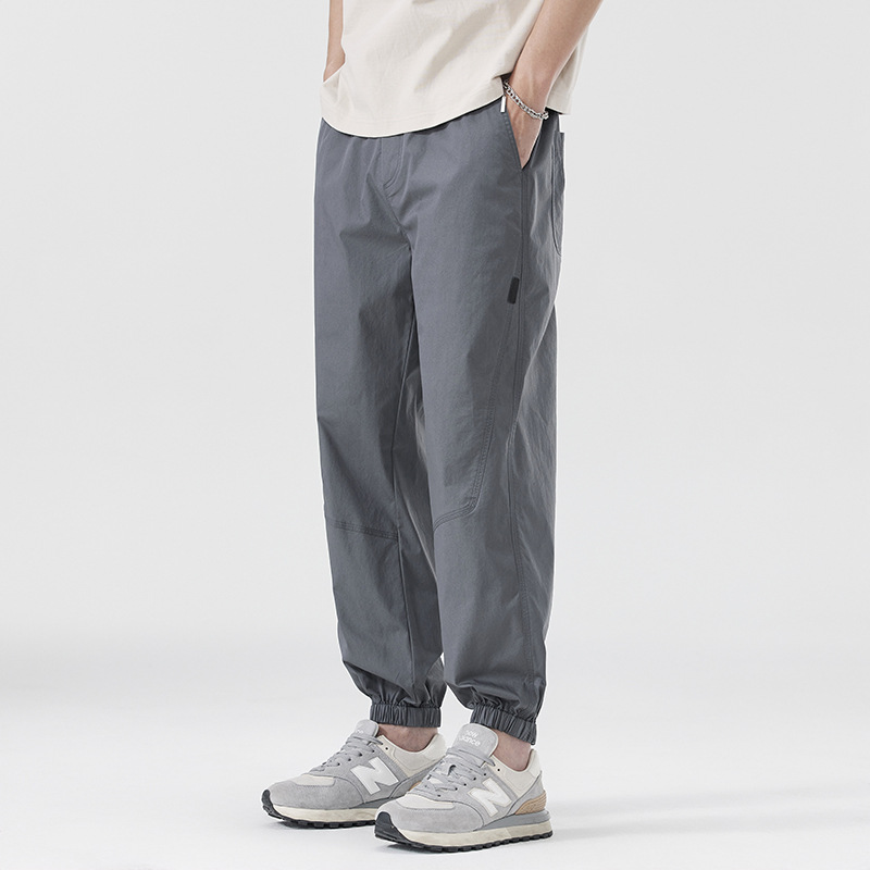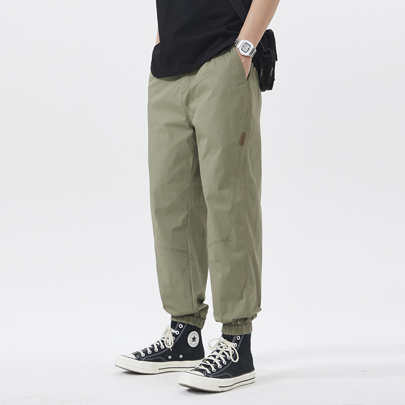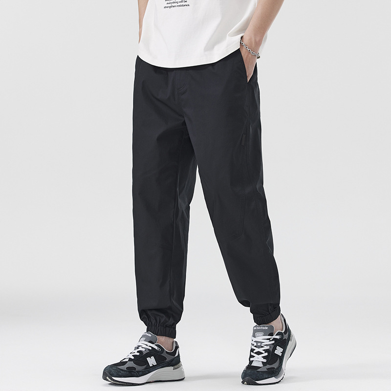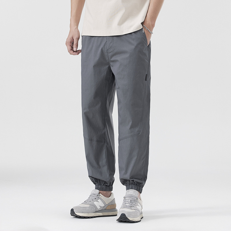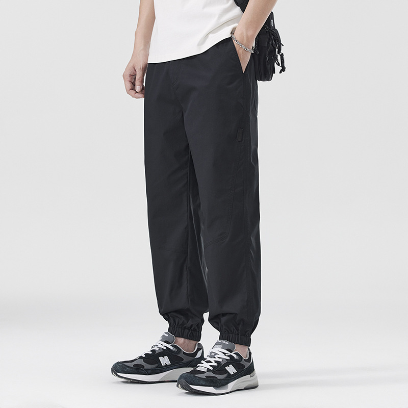 冰丝棉拼接束脚休闲裤男春夏季薄款美式宽松透气弹力工装裤子