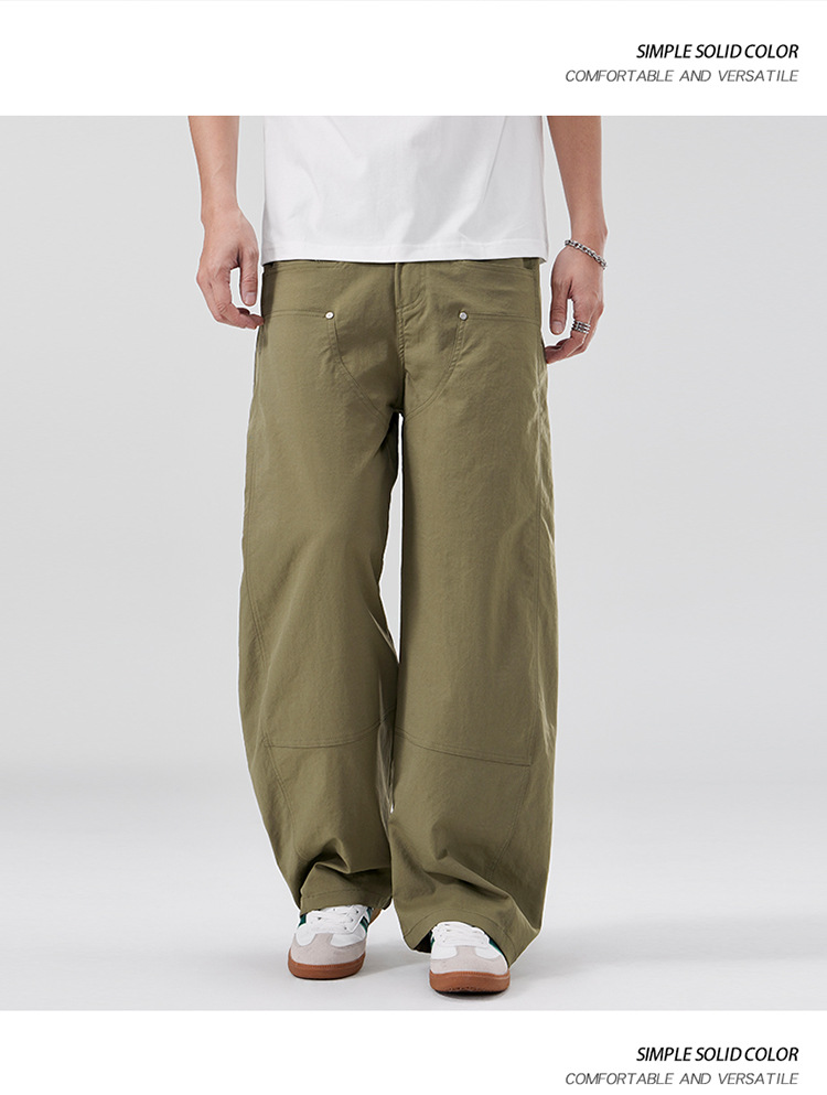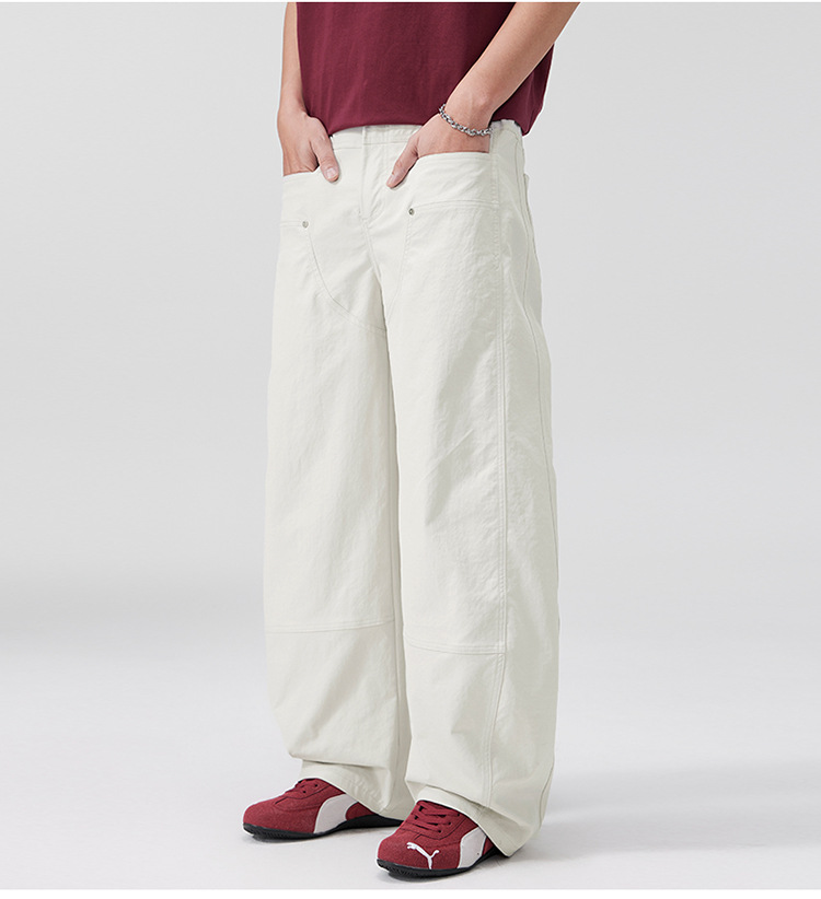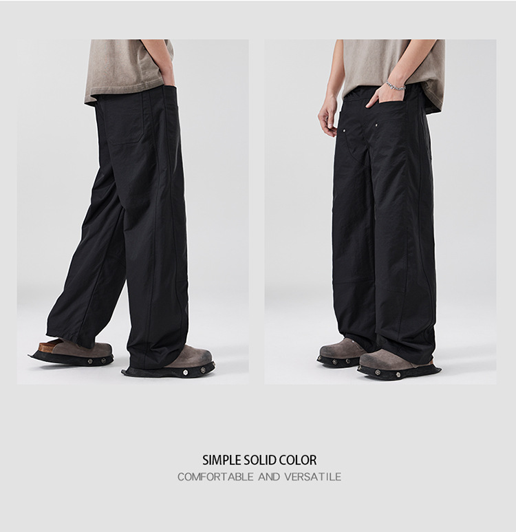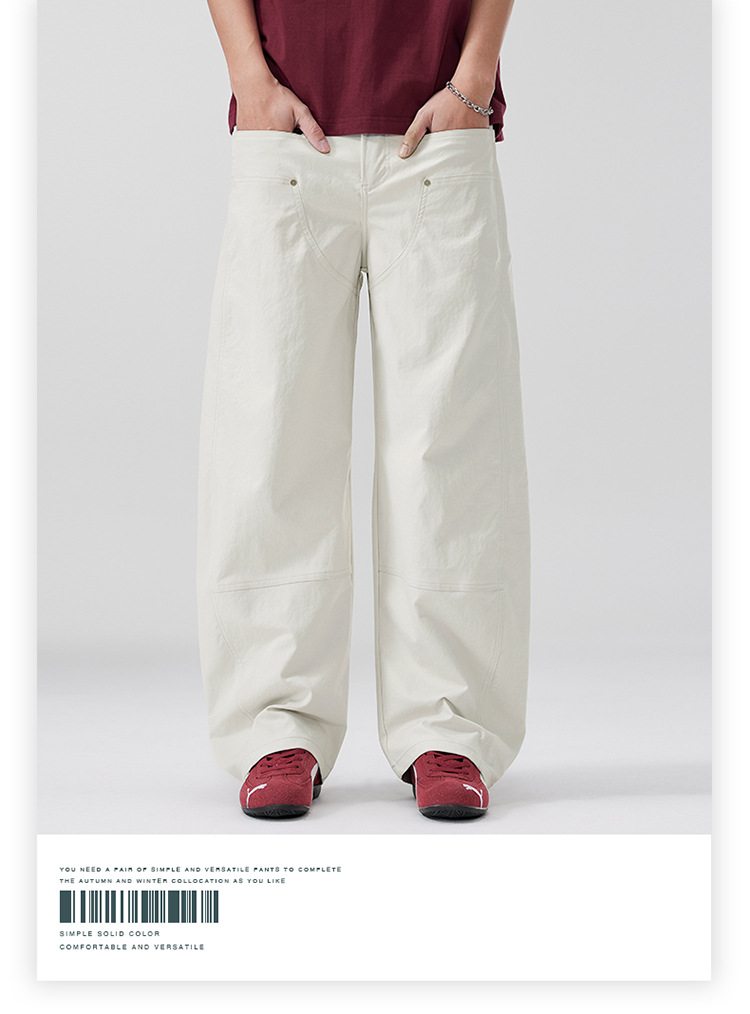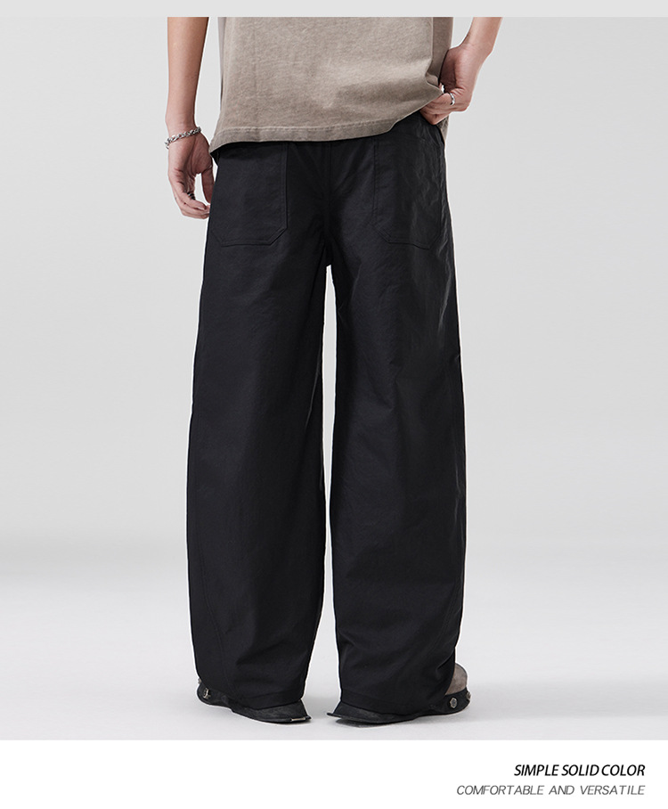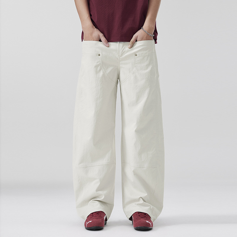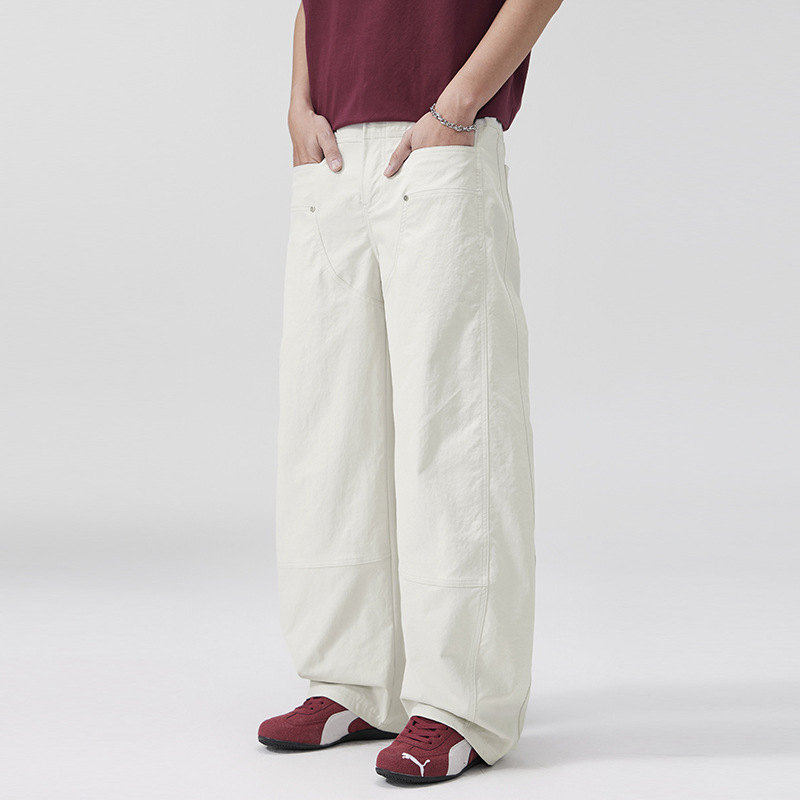 美式复古褶痕潮流弯刀裤cleanfit百搭宽松大码无性别休闲裤春夏款