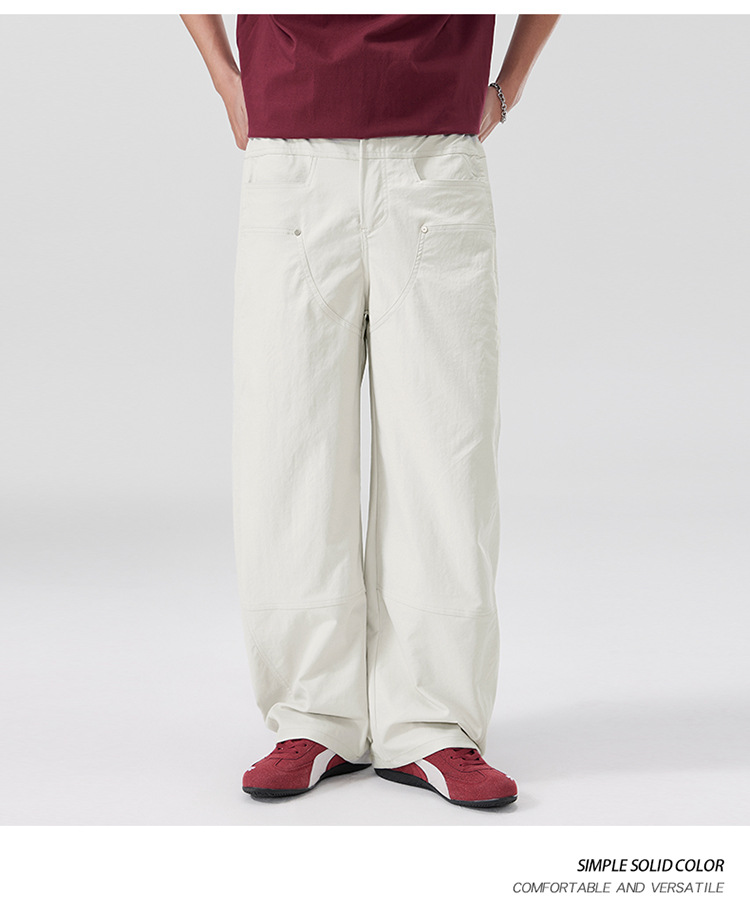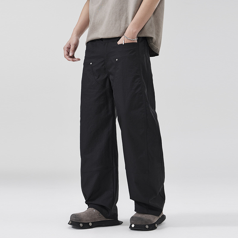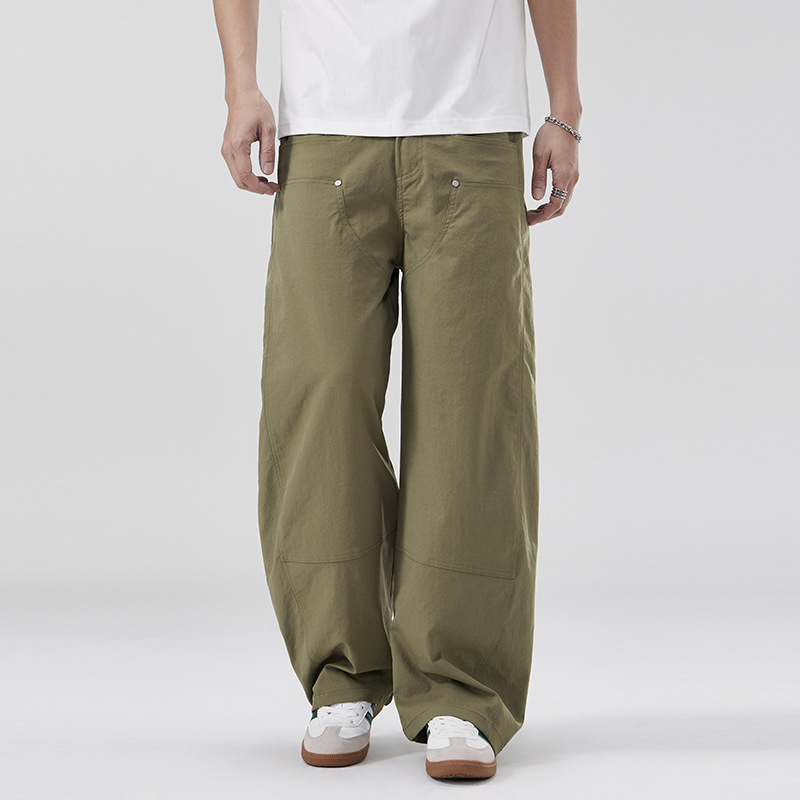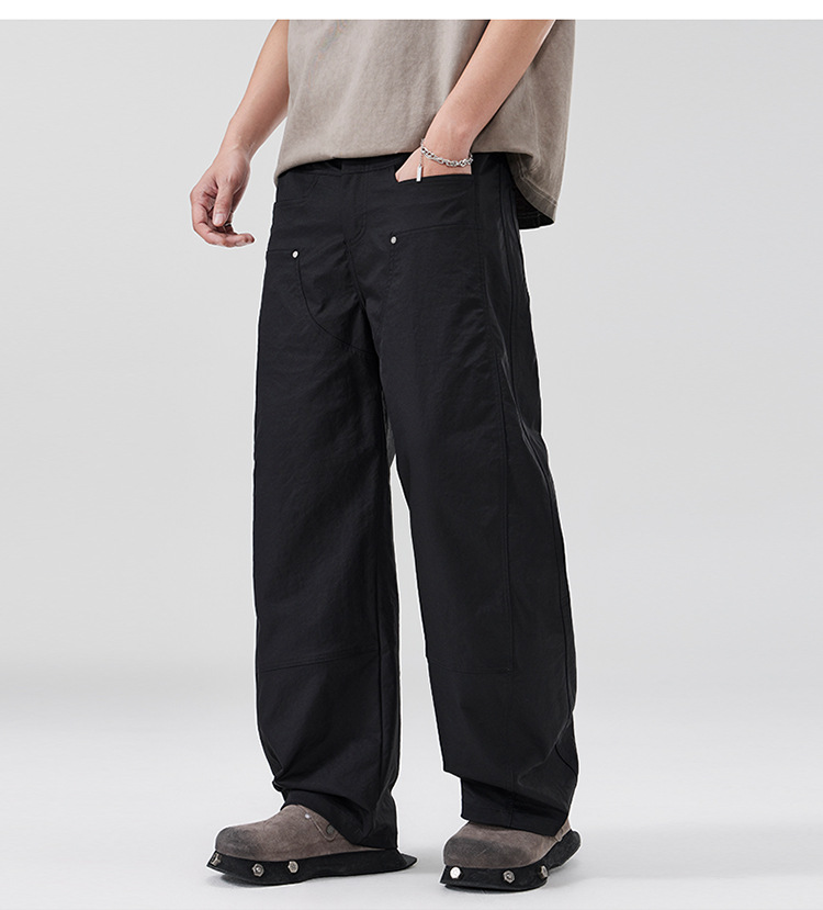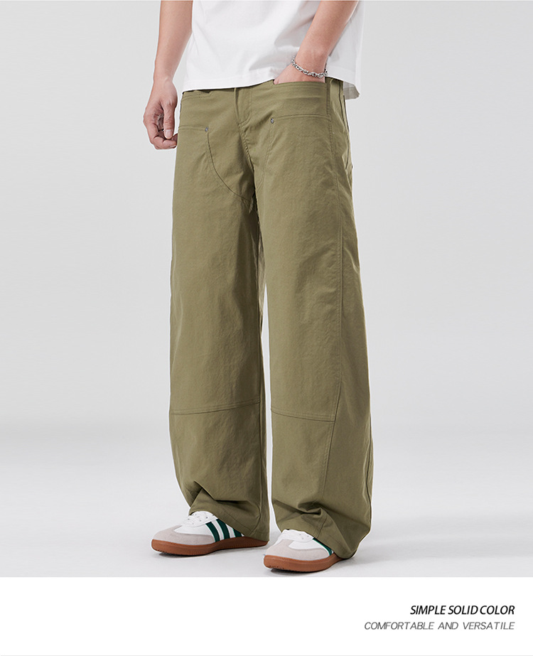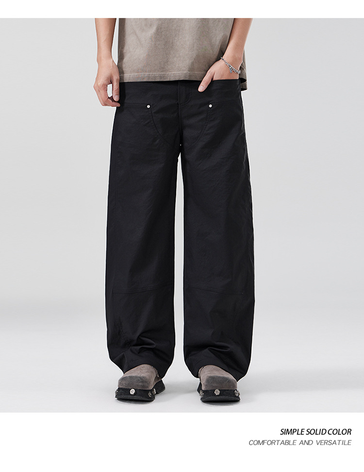 美式复古褶痕潮流弯刀裤cleanfit百搭宽松大码无性别休闲裤春夏款