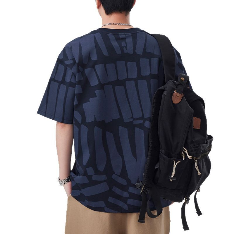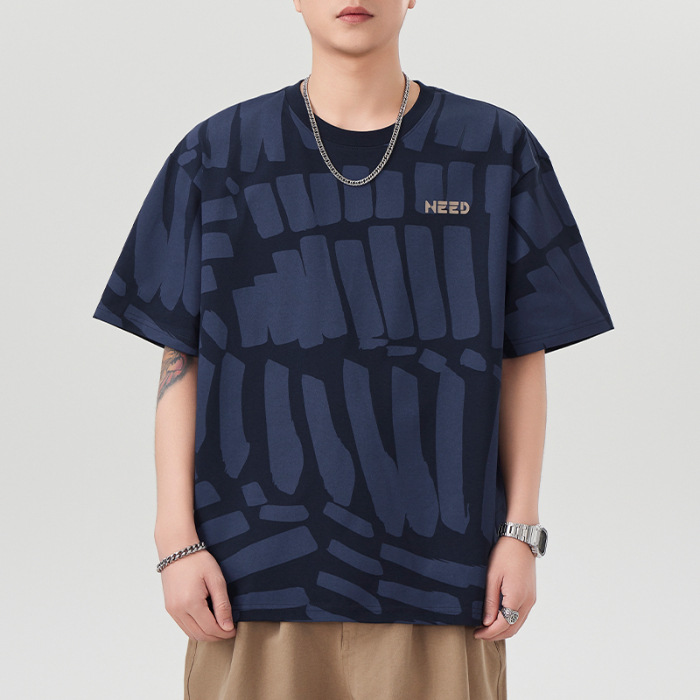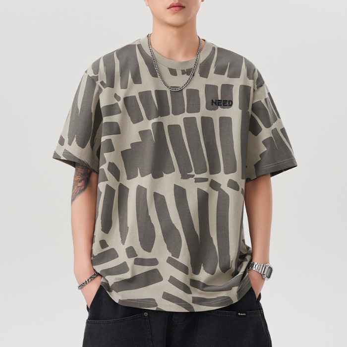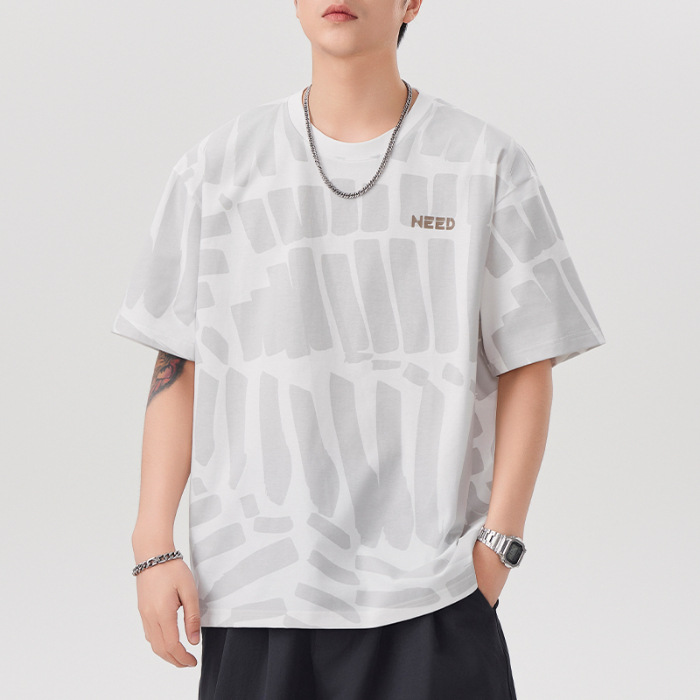 夏季新款字母印花短袖T恤男士潮流宽松圆领体恤百搭休闲半袖上衣