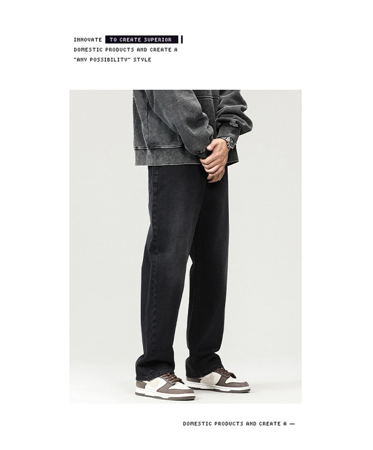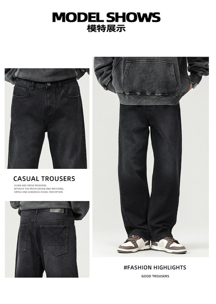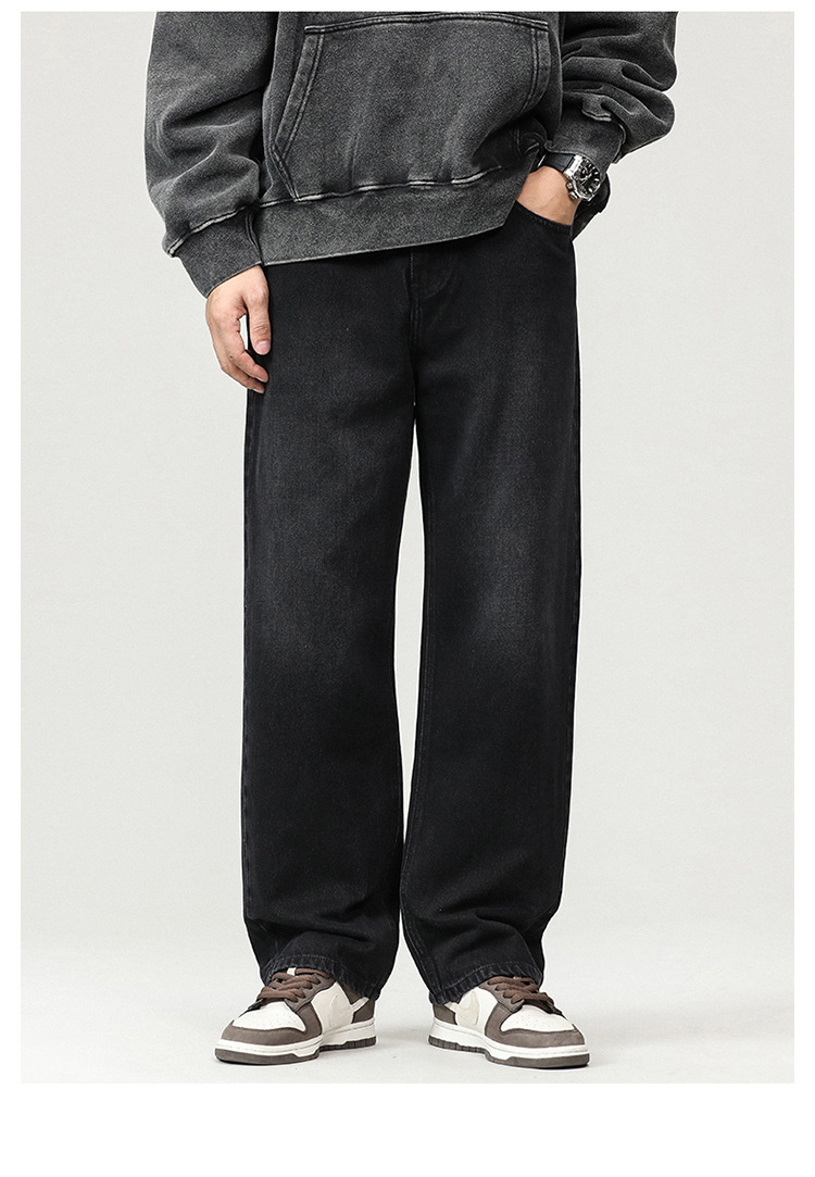 黑色牛仔裤男款春秋季美式高街水洗做旧复古男裤耐磨宽松直筒裤子