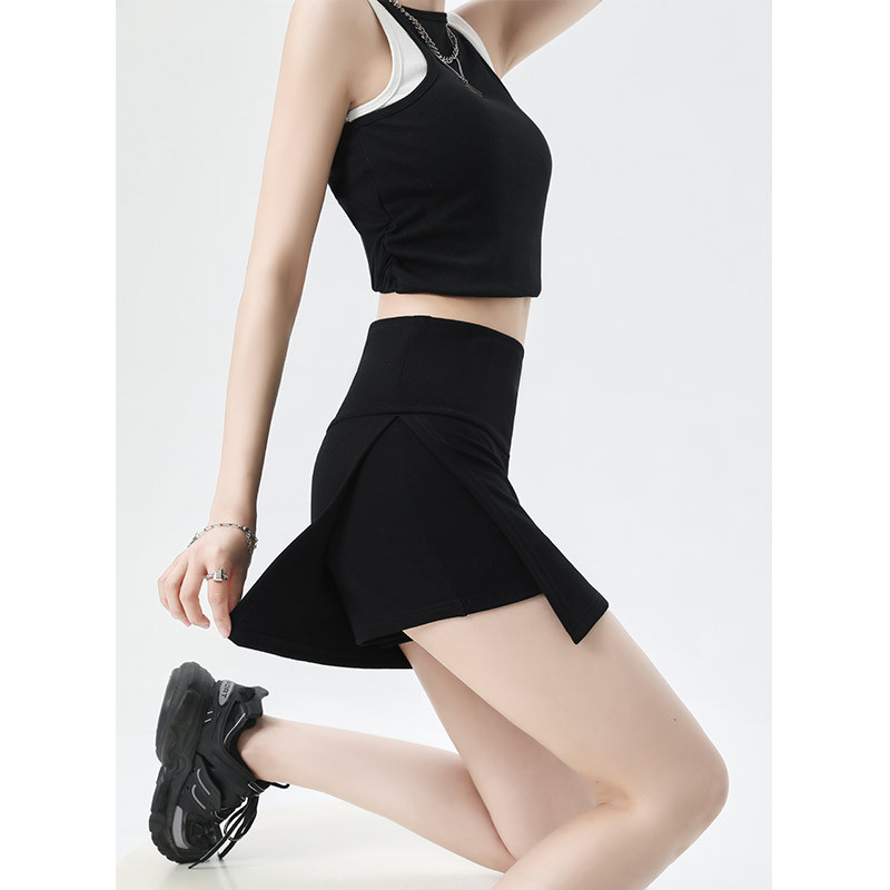 侧开叉黑色瑜伽裙裤女夏季防走光美式半身裙辣妹包臀a字运动短裙