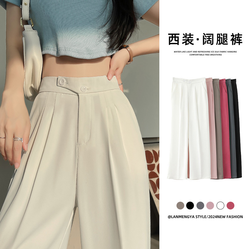 白色阔腿裤女装春季女小个子显瘦垂感直筒裤高腰休闲西装裤