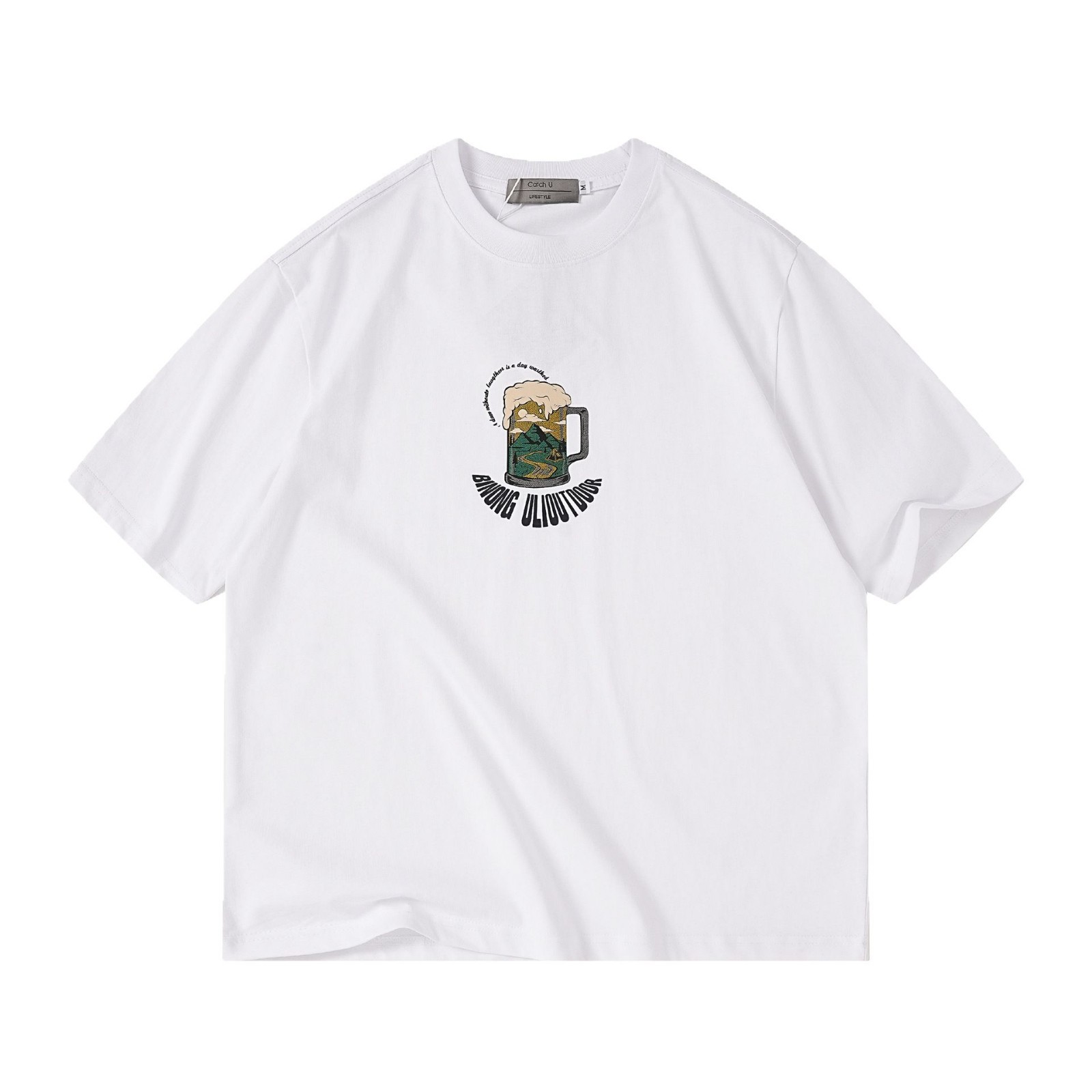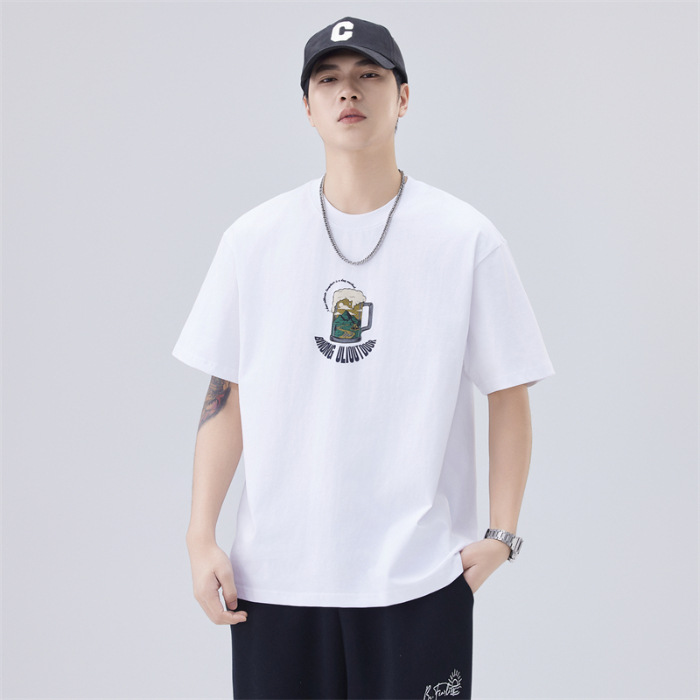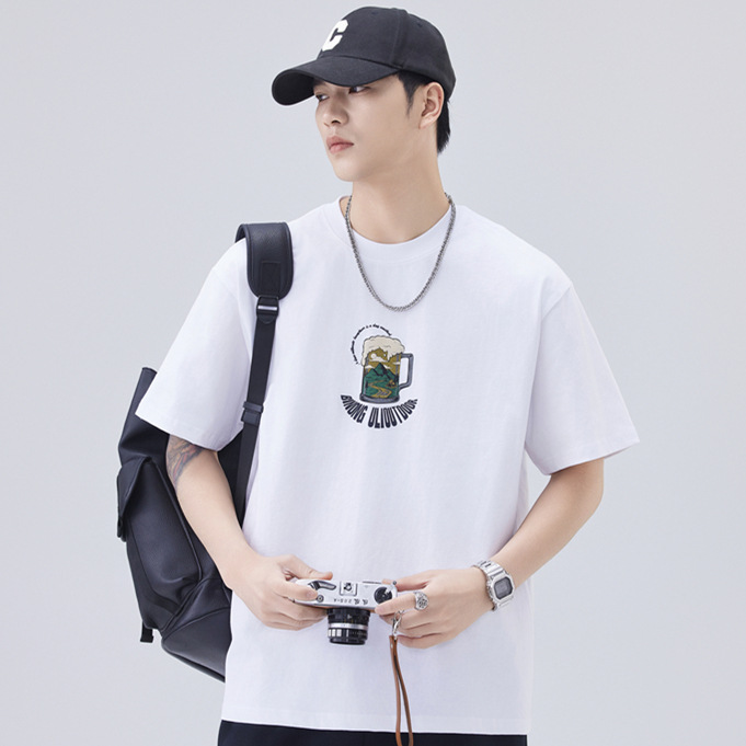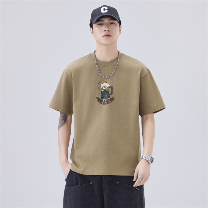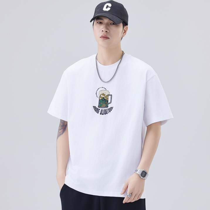 2025夏季新款圆领T恤男宽松美式休闲半袖衫啤酒印花打底衫短袖潮