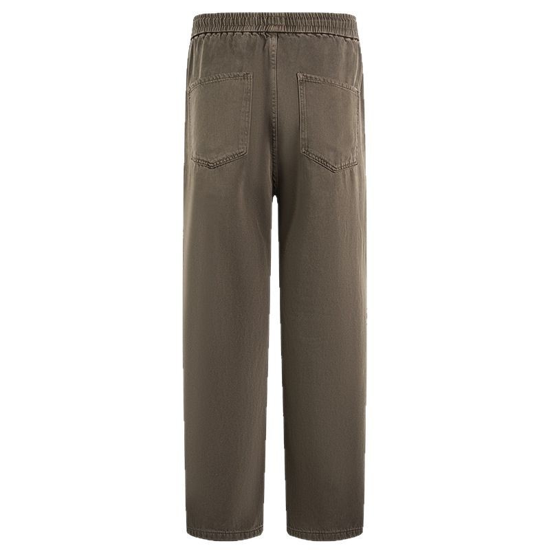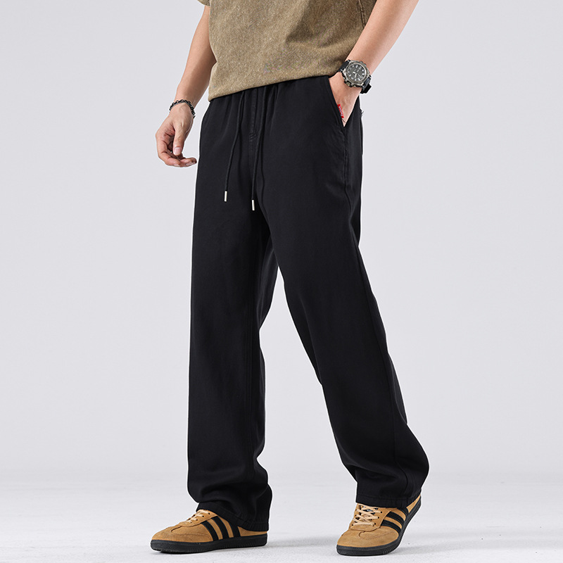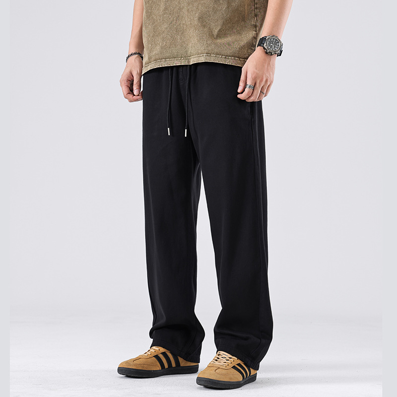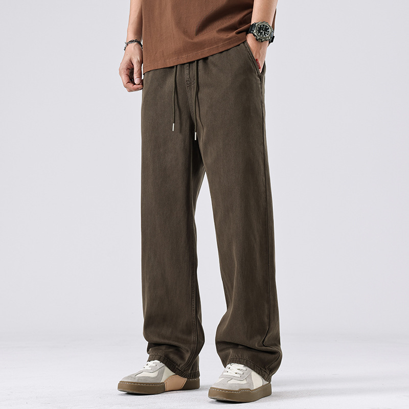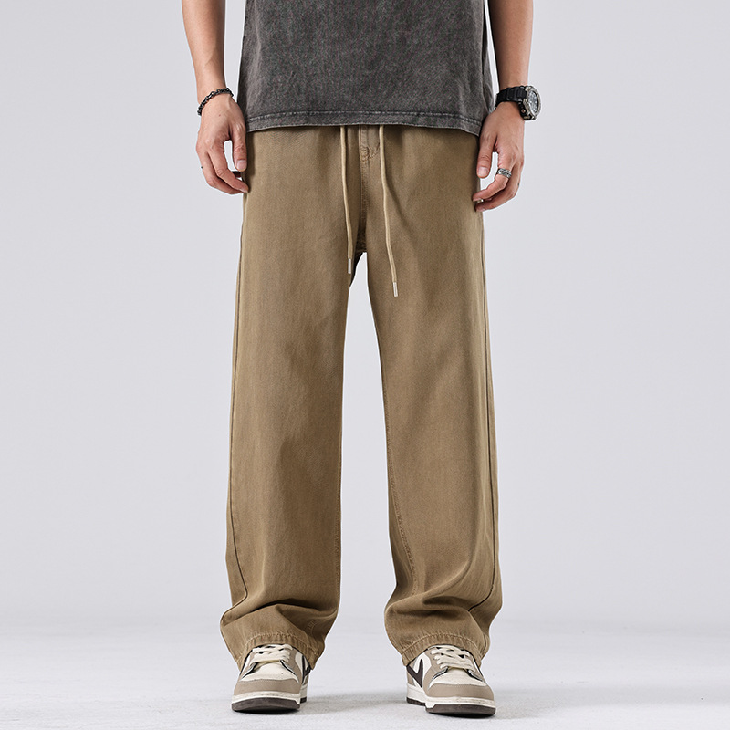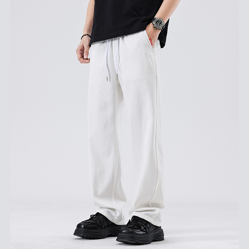 美式复古白色牛仔裤男春秋宽松直筒阔腿松紧腰长裤子春季新款