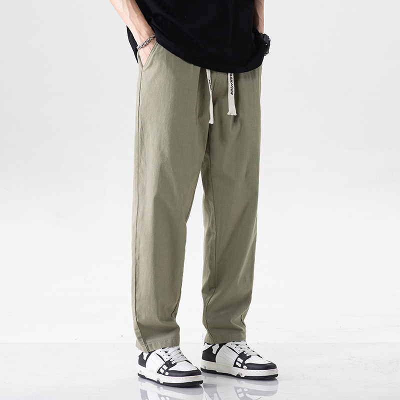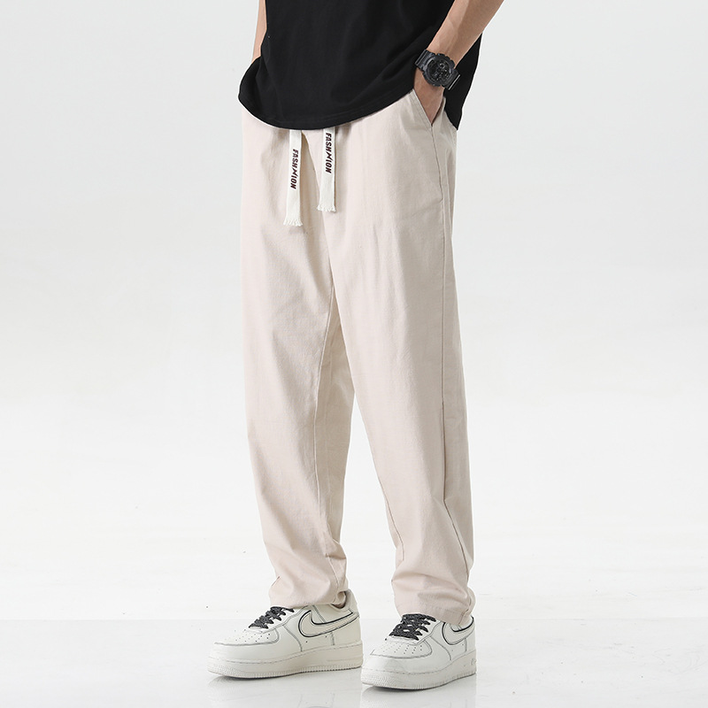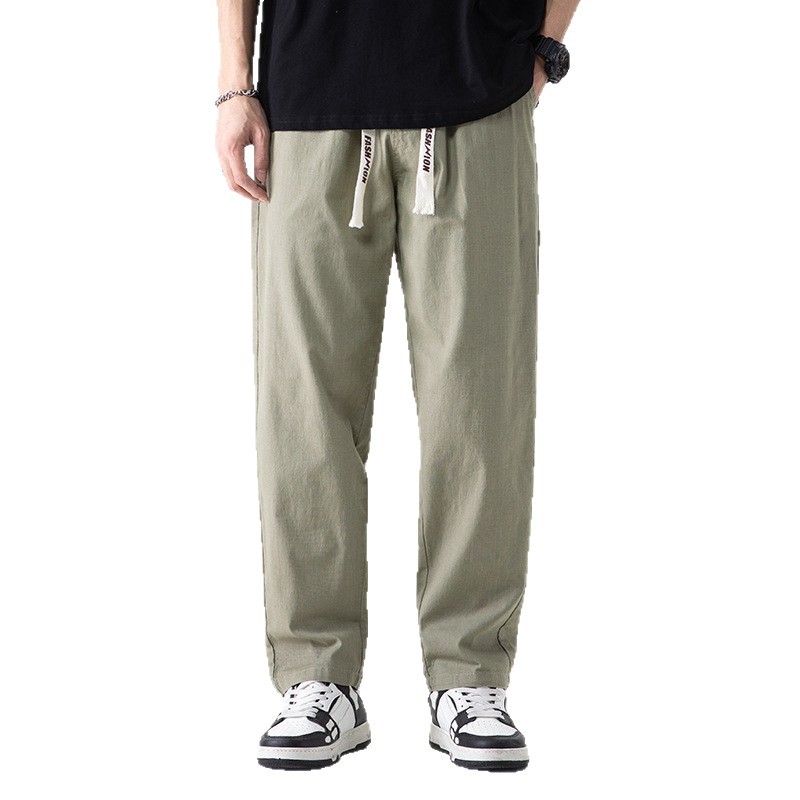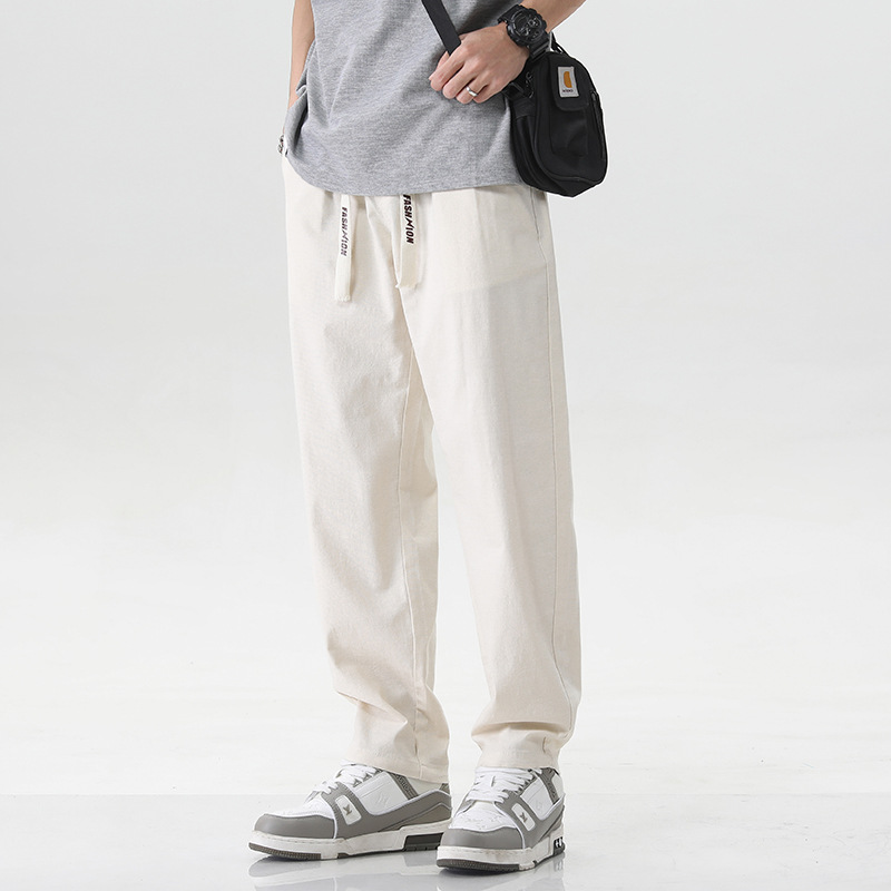 米白色裤子男宽松直筒潮流百搭夏季薄款透气休闲长裤弹力锥形大码