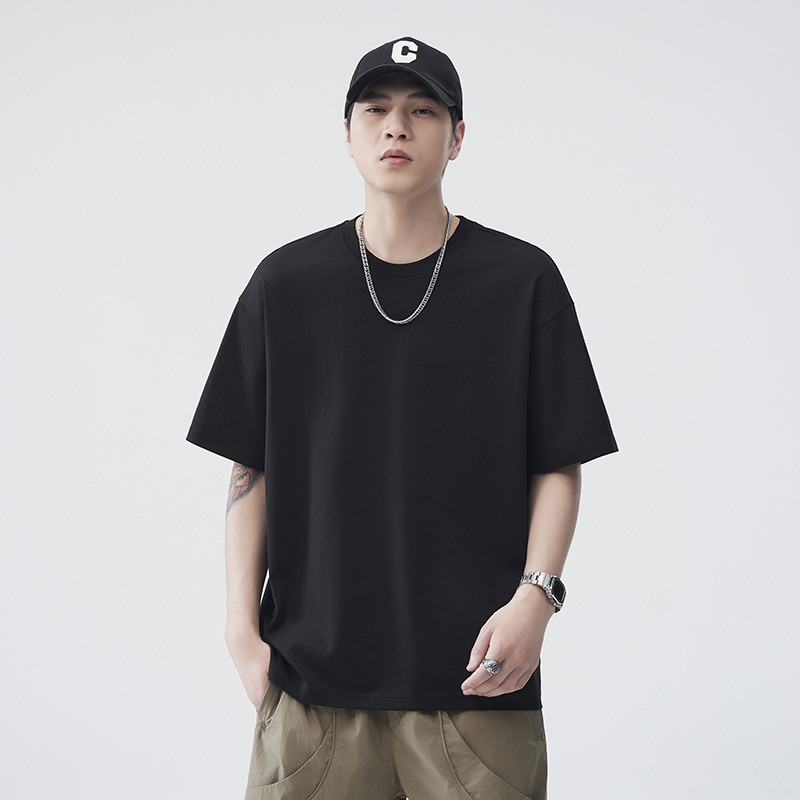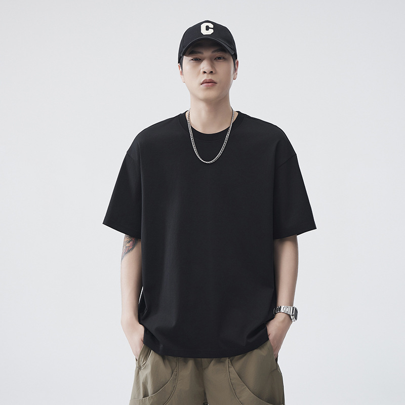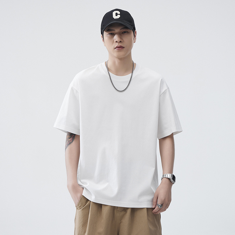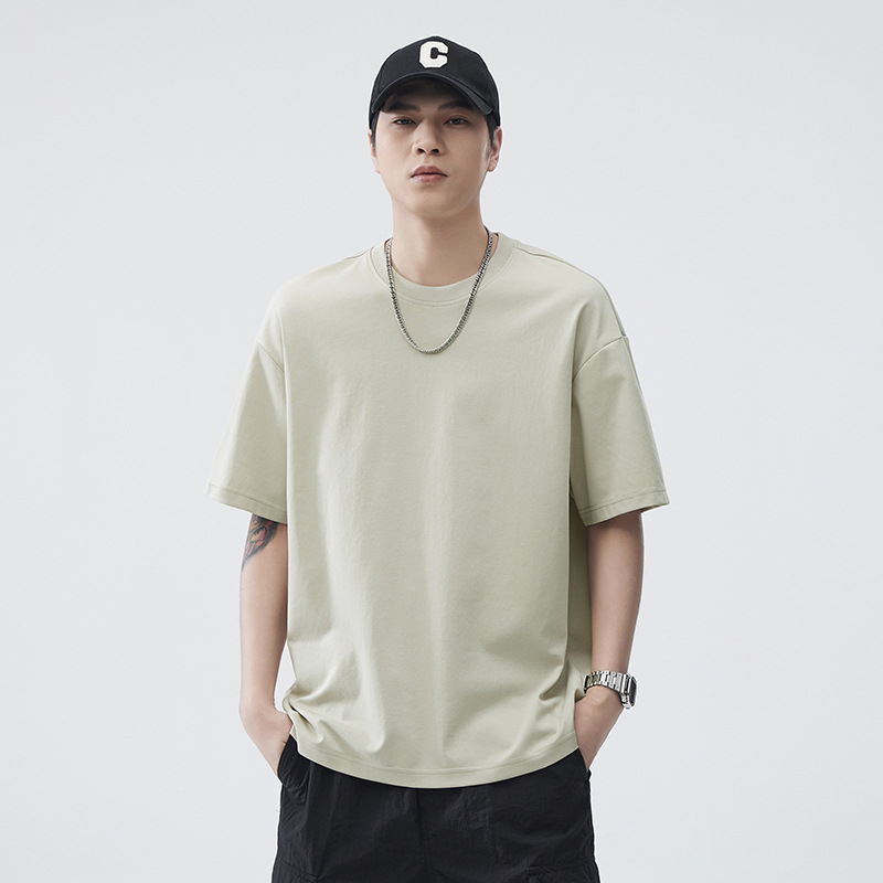 简约风格纯色短袖T恤男夏季薄款凉感亲肤圆领休闲半袖体恤男潮牌