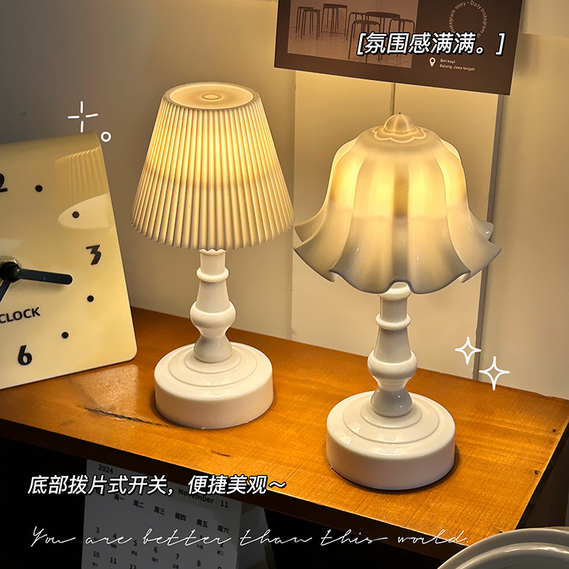 复古荷花小夜灯卧室睡眠灯装饰摆件宿舍迷你台灯护眼氛围