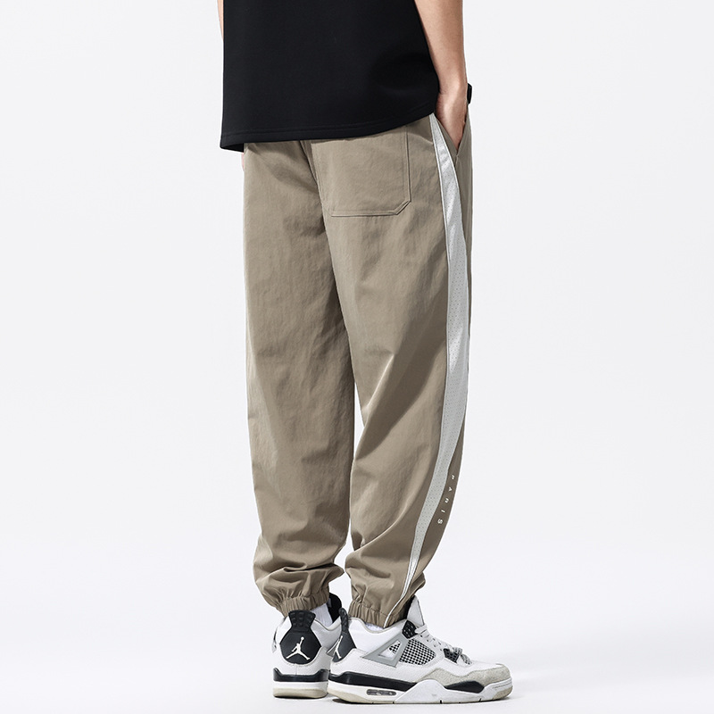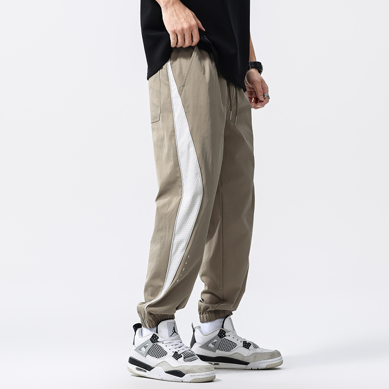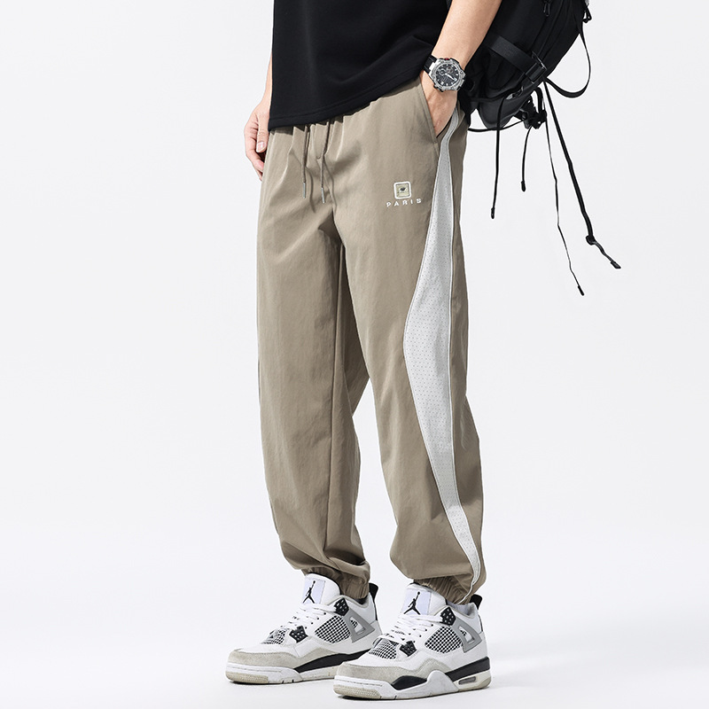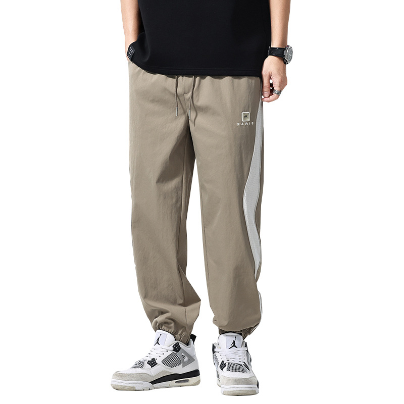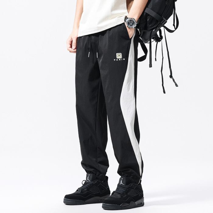 拼色休闲裤男士宽松大码九分裤子男款夏季薄款速干透气束脚运动裤