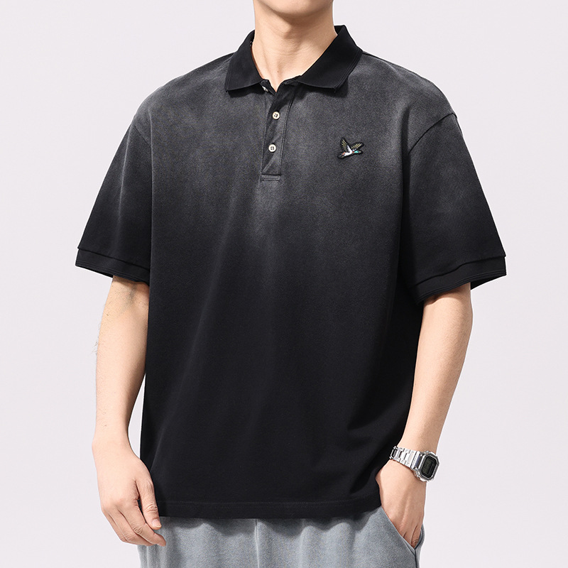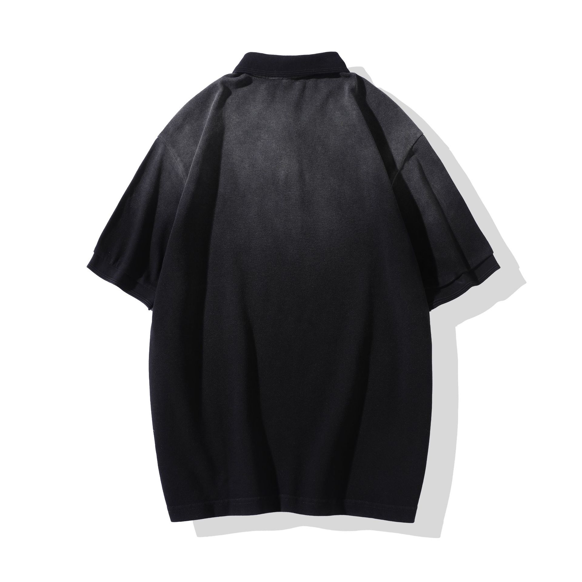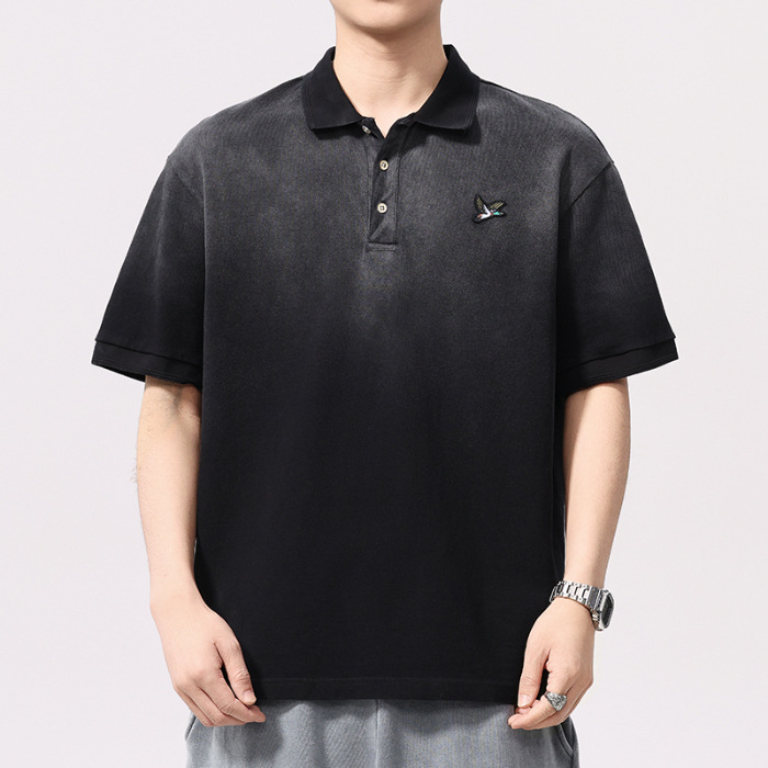 高端美式复古渐变喷色短袖Polo衫男夏季潮牌宽松休闲绣花短袖T恤